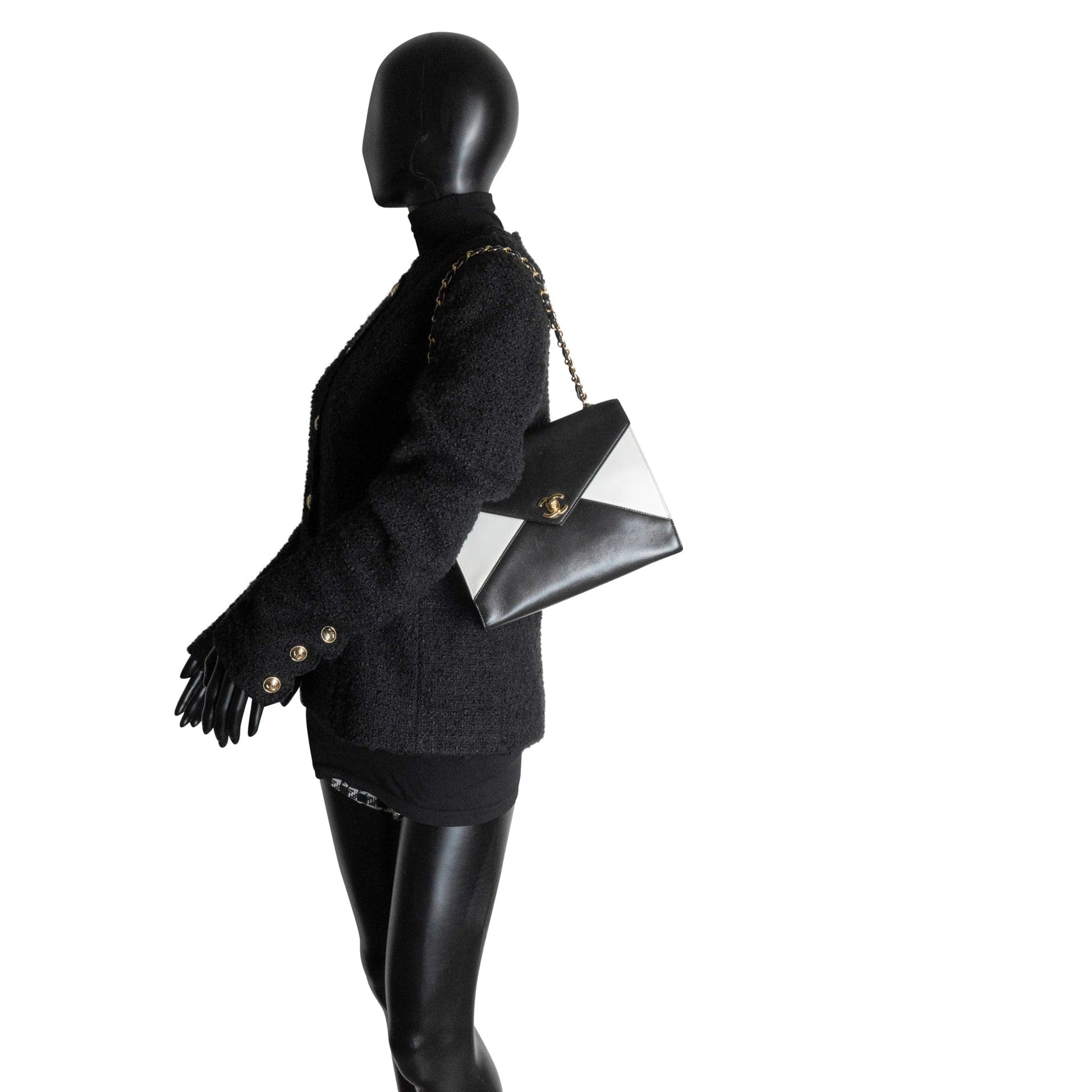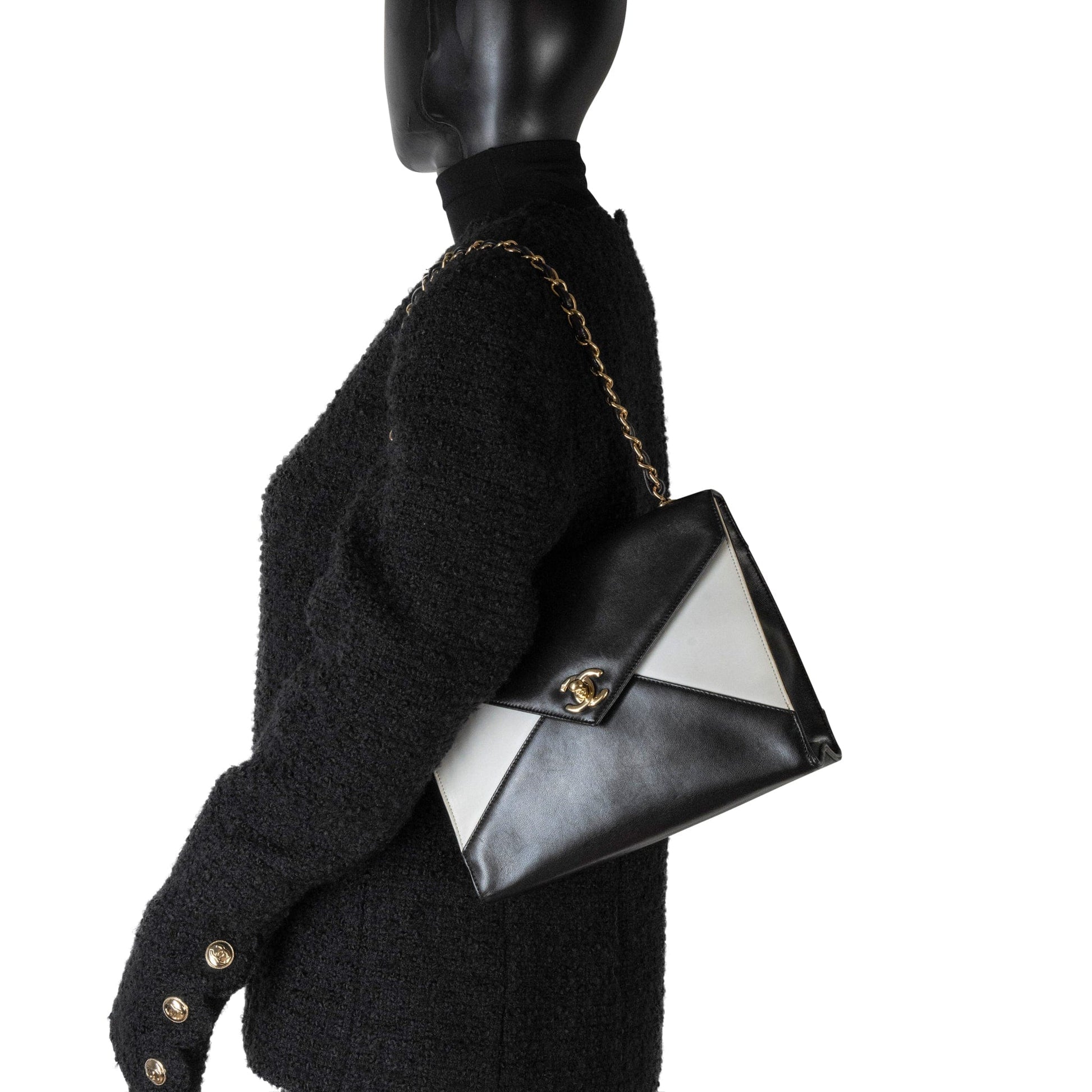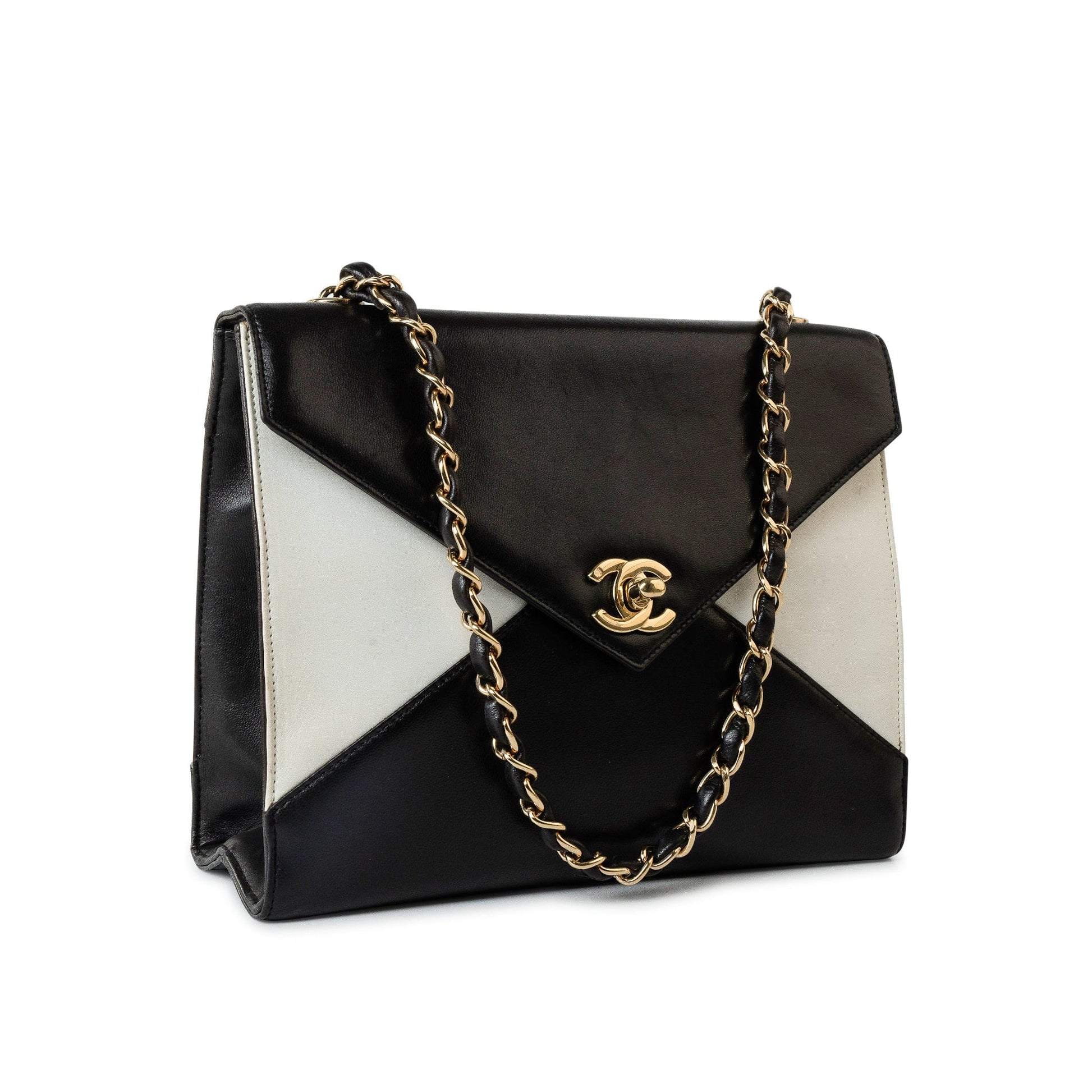 Vintage Black and White Lambskin Envelope Shoulder Bag Gold Hardware