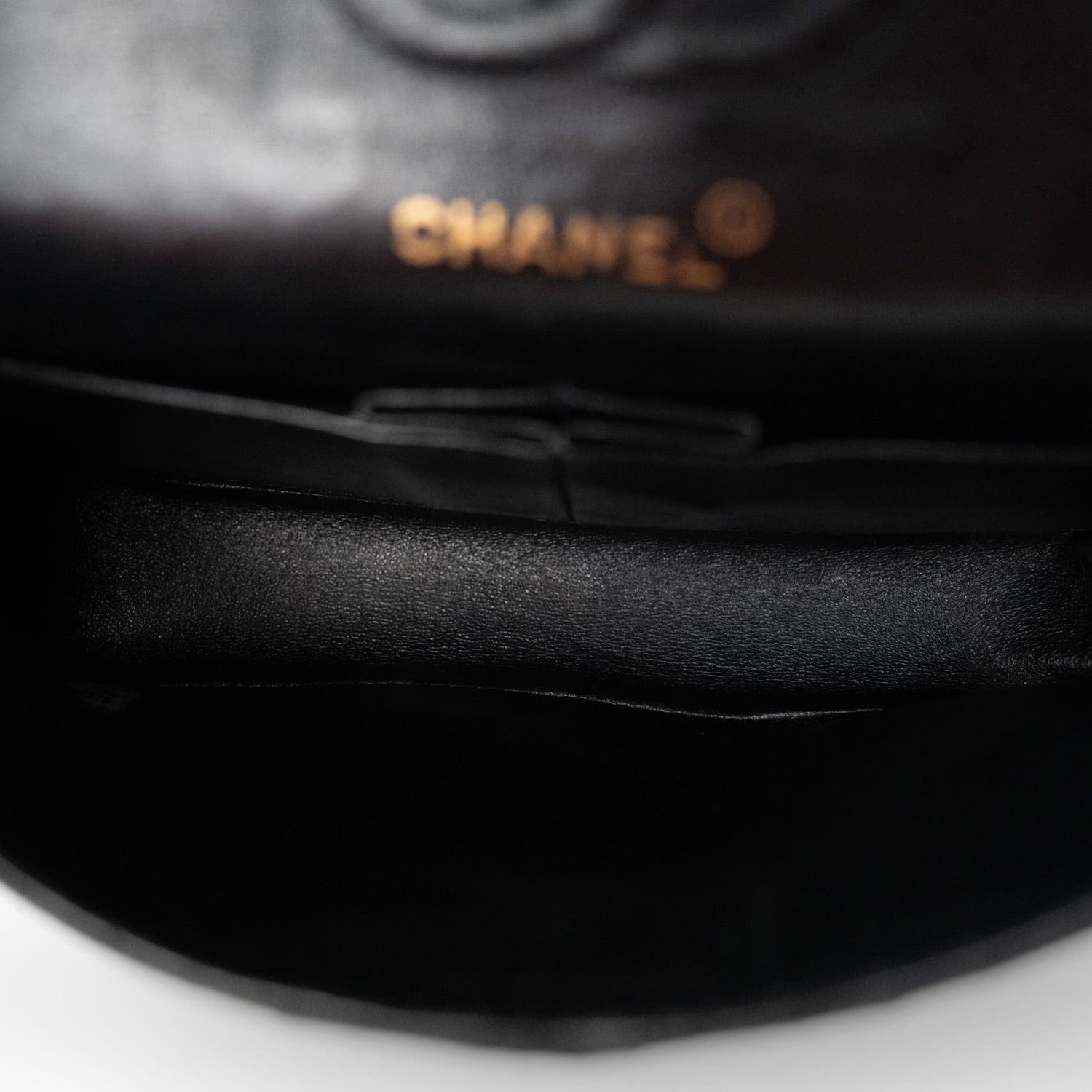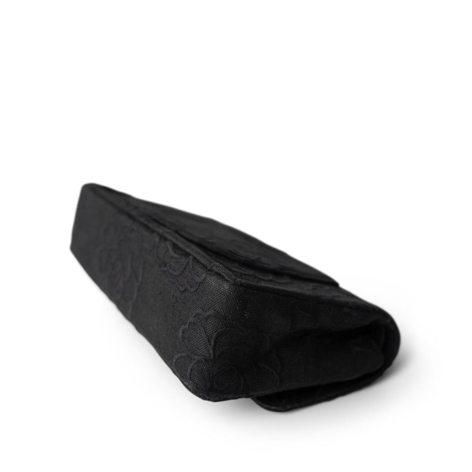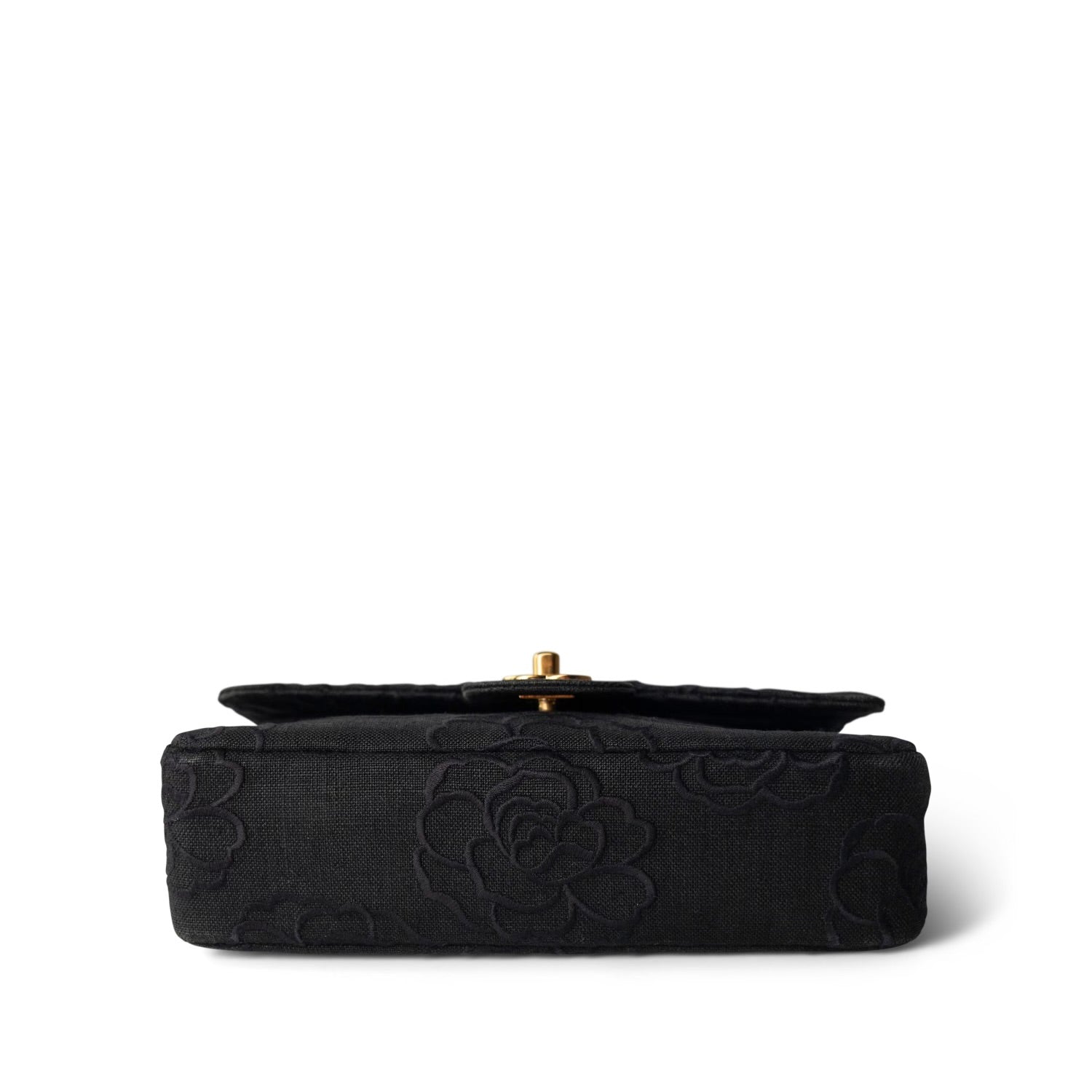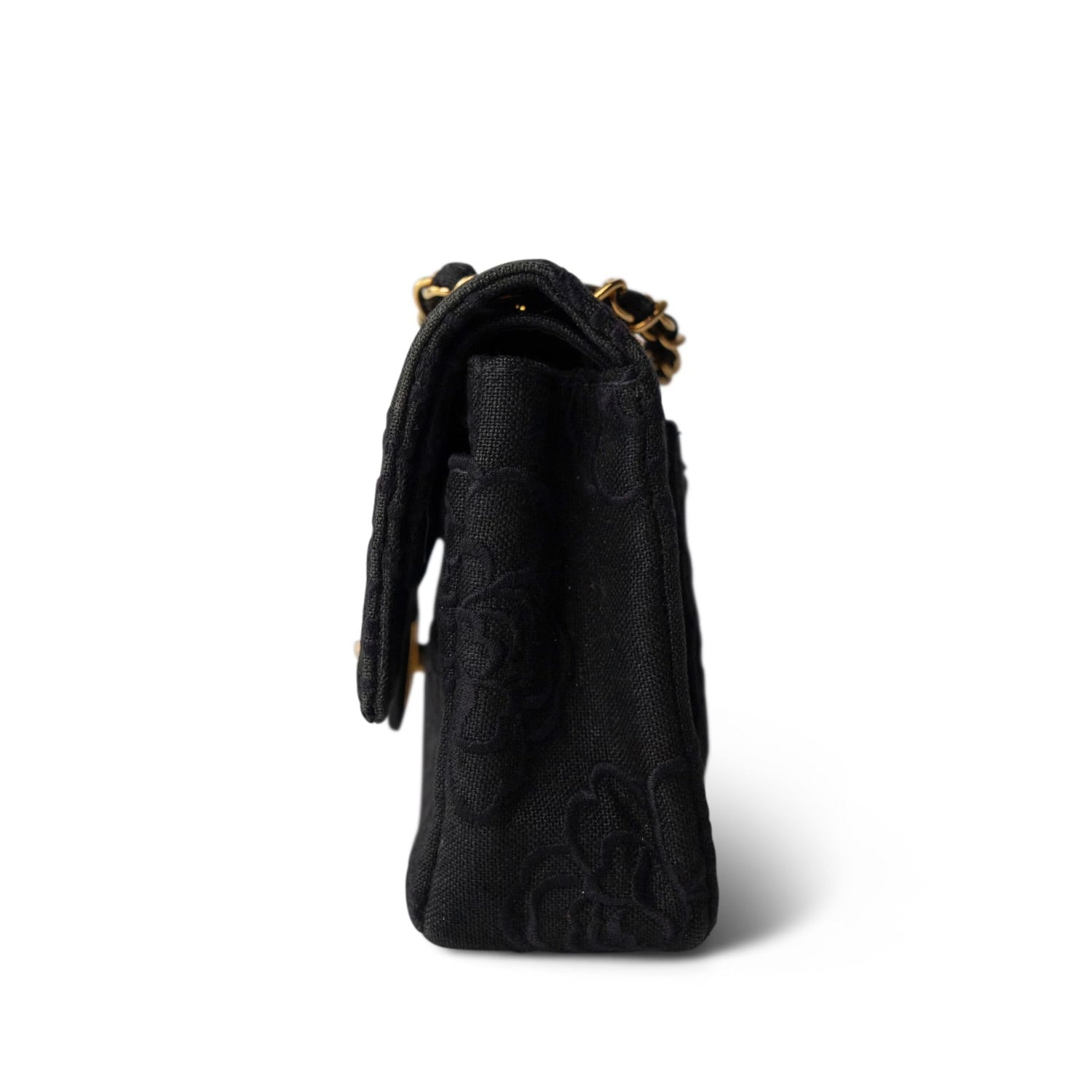 Vintage Black Canvas Camellia Classic Small Double Flap Gold Hardware