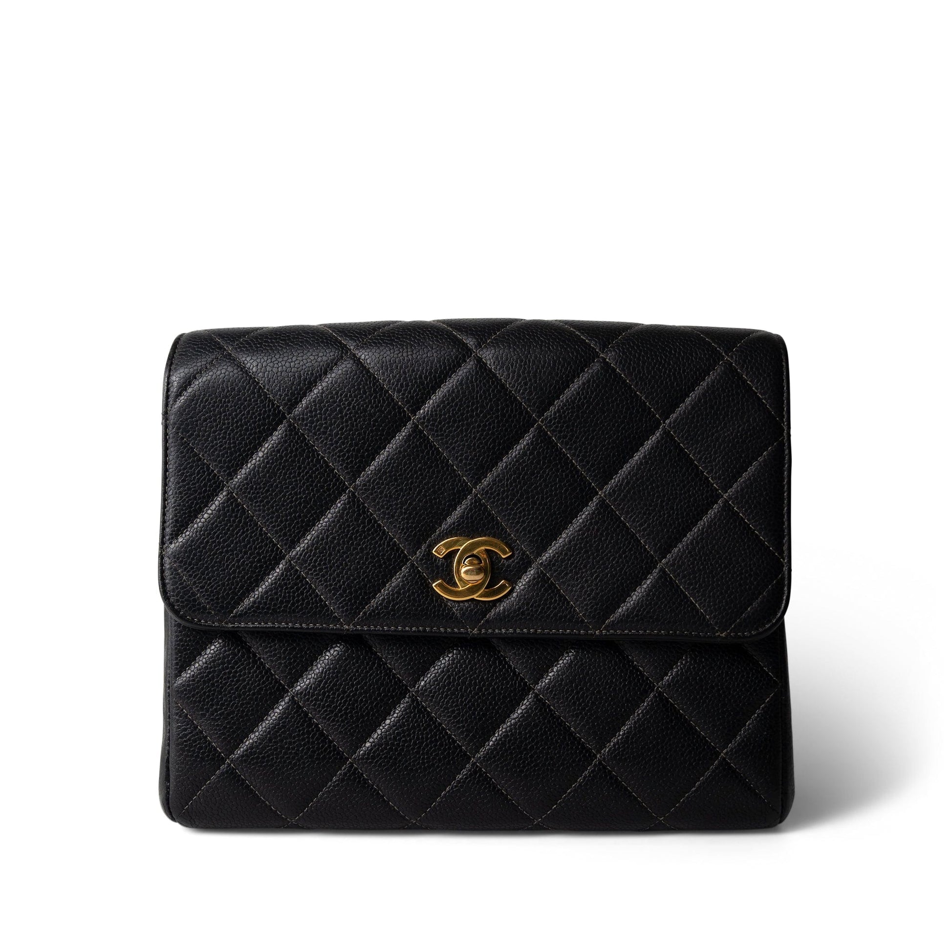 Vintage Black Caviar Quilted Square Flap Gold Hardware
