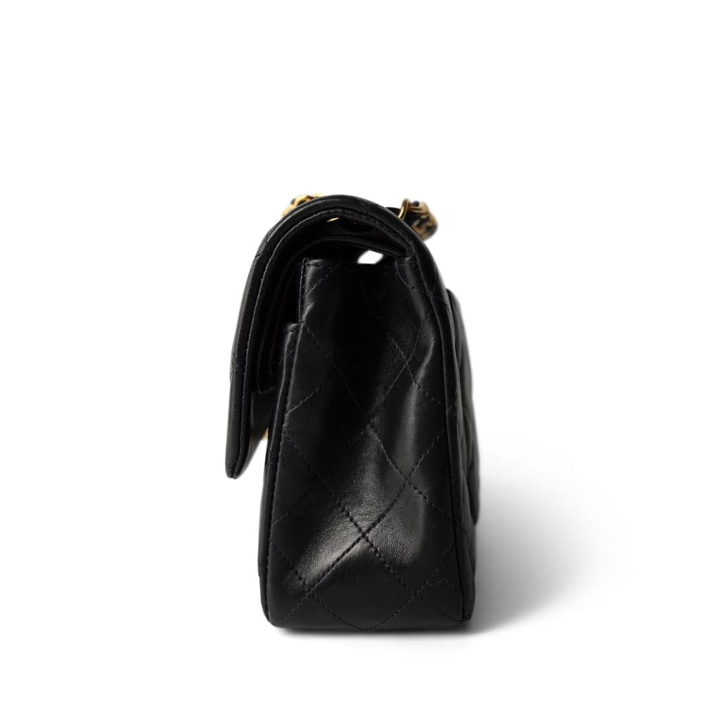 Vintage Black Lambskin Quilted Classic Flap Small Gold Hardware