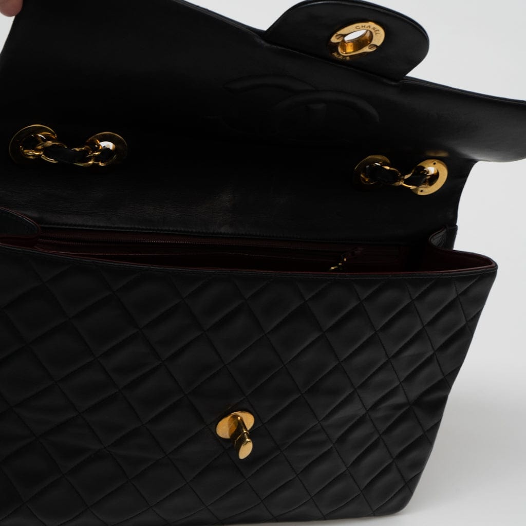 Vintage Black Lambskin Quilted Jumbo XL Single Flap
