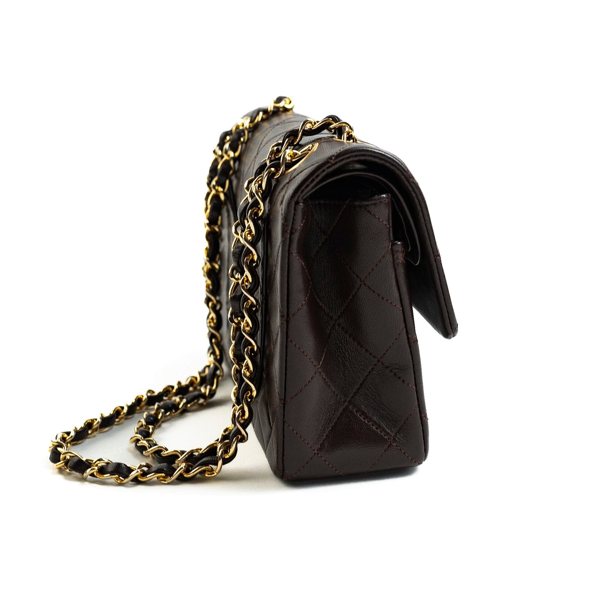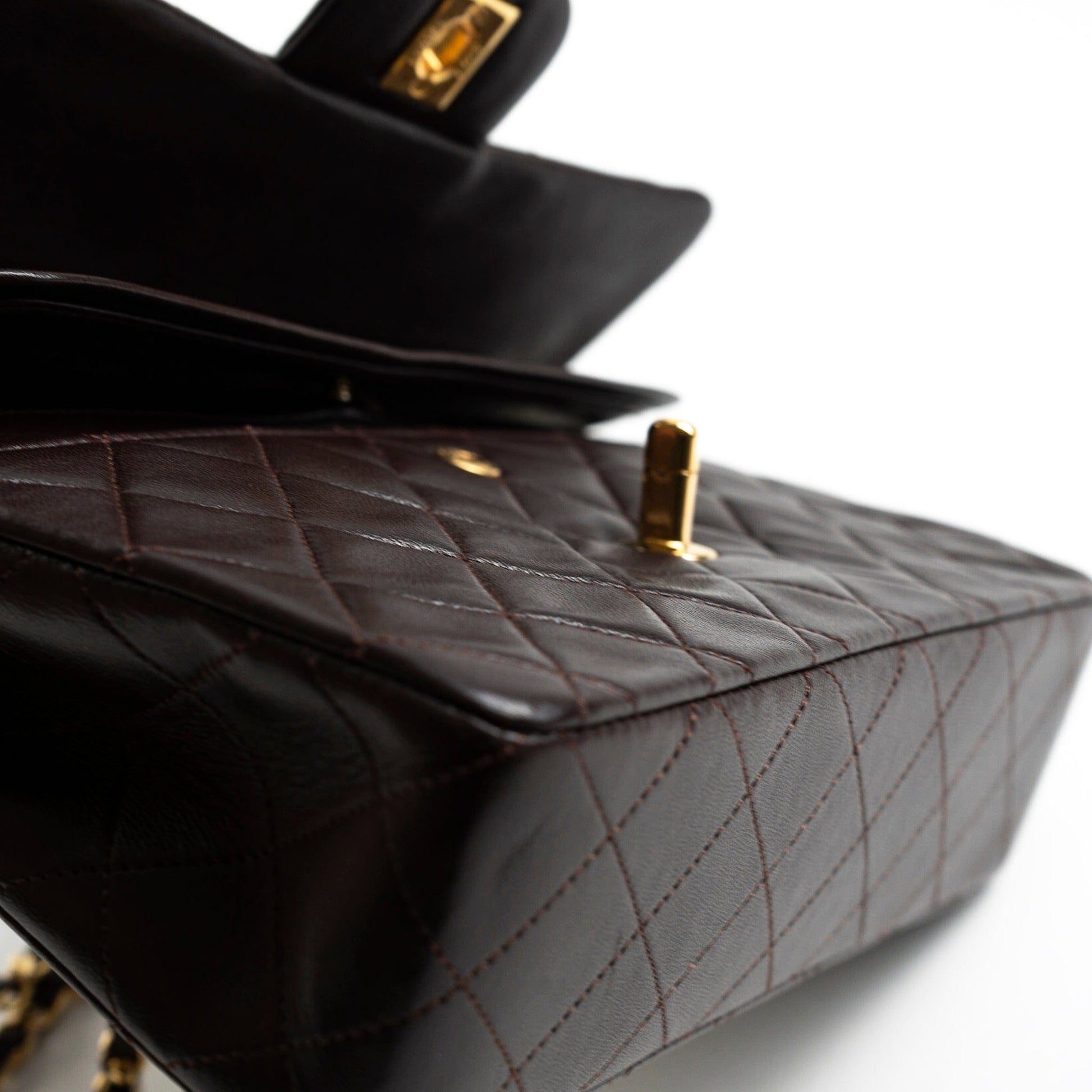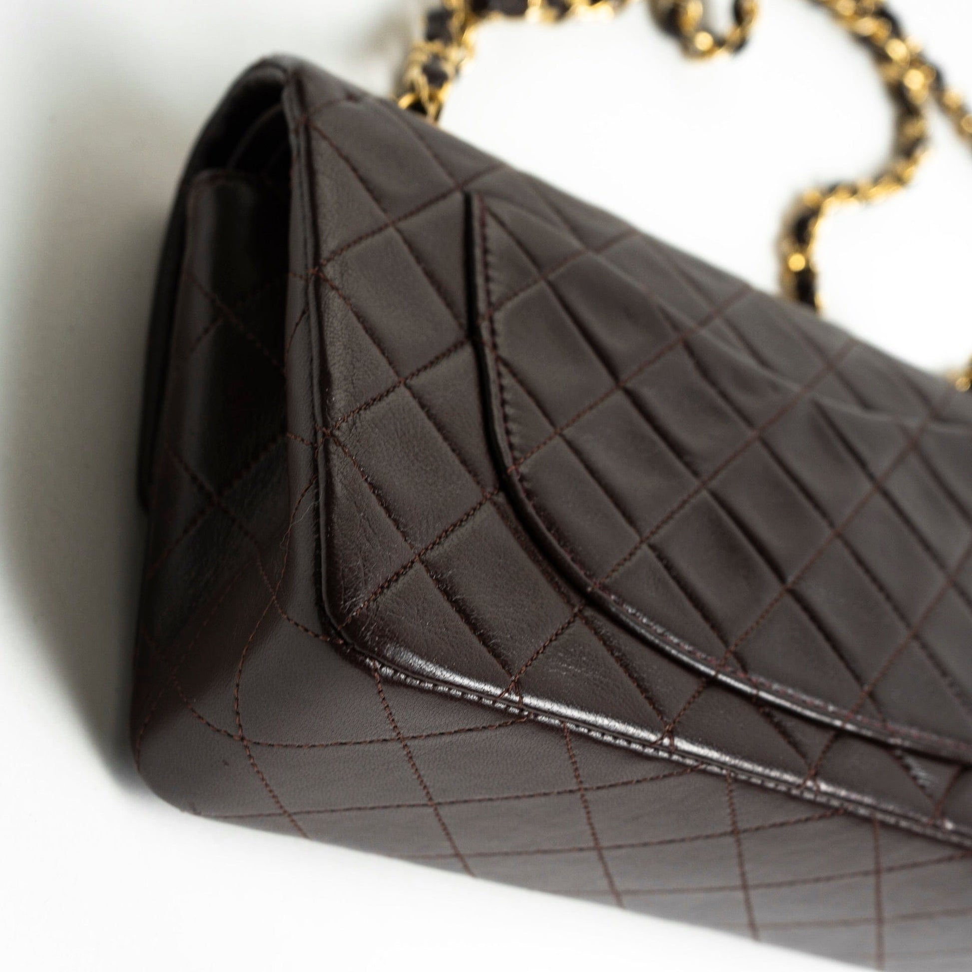 Vintage Brown Lambskin Quilted Classic Flap Small GHW