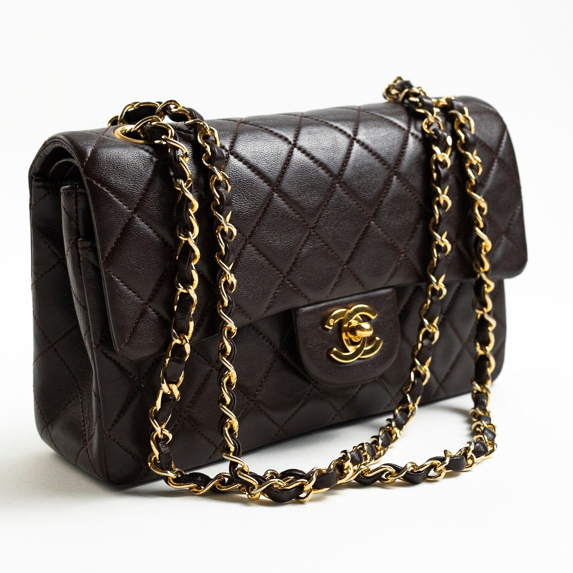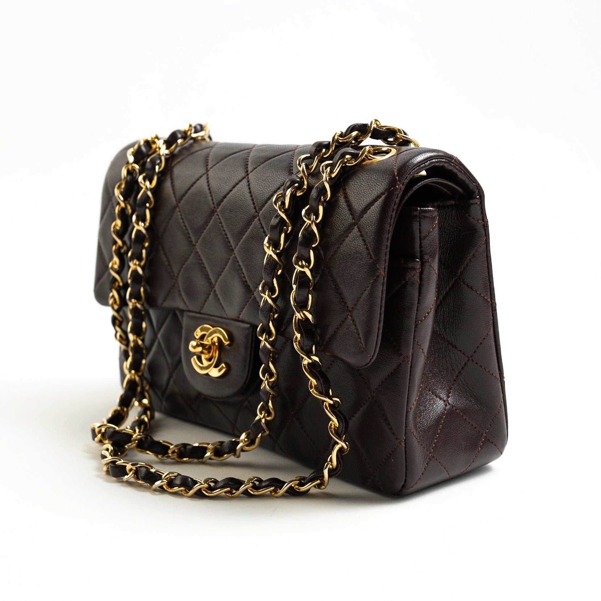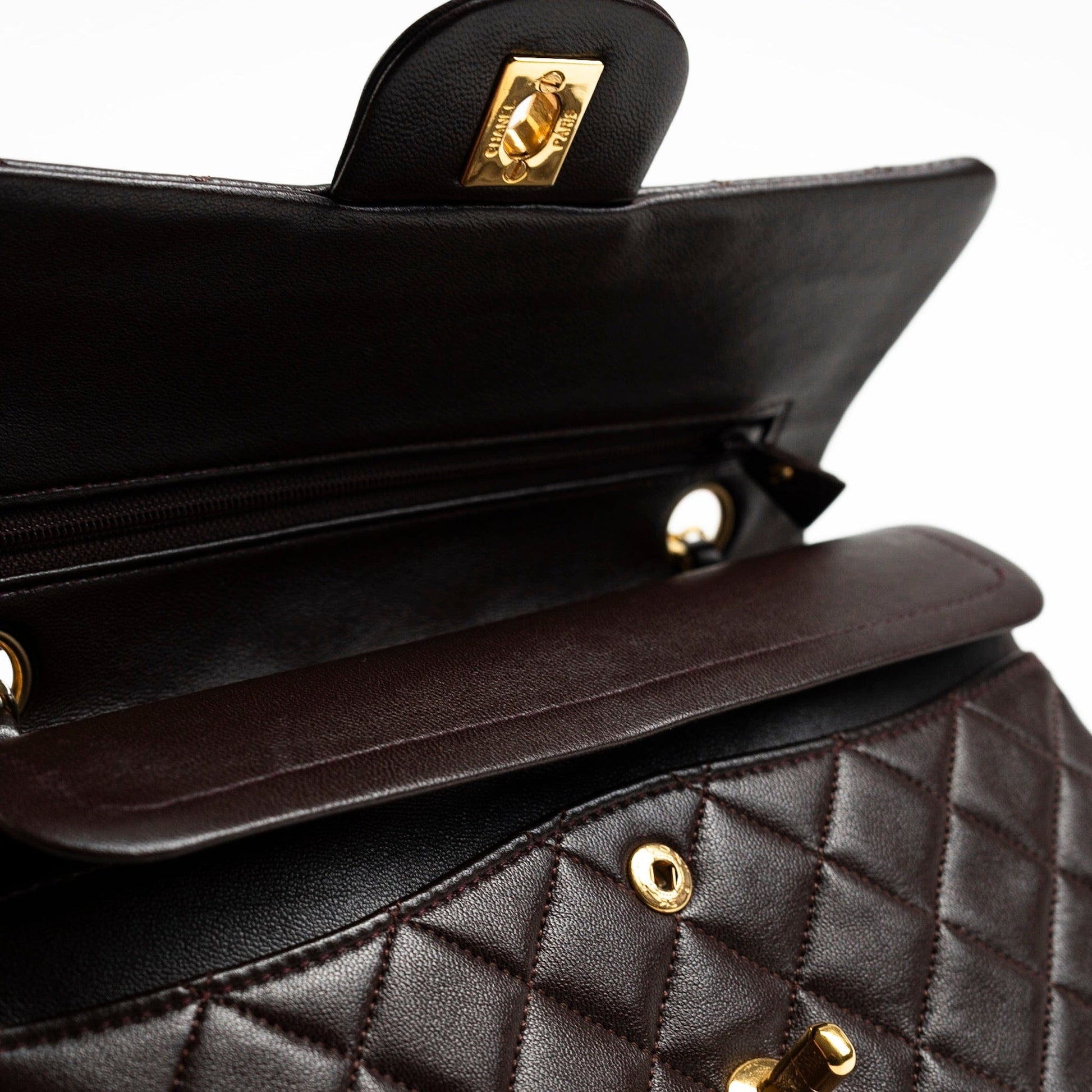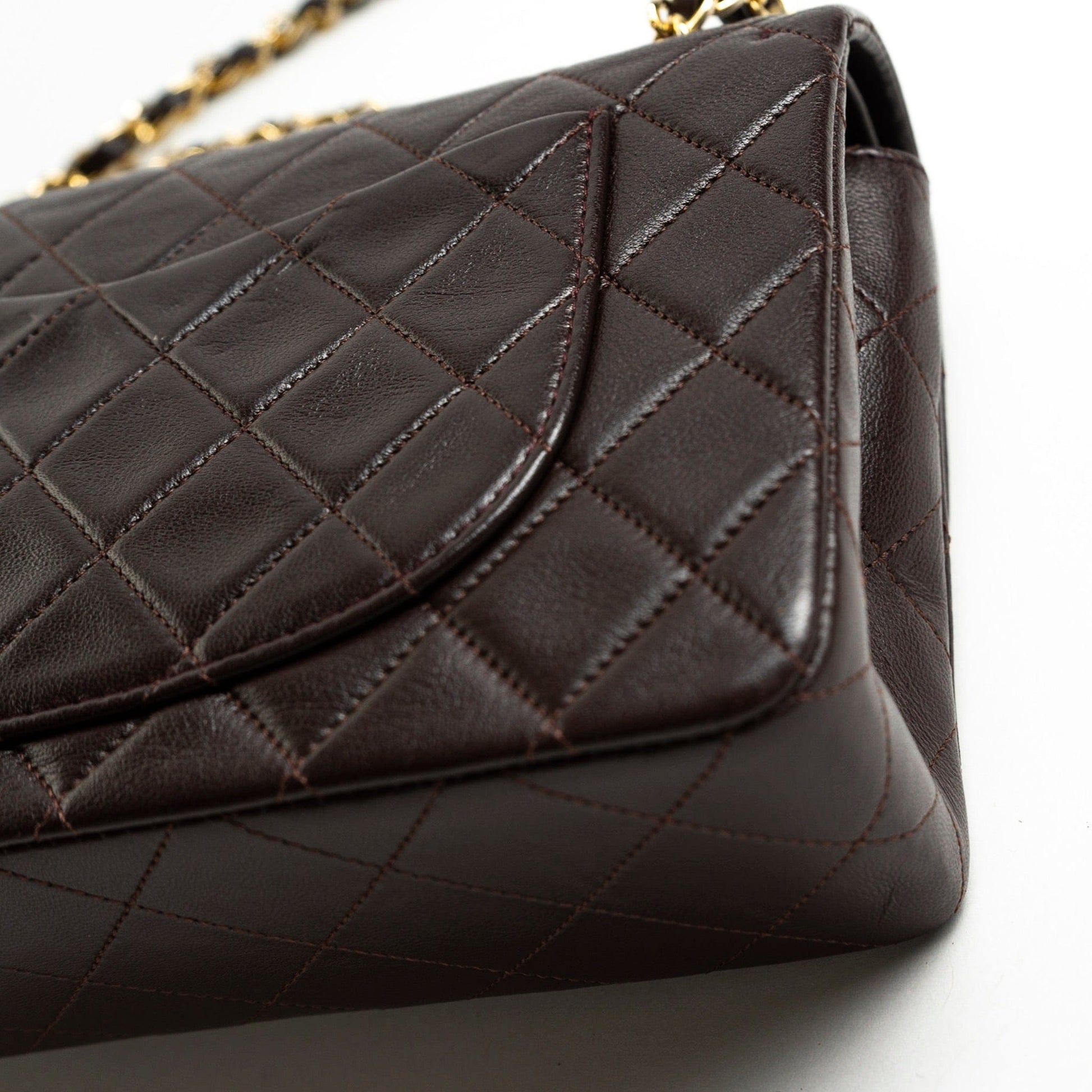 Vintage Brown Lambskin Quilted Classic Flap Small GHW