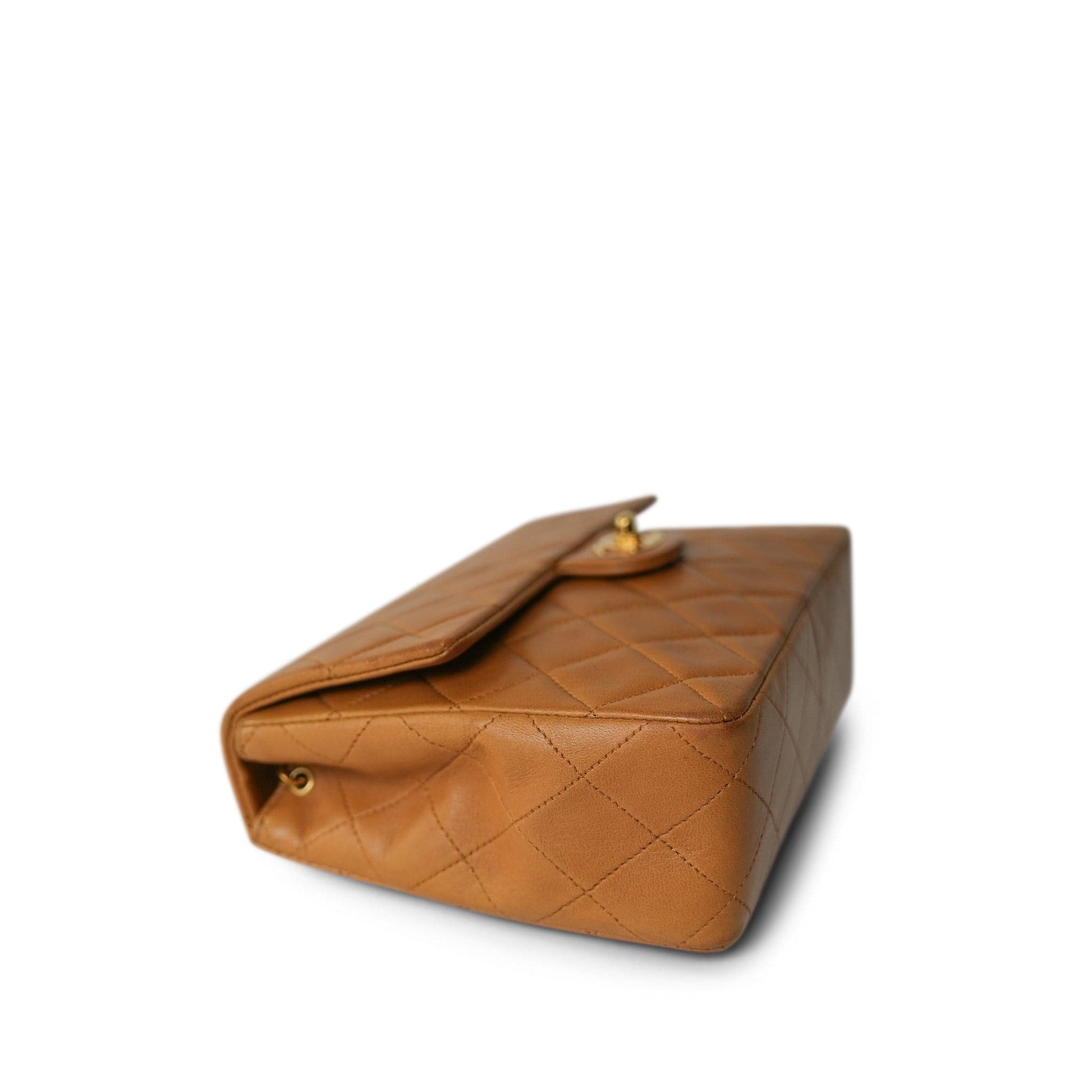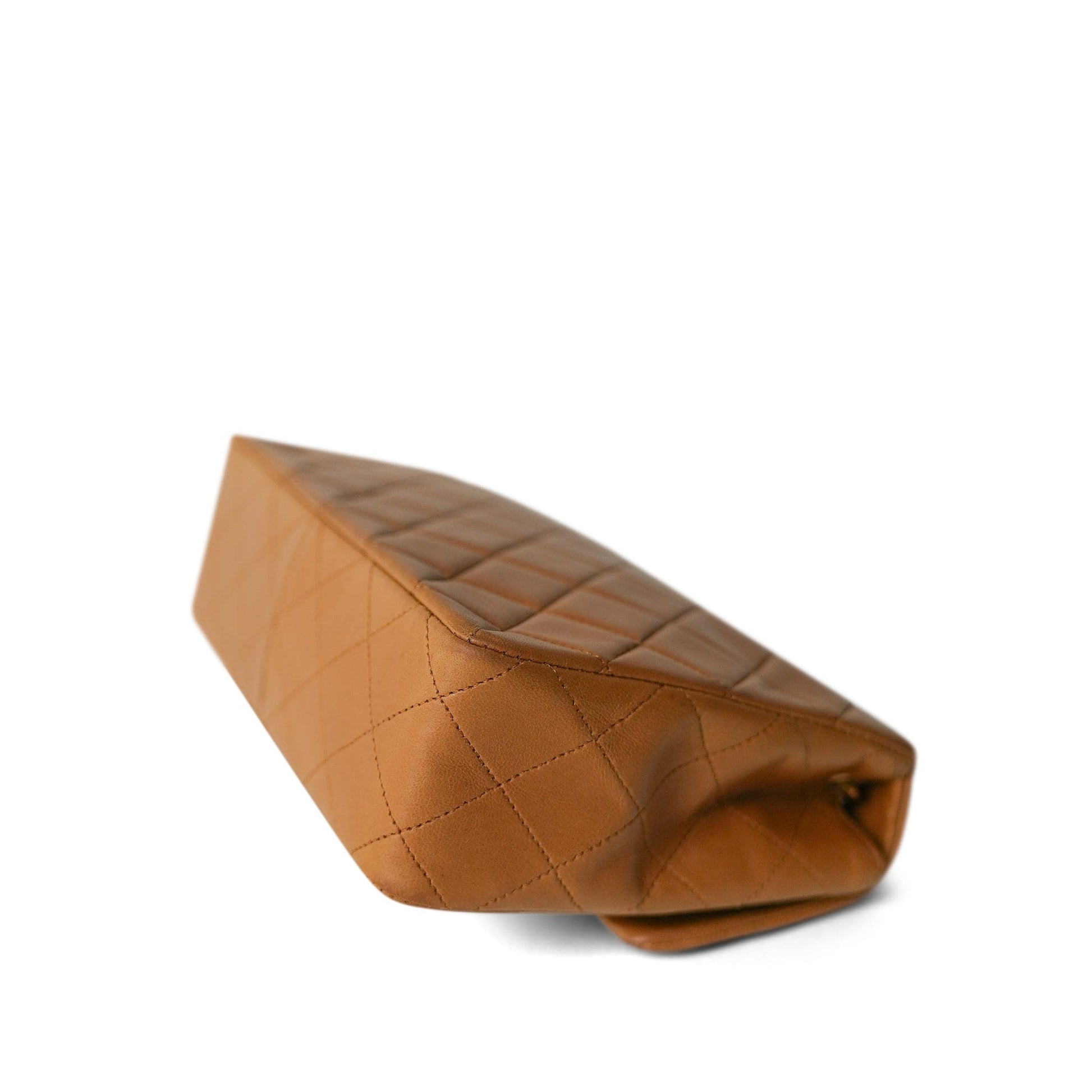 Vintage Caramel/Dark Brown Lambskin Quilted Square Flap Gold Hardware Mini