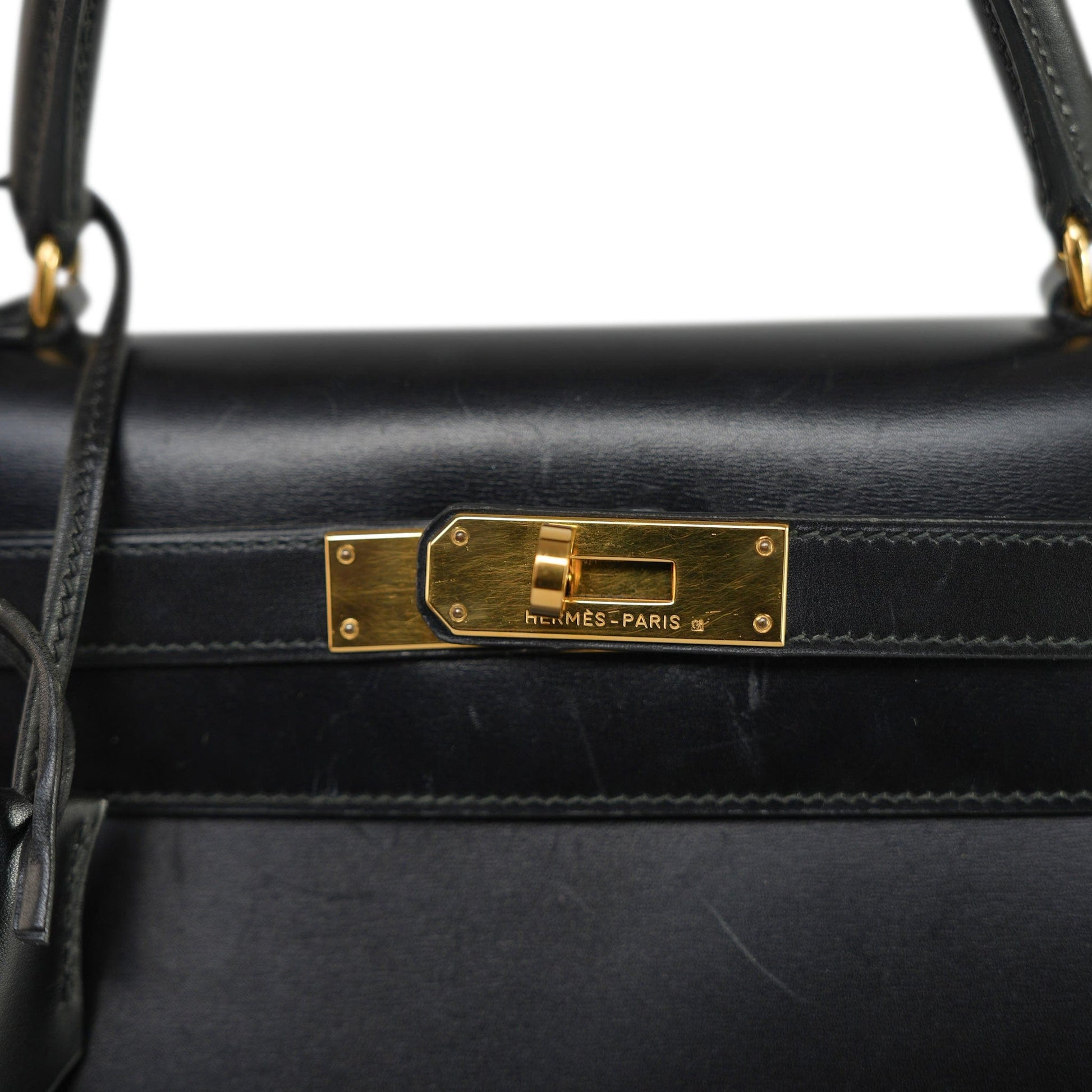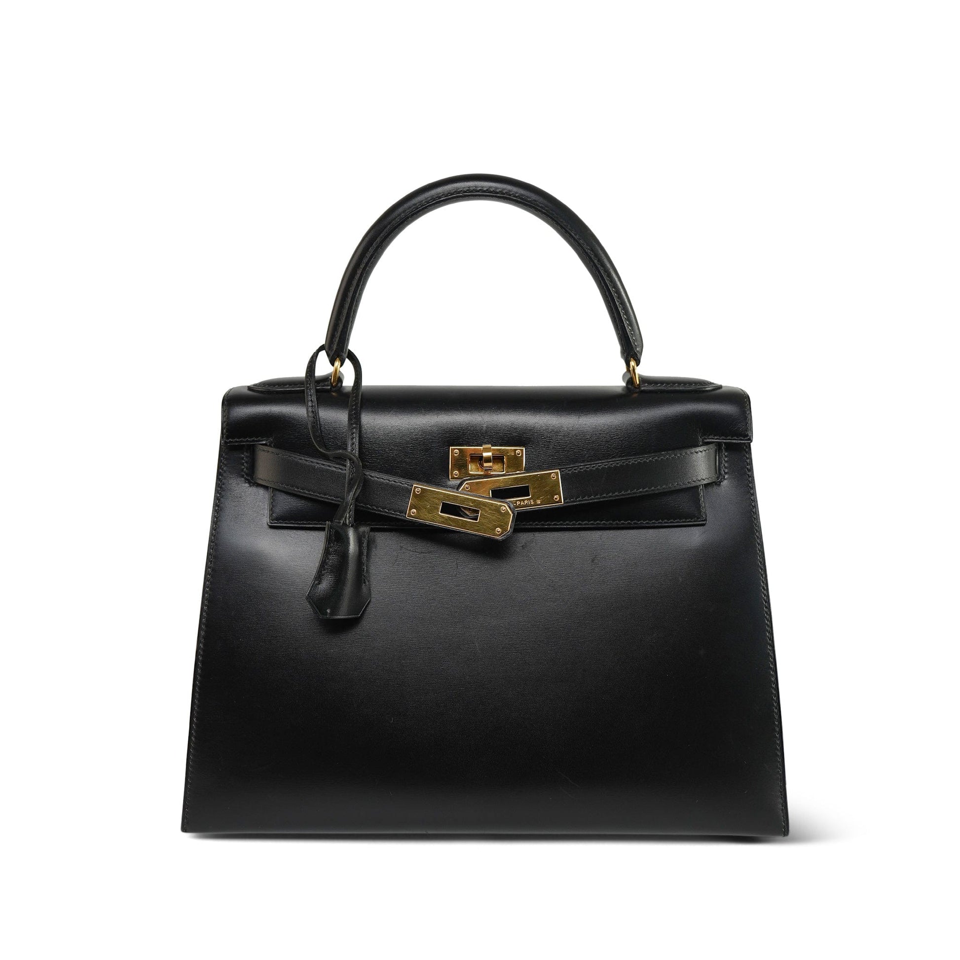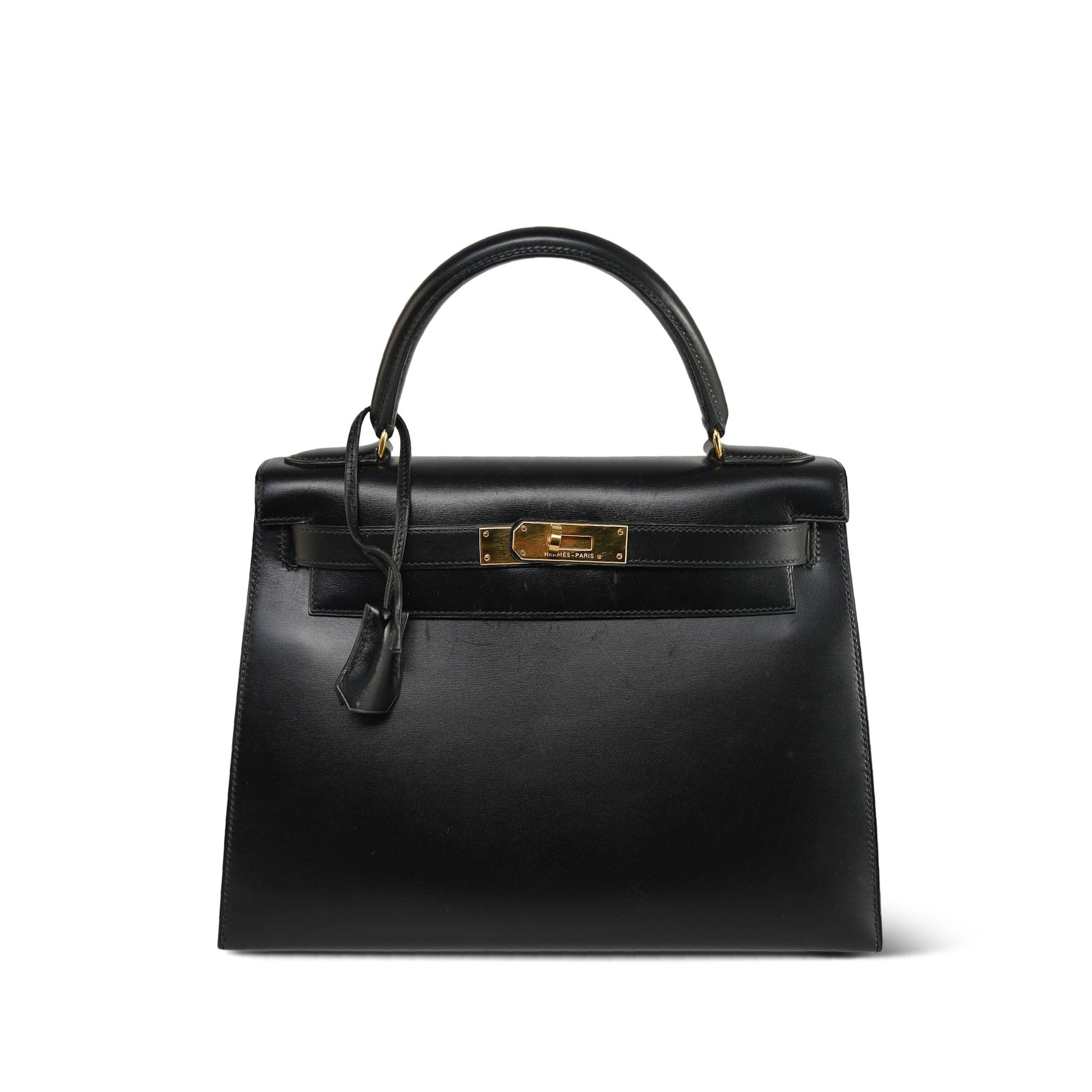 Vintage Kelly 28 Black Box Calfskin Gold Plated