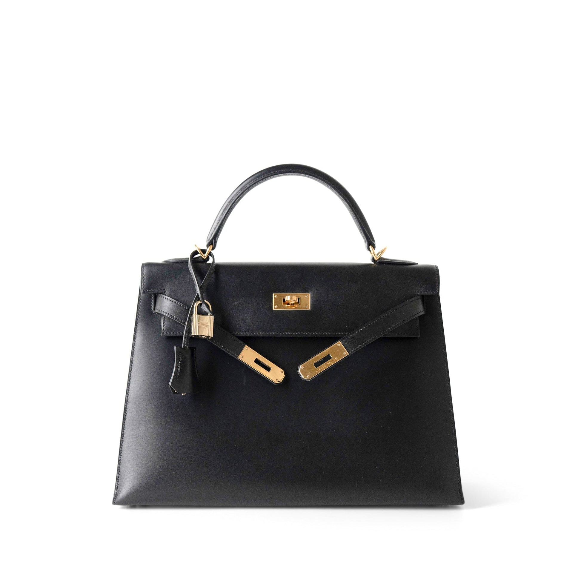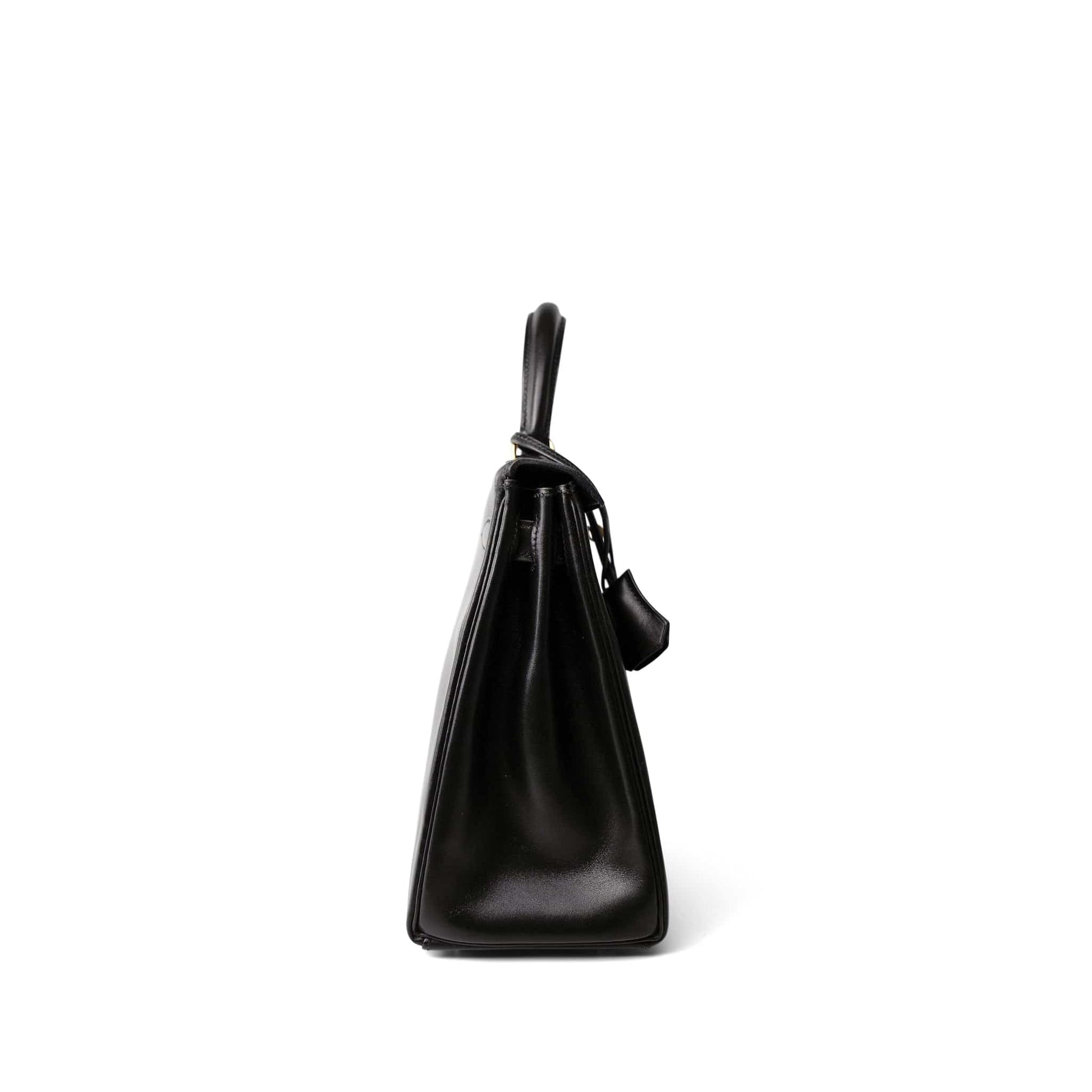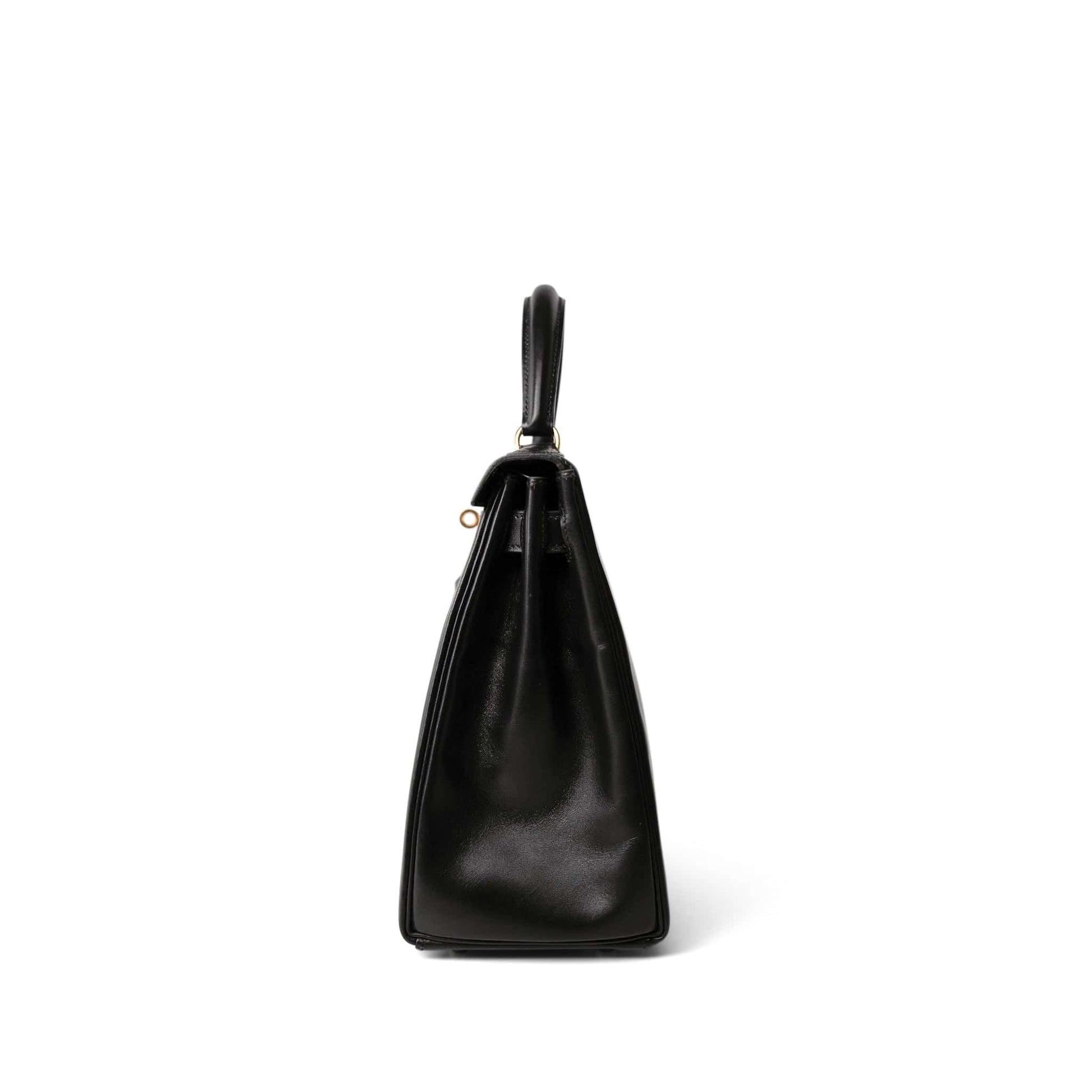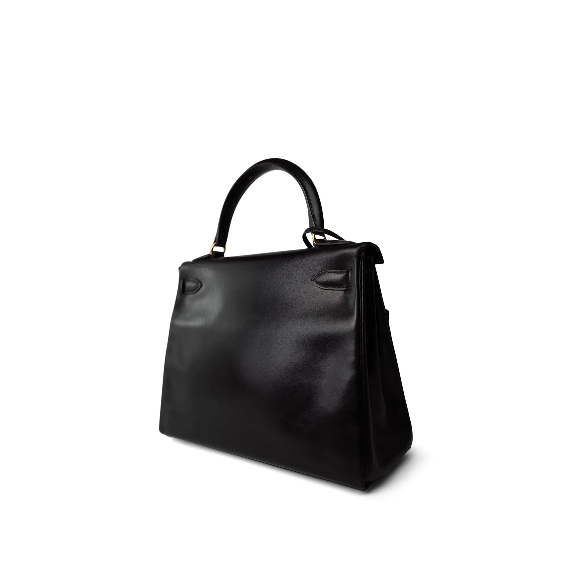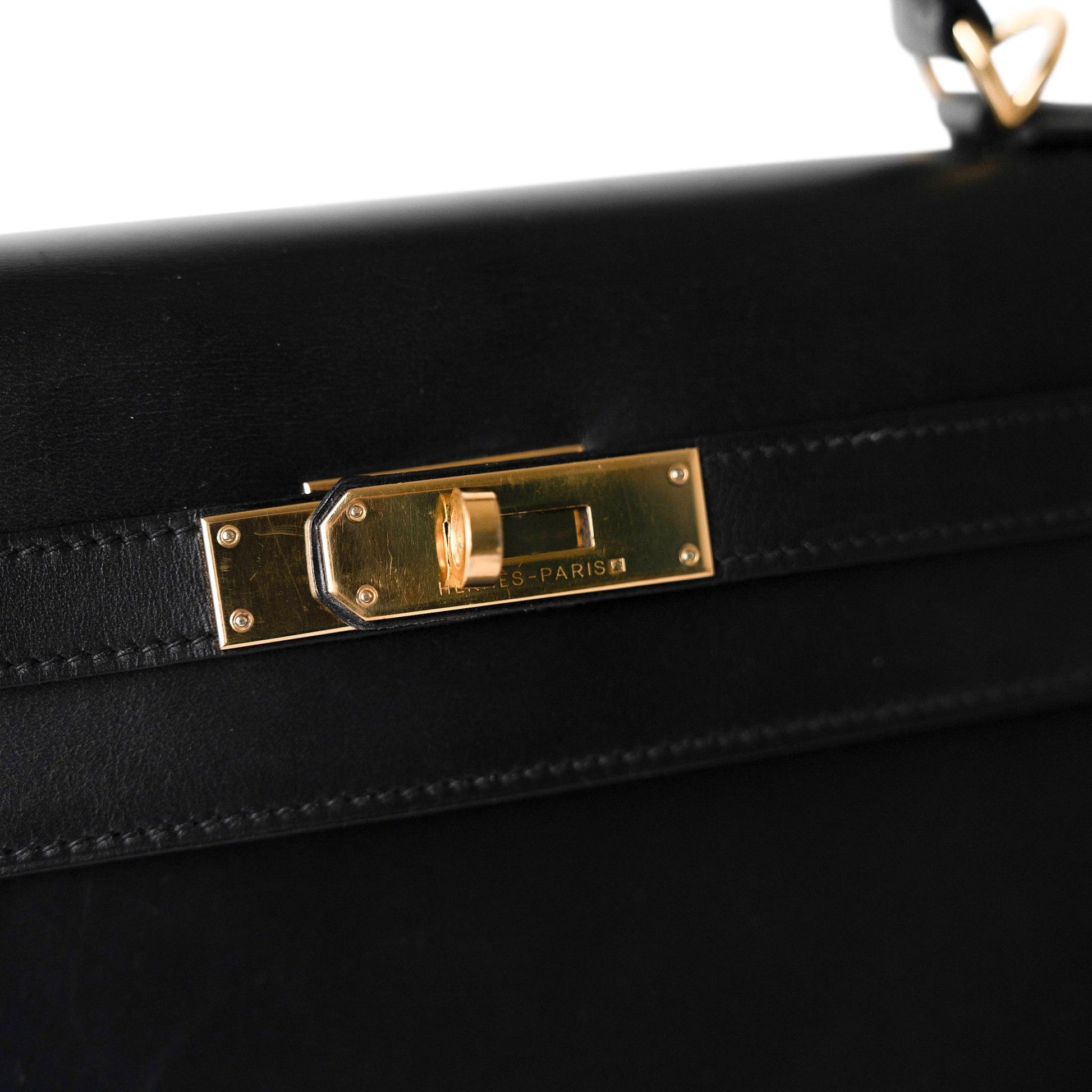 Vintage Kelly Retourne 28 Black Box Calfskin Gold Plated C Square Stamp