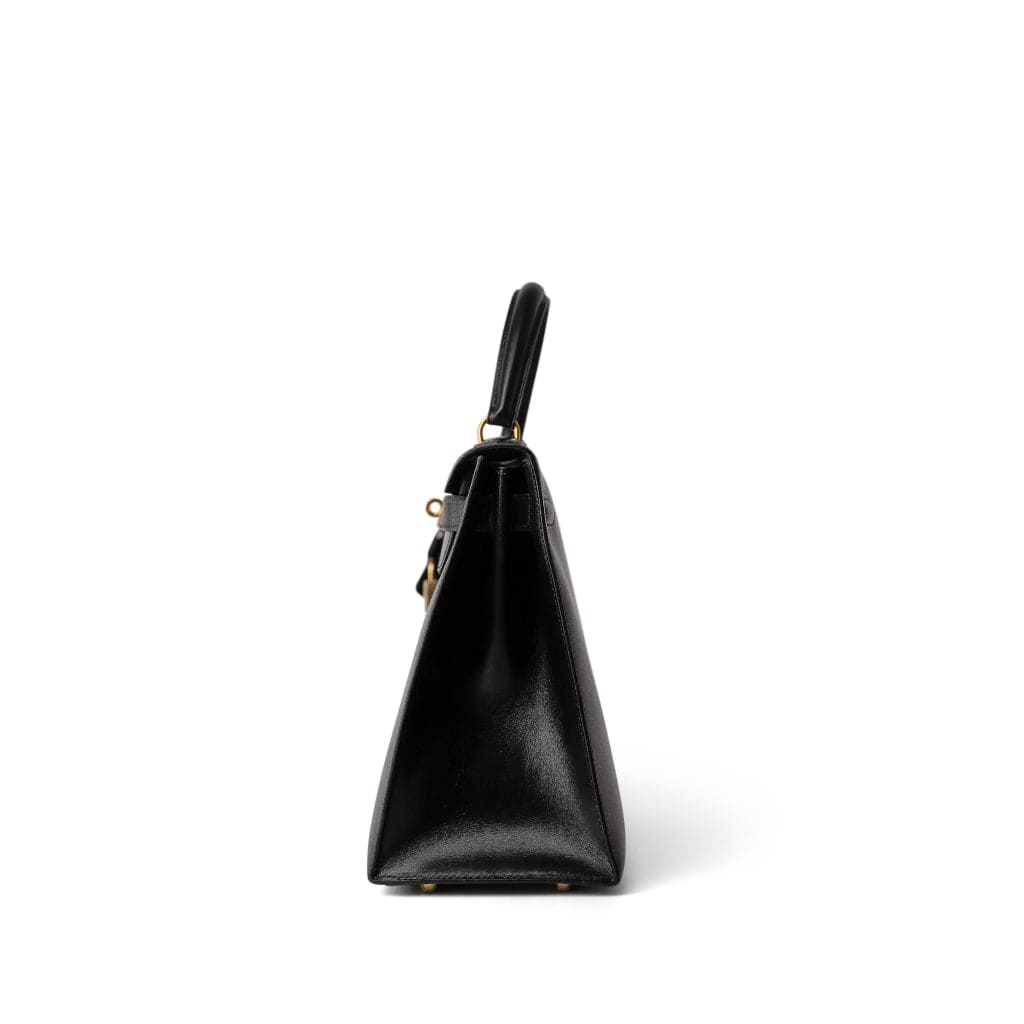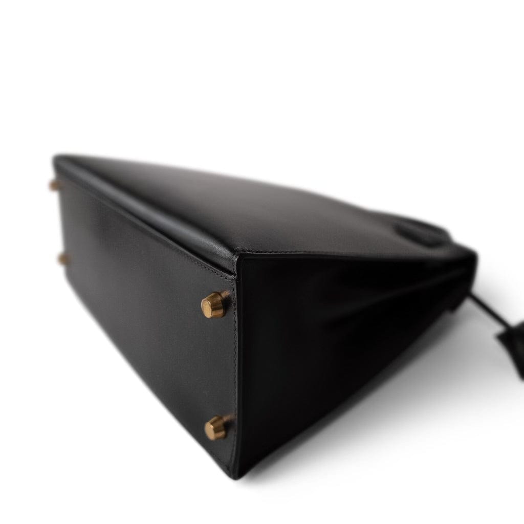 Vintage Kelly Sellier 28 Black Box Calfskin Gold Plated Y Circle Stamp