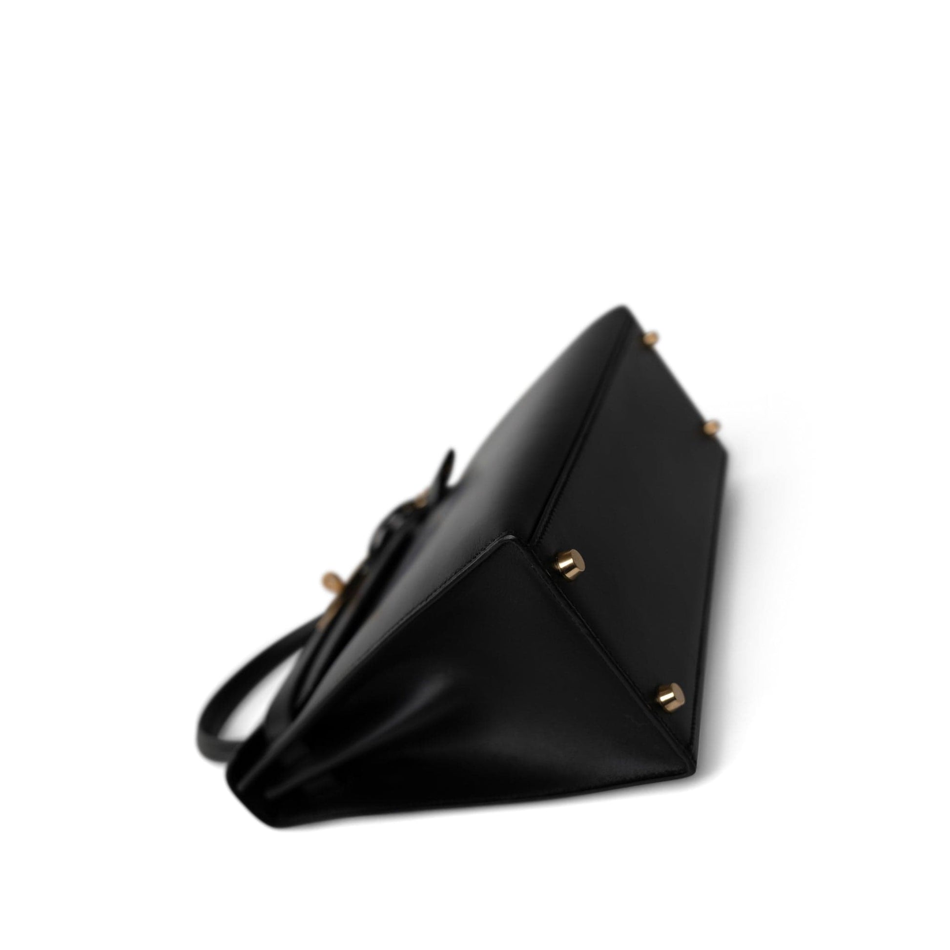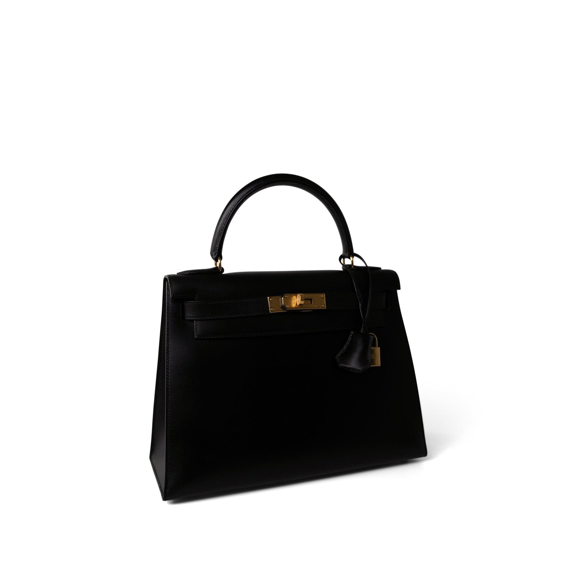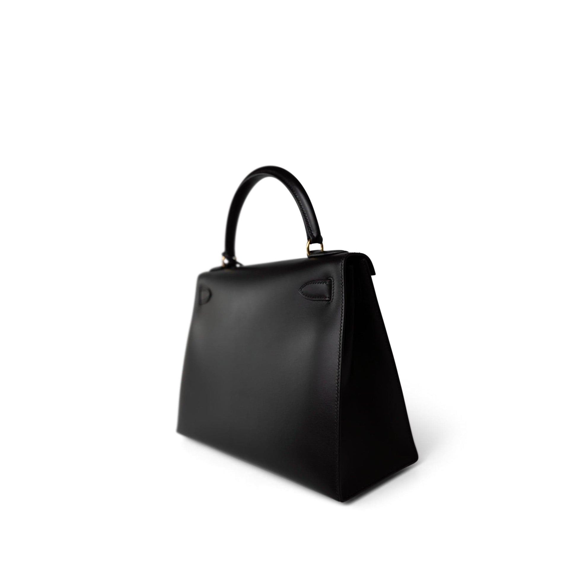 Vintage Kelly Sellier 28 Black Box Calfskin Gold Plated Y Circle Stamp