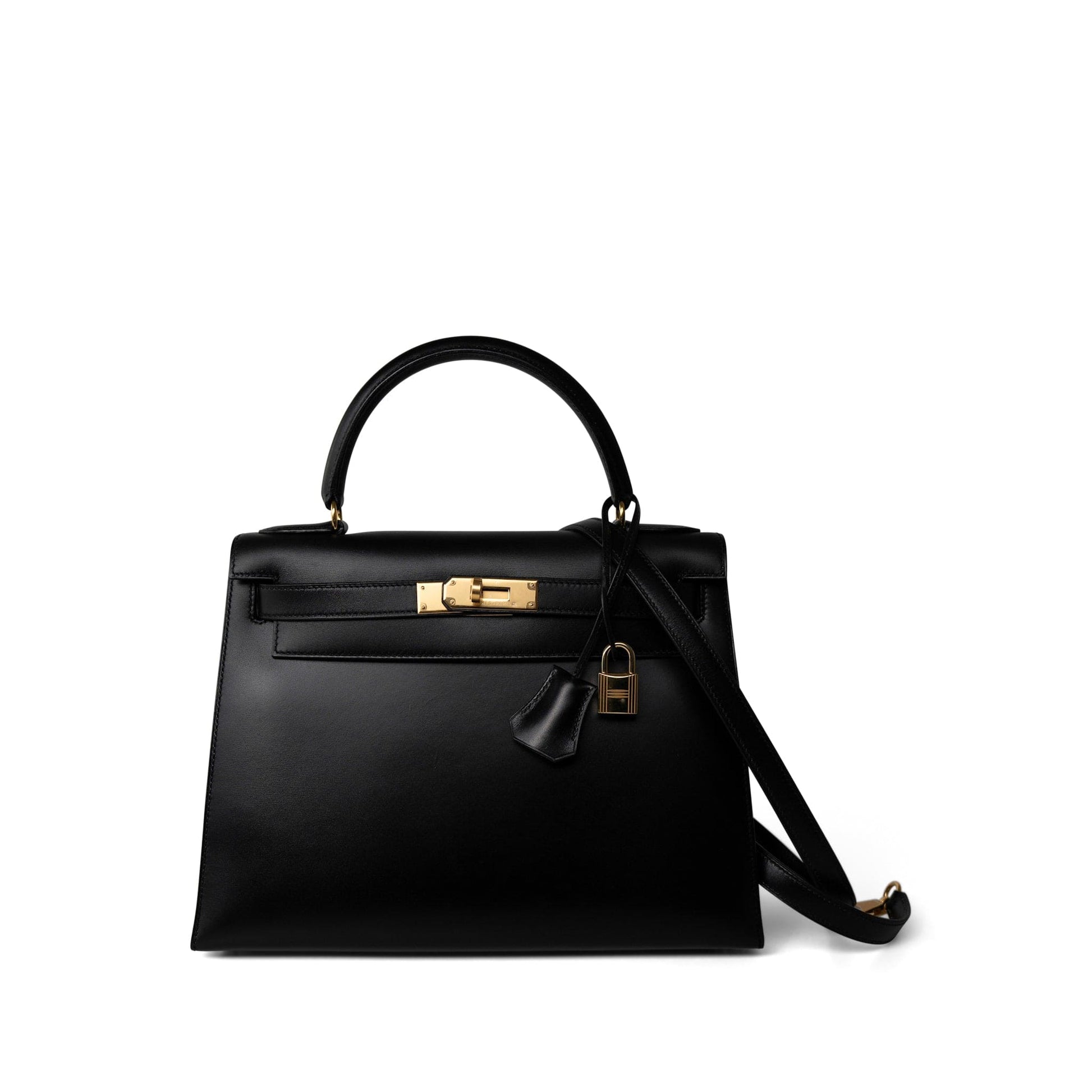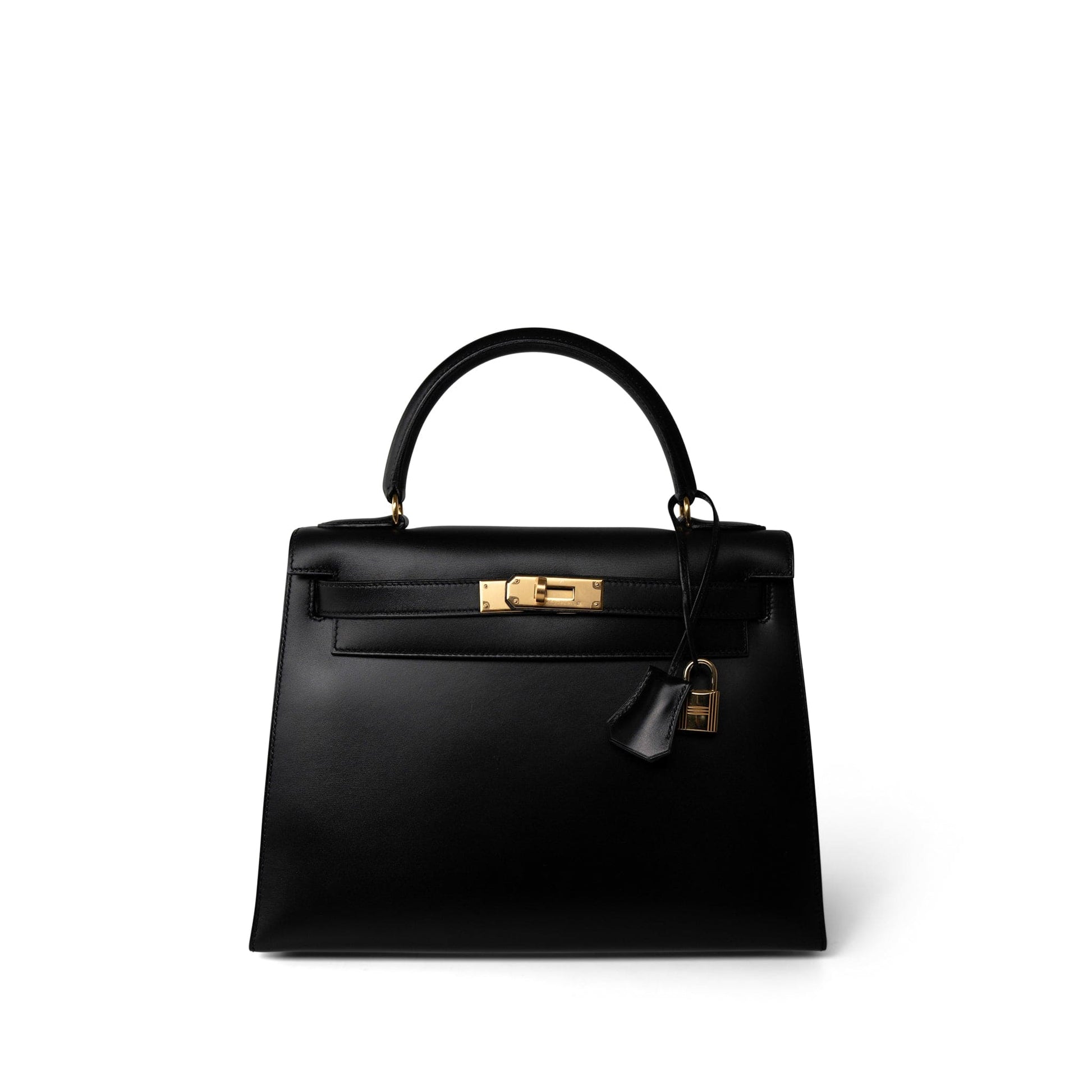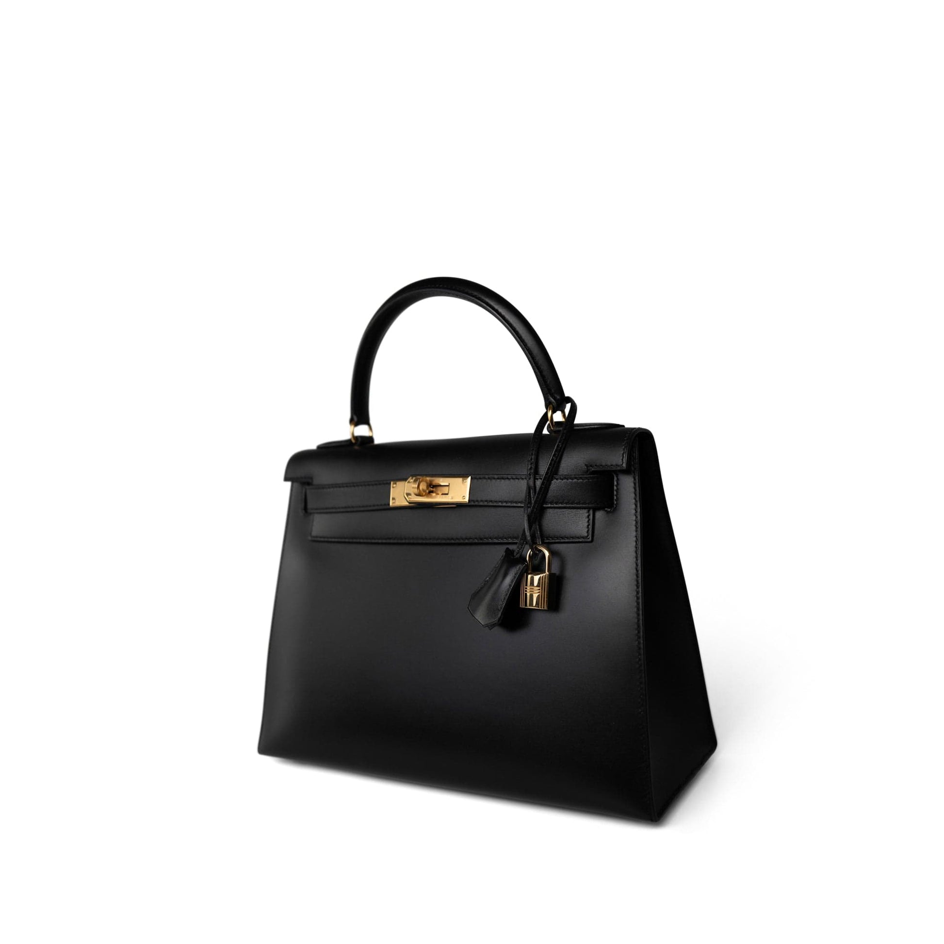 Vintage Kelly Sellier 28 Black Box Calfskin Gold Plated Y Circle Stamp