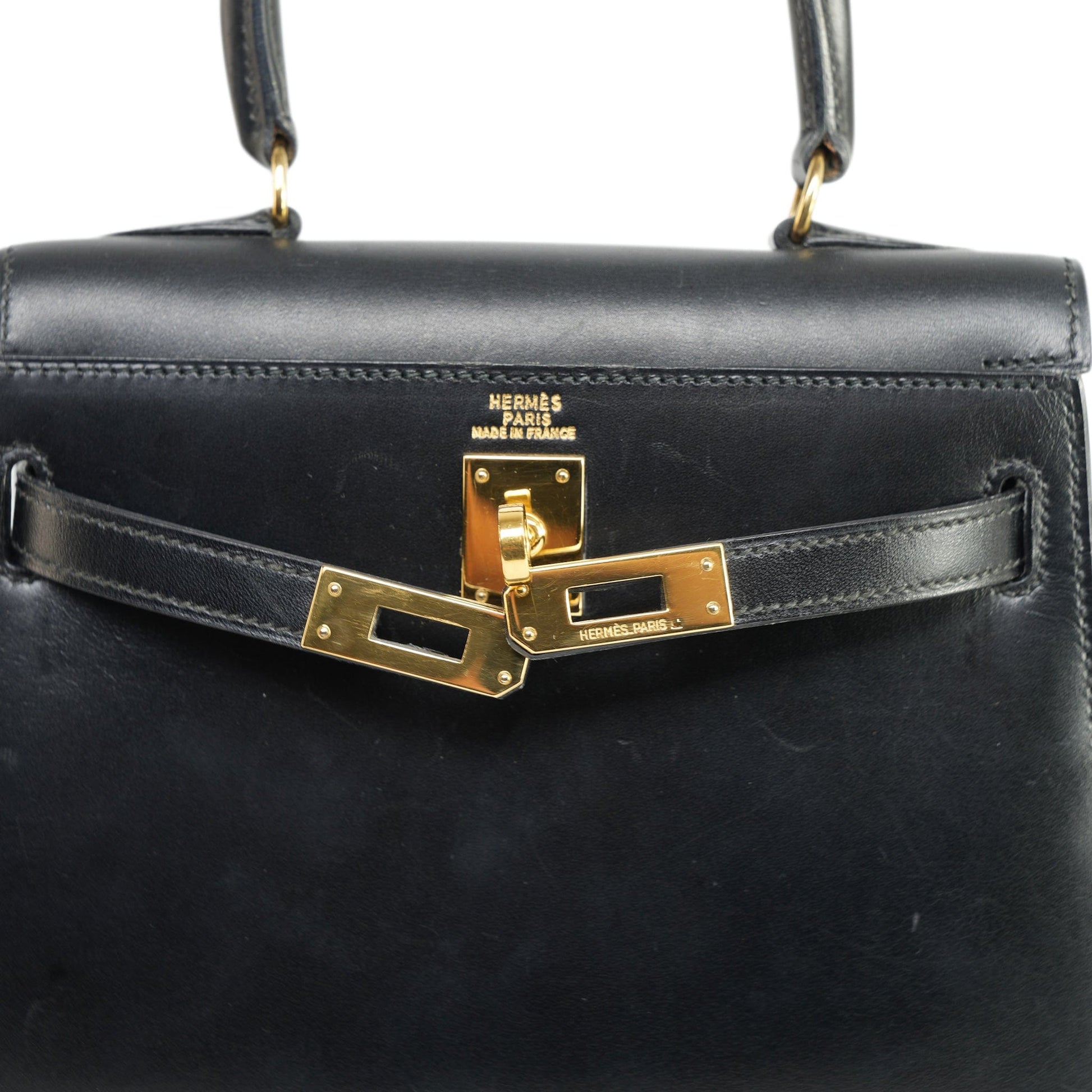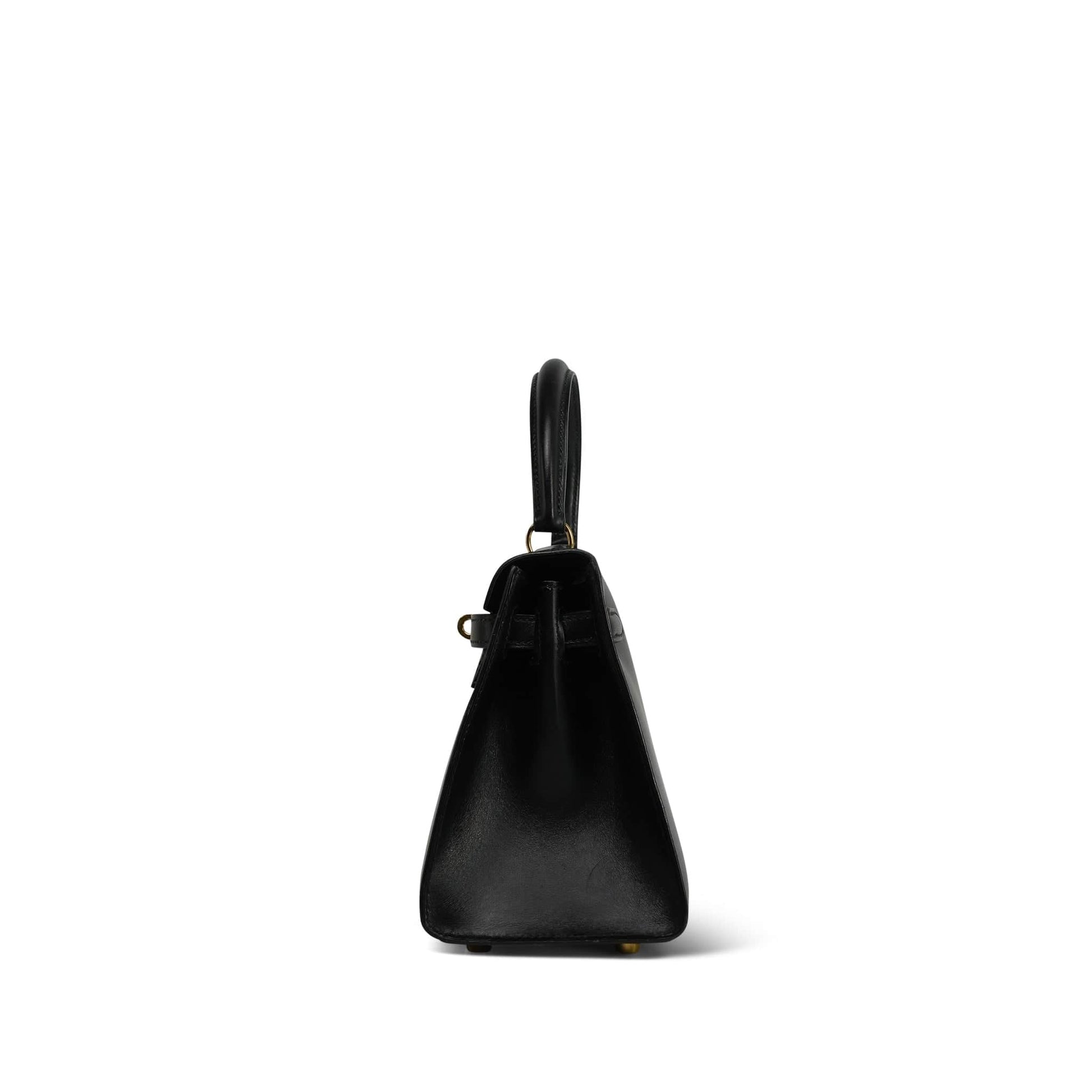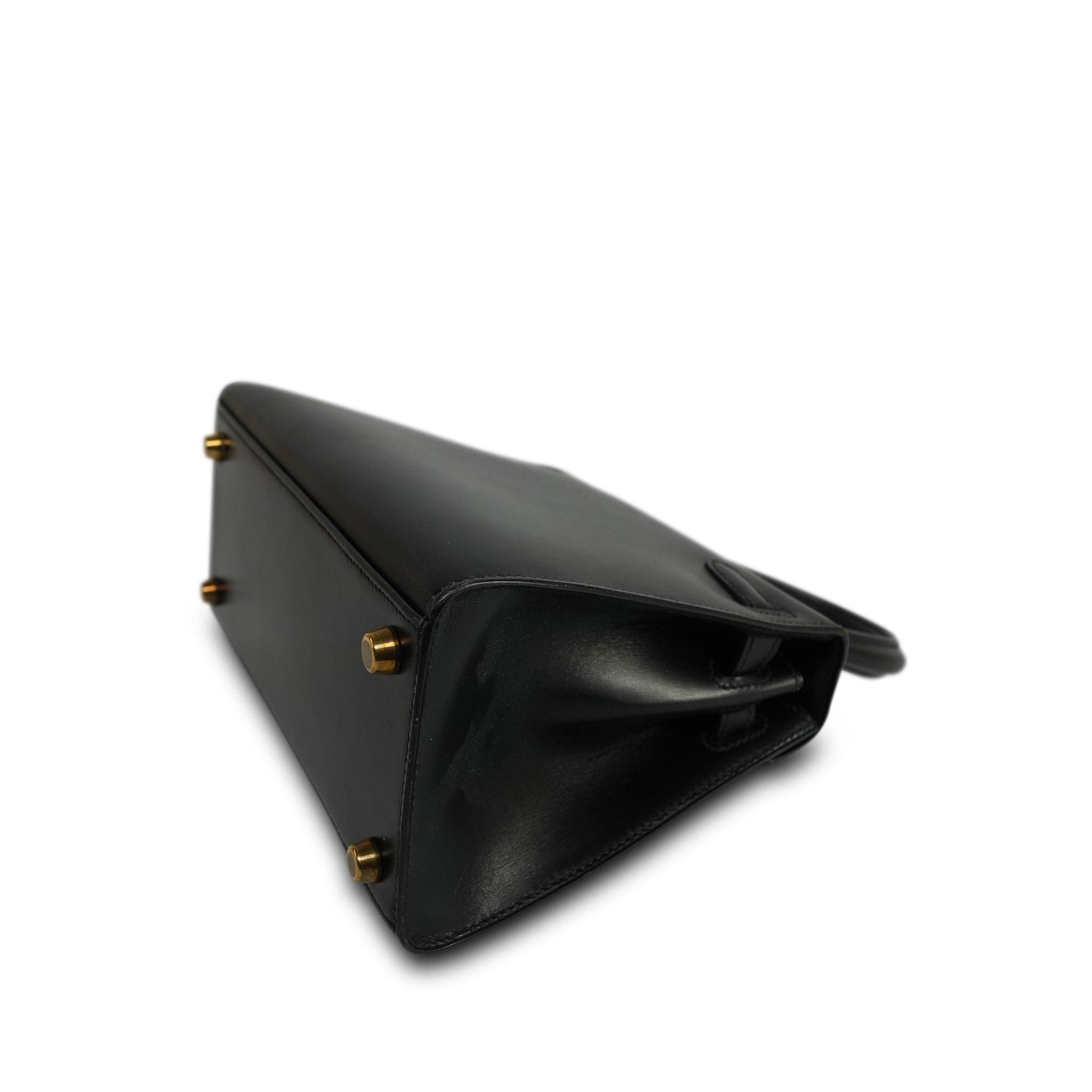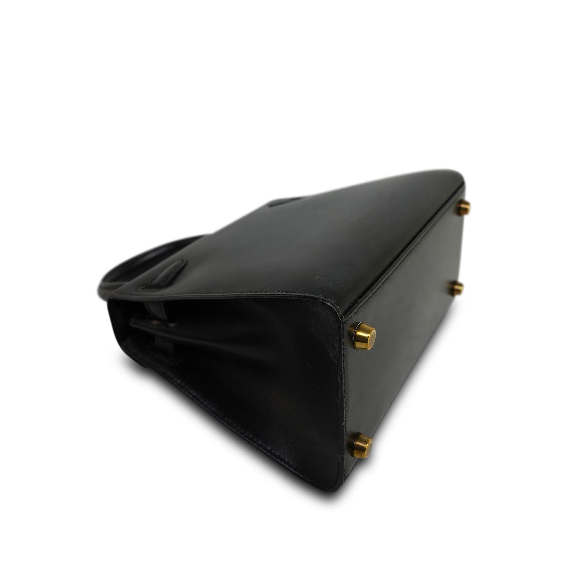 Vintage Mini Kelly Black Box Calfskin Gold Plated (U) Stamp
