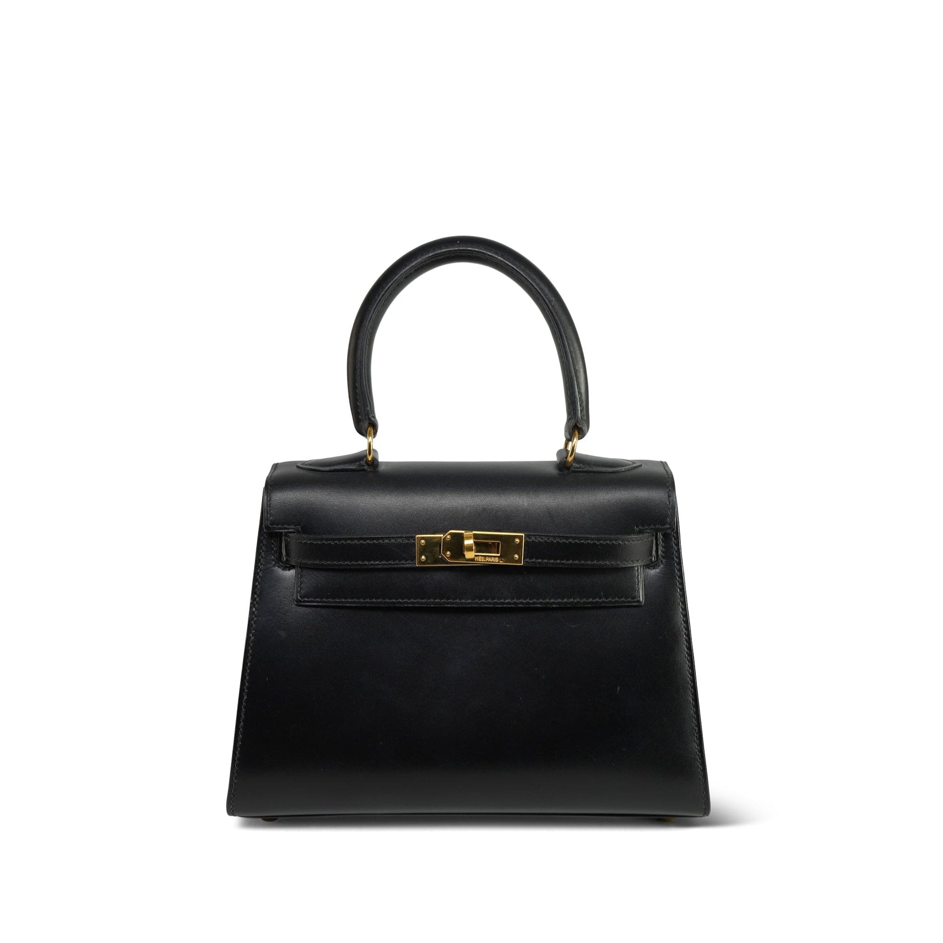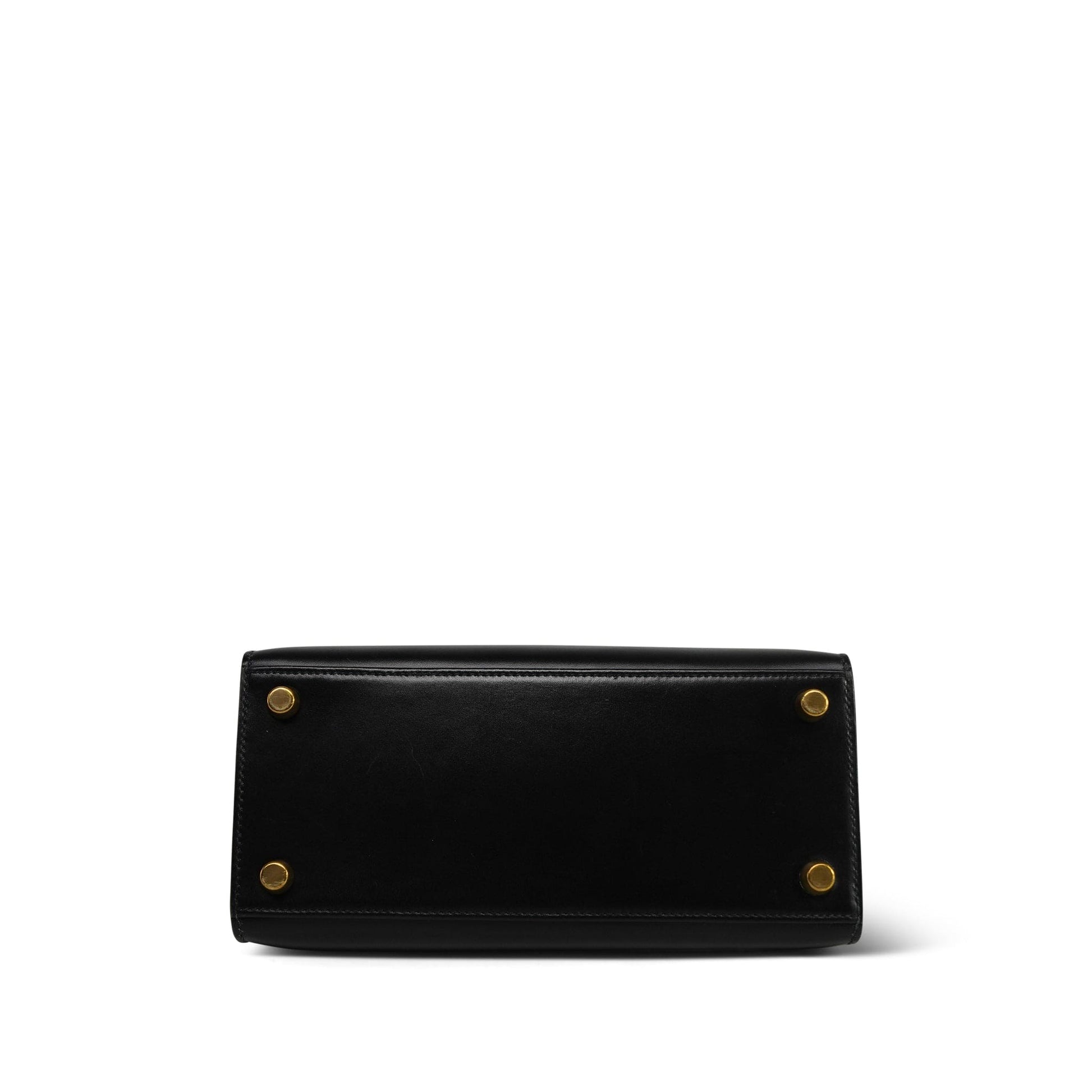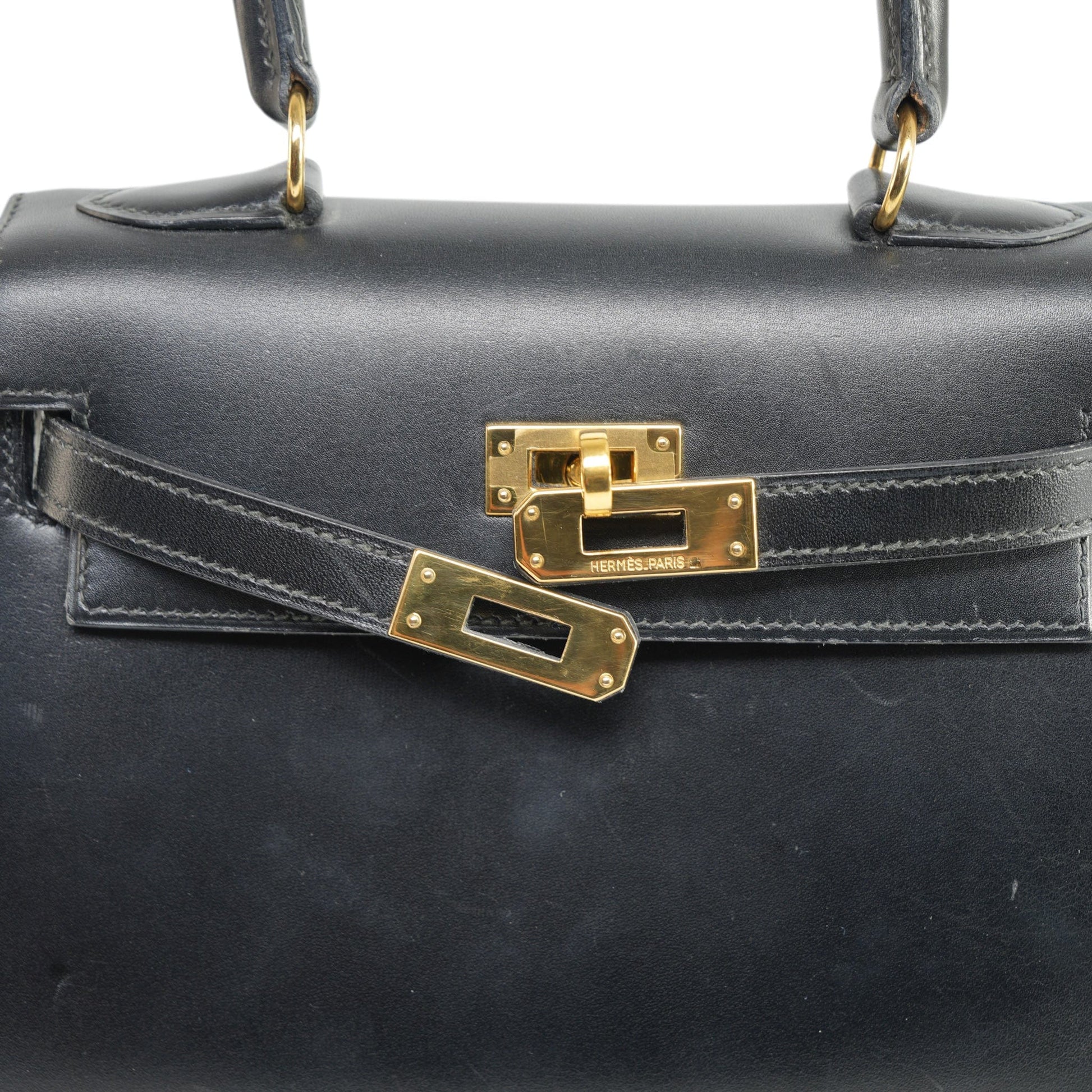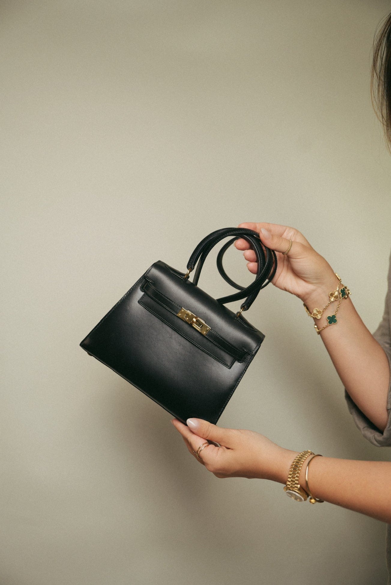 Vintage Mini Kelly Black Box Calfskin Gold Plated (U) Stamp
