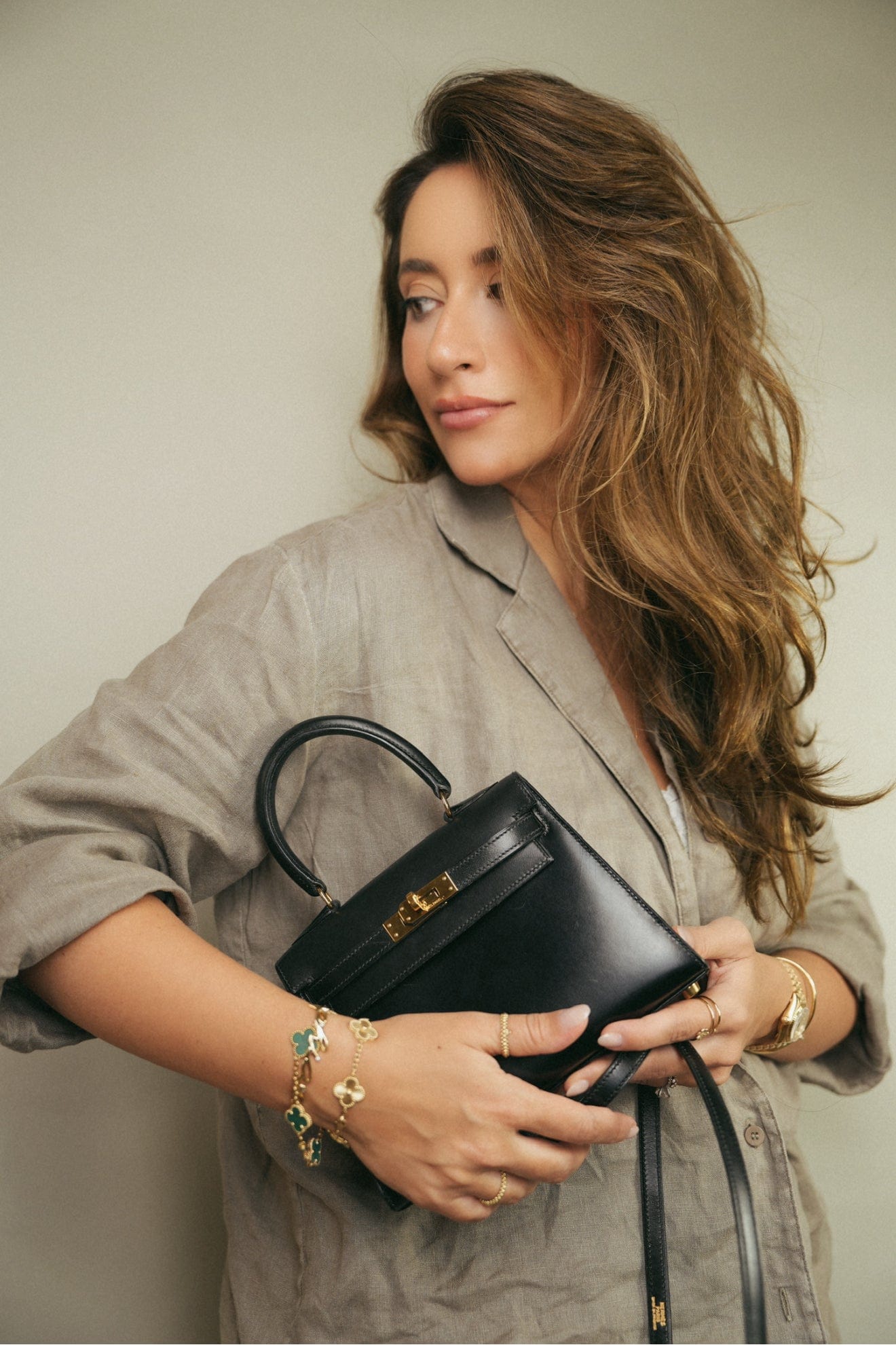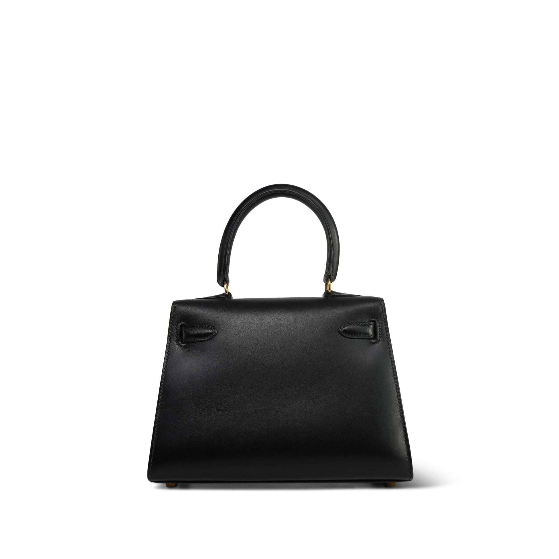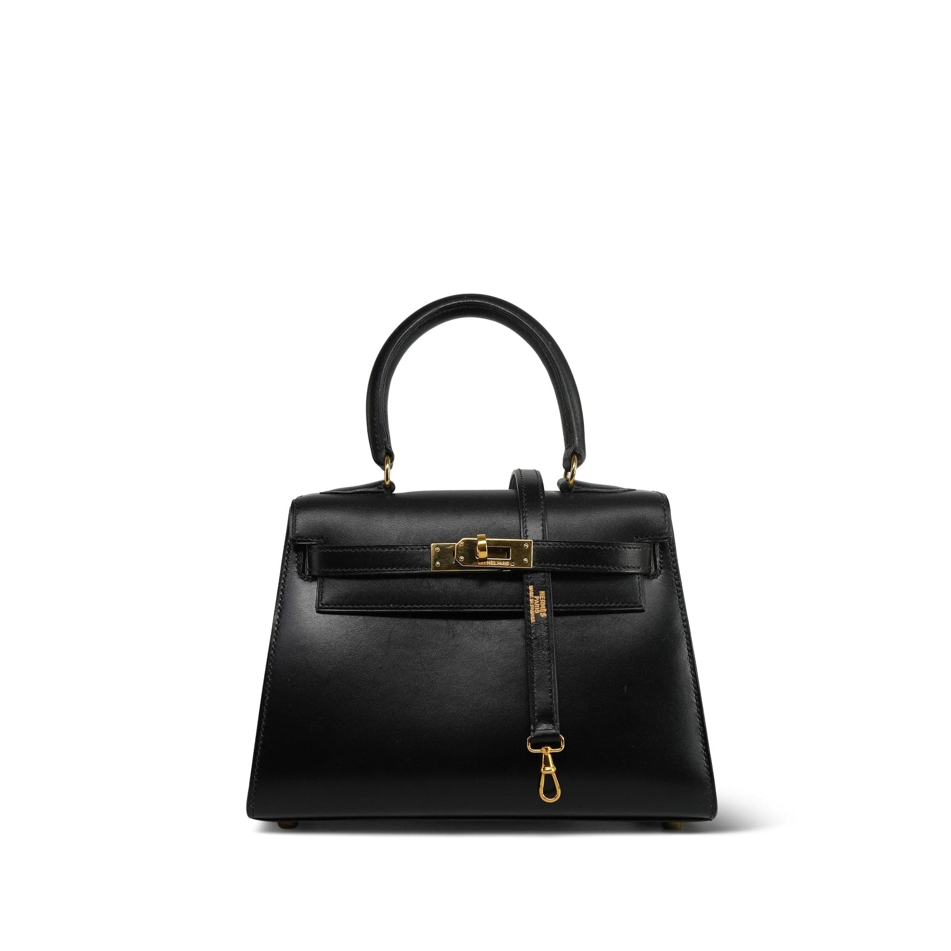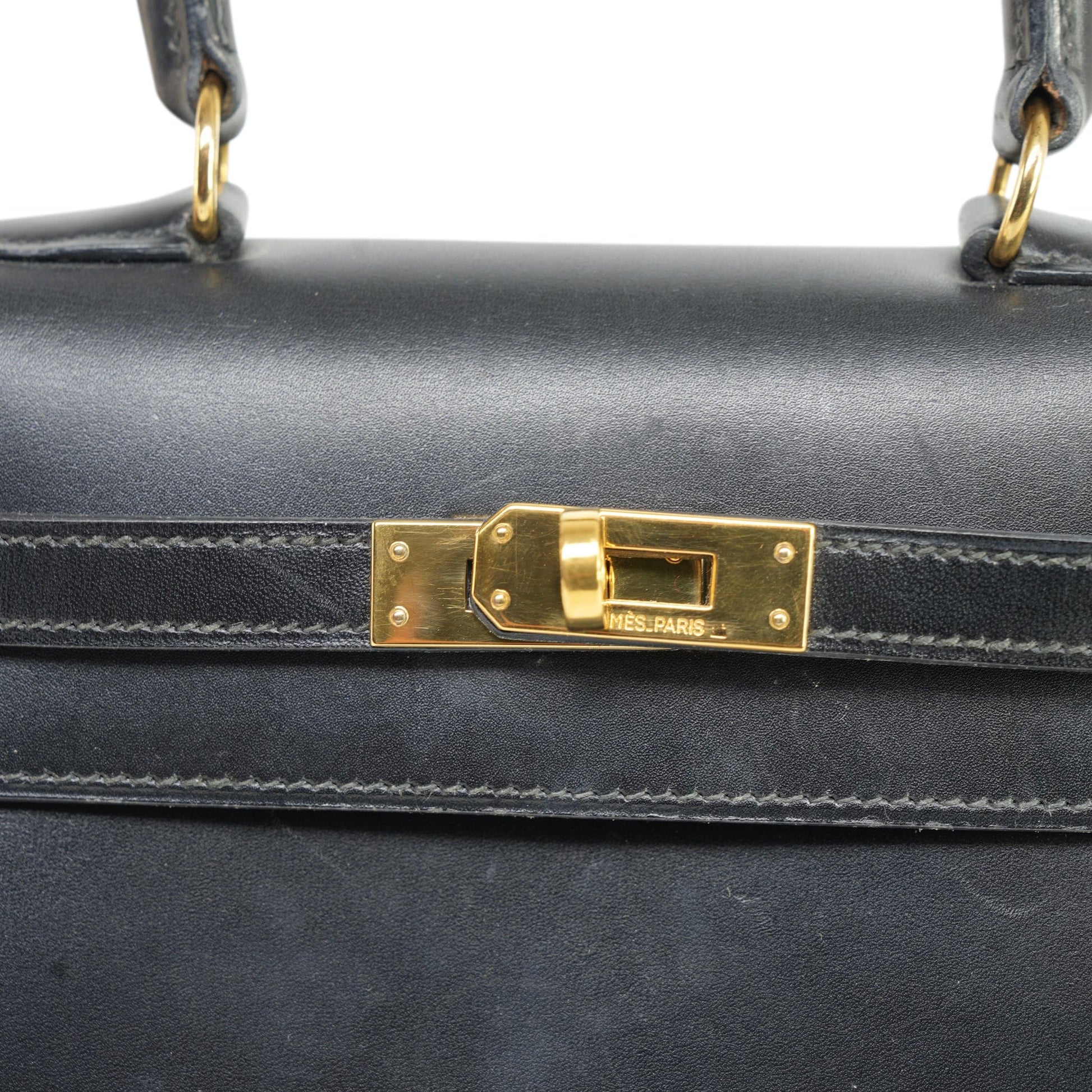 Vintage Mini Kelly Black Box Calfskin Gold Plated (U) Stamp