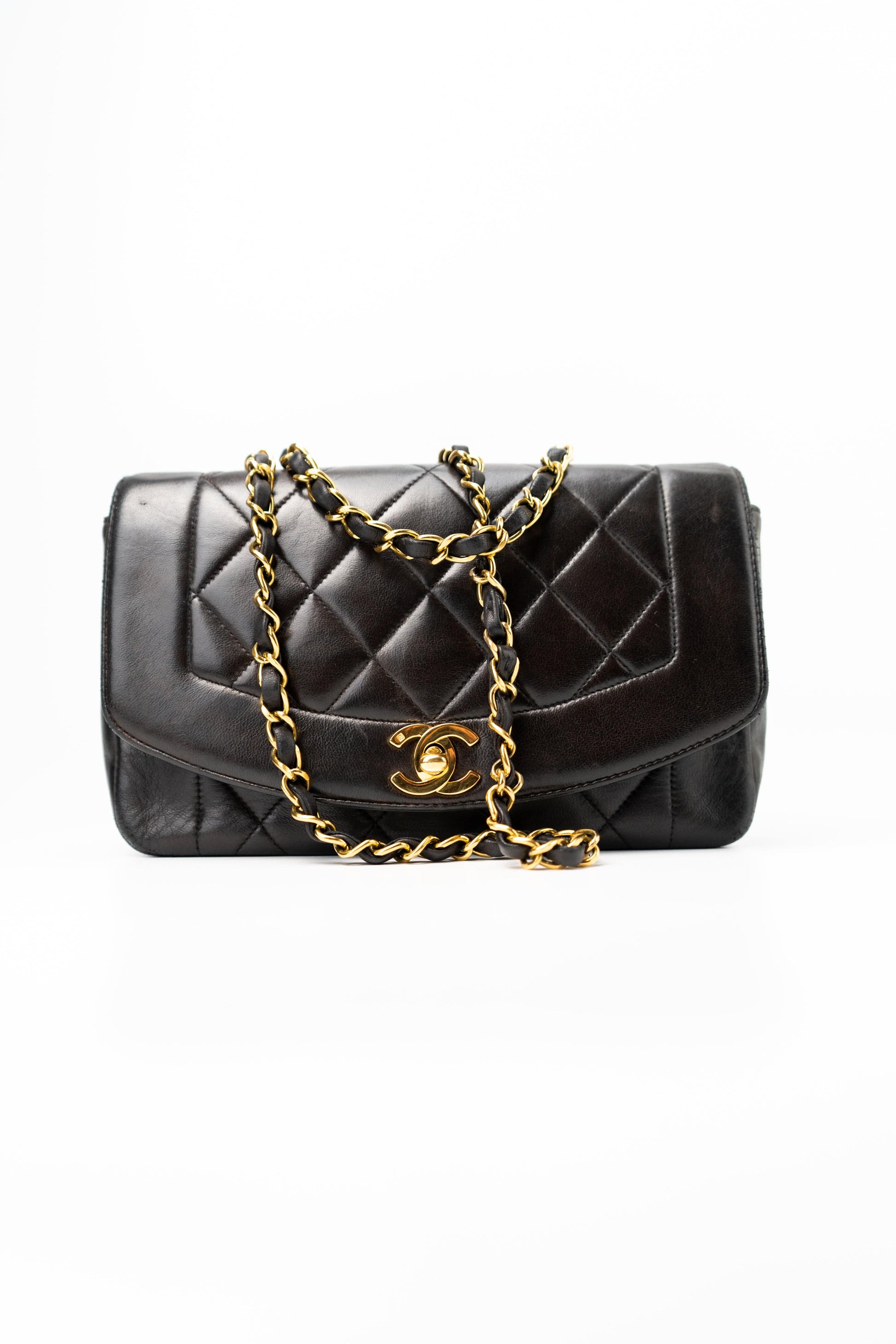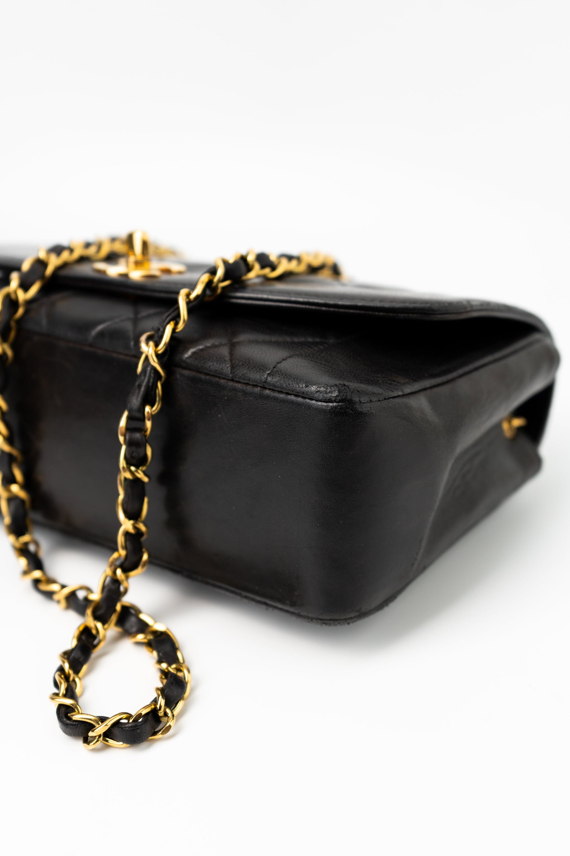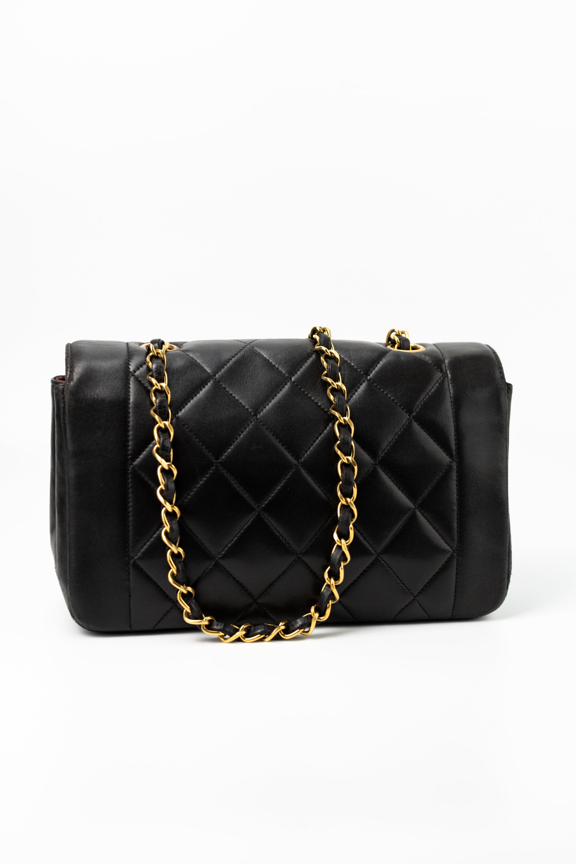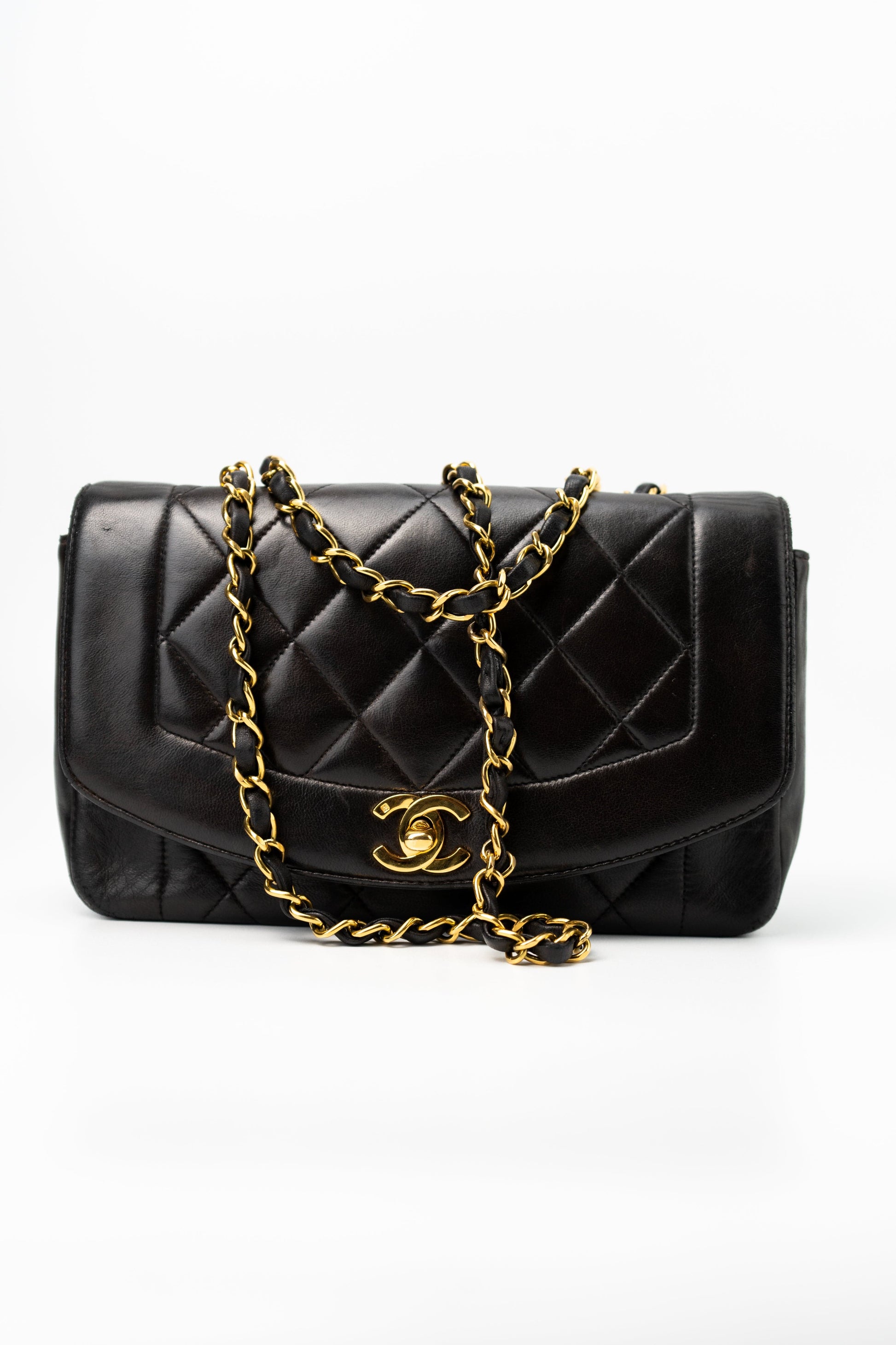 Vintage Small Black Lambskin Quilted Diana Flap GHW