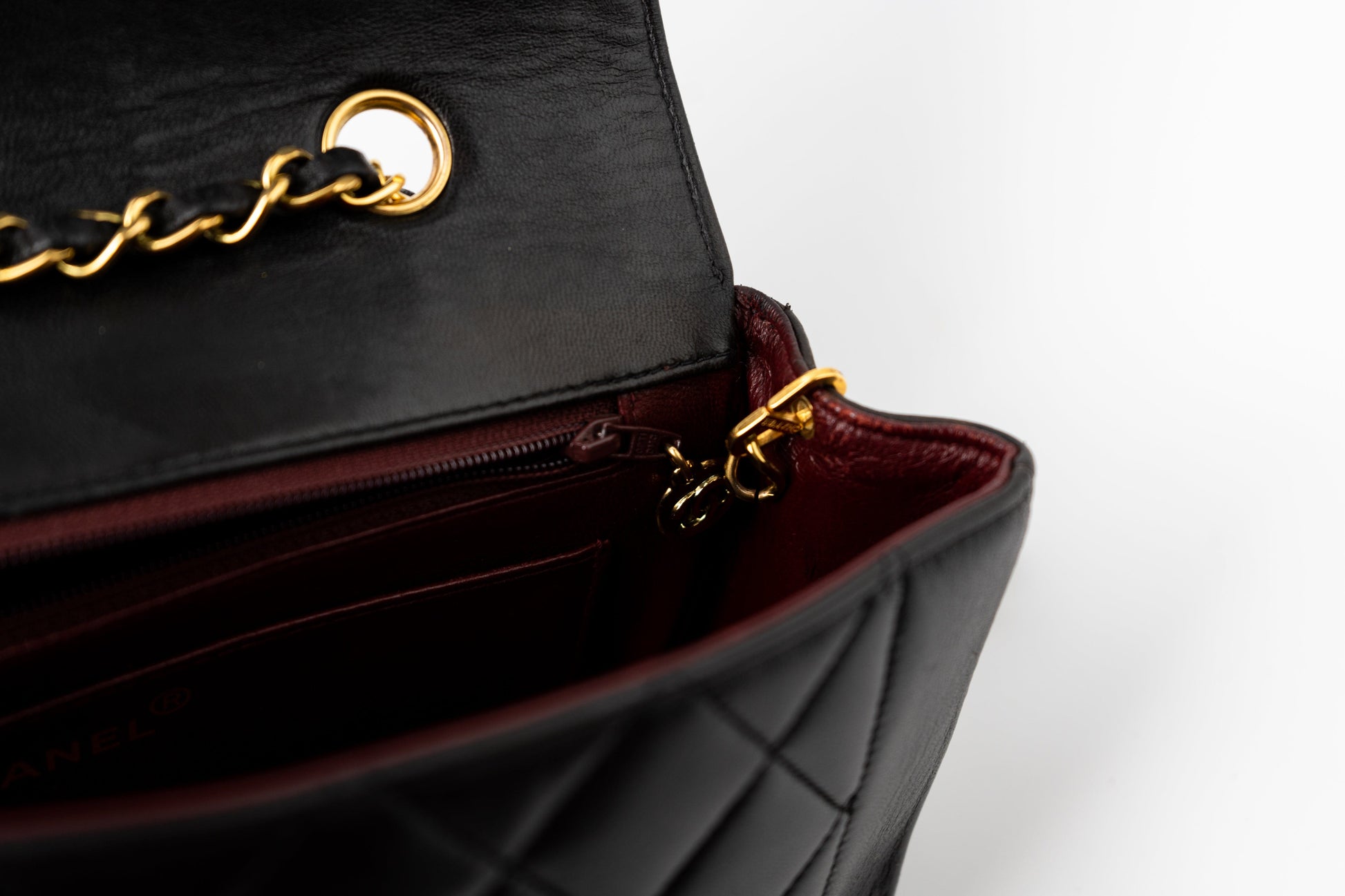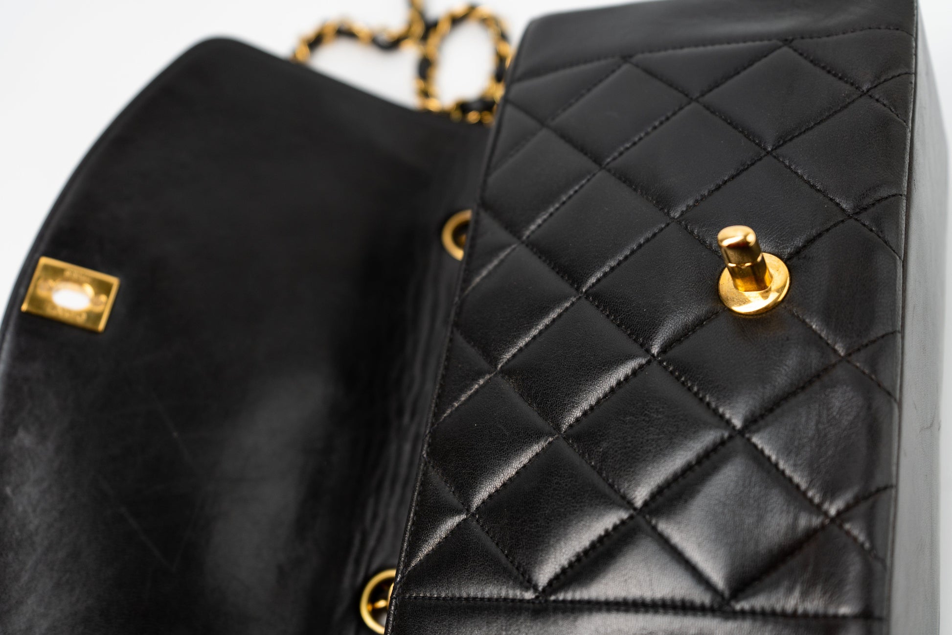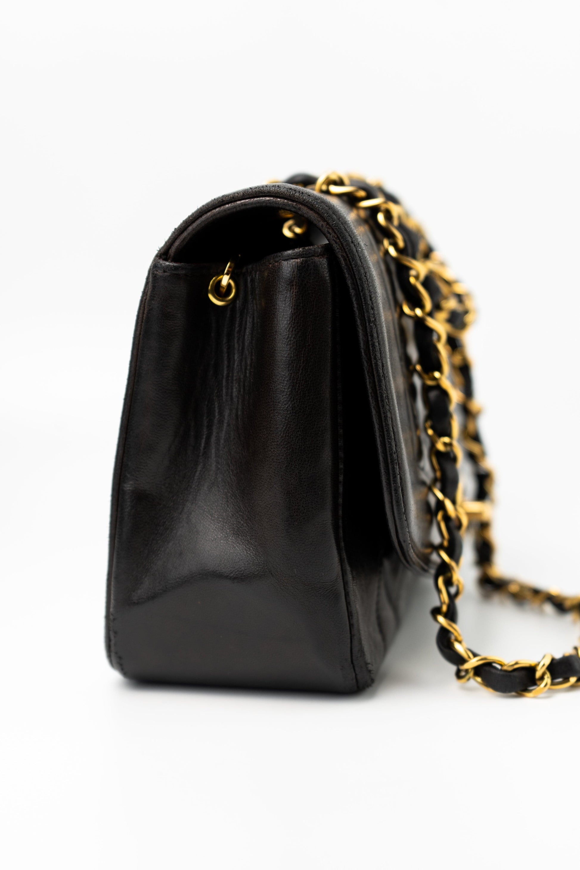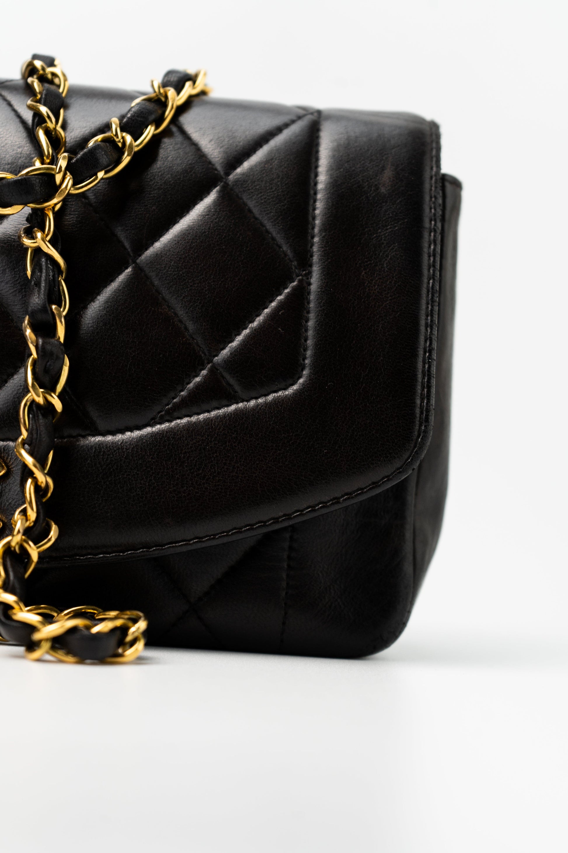 Vintage Small Black Lambskin Quilted Diana Flap GHW
