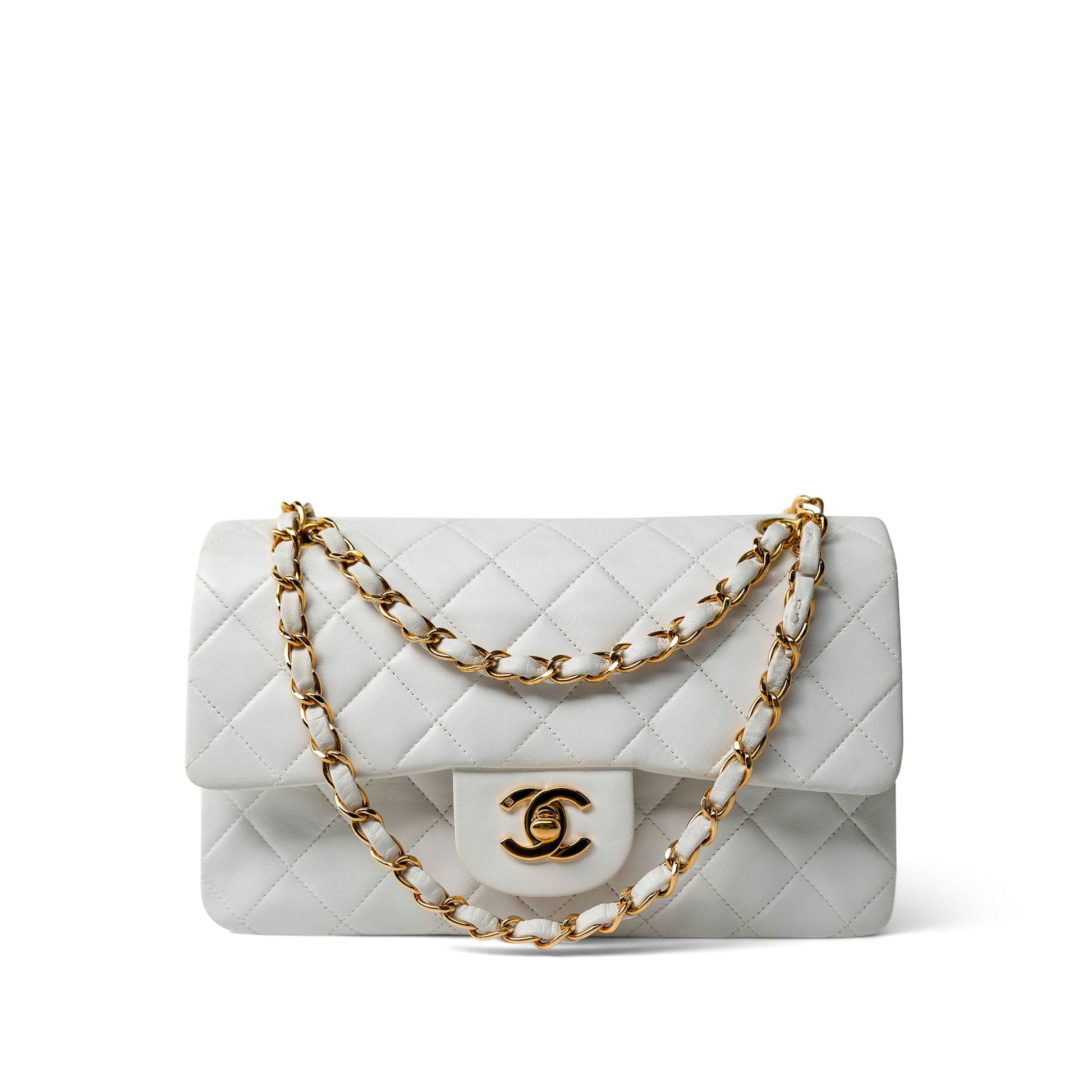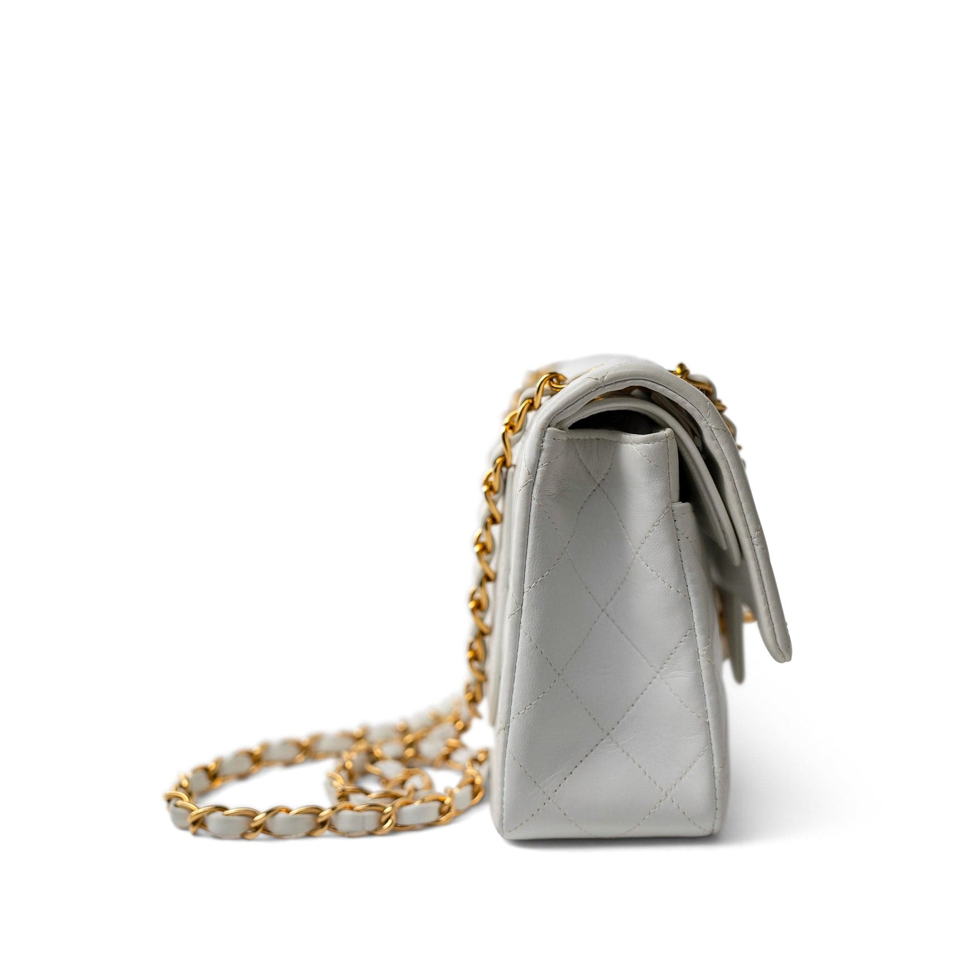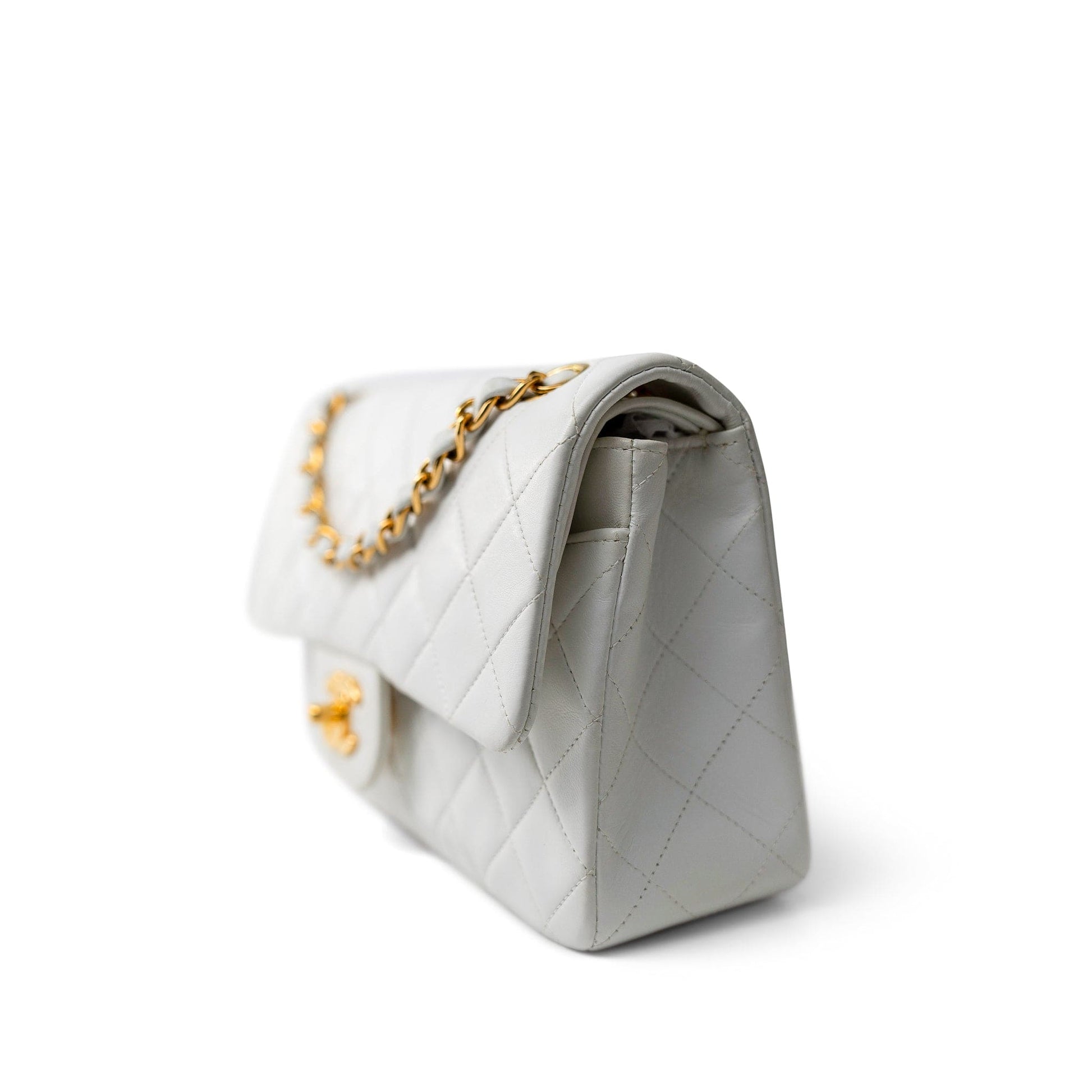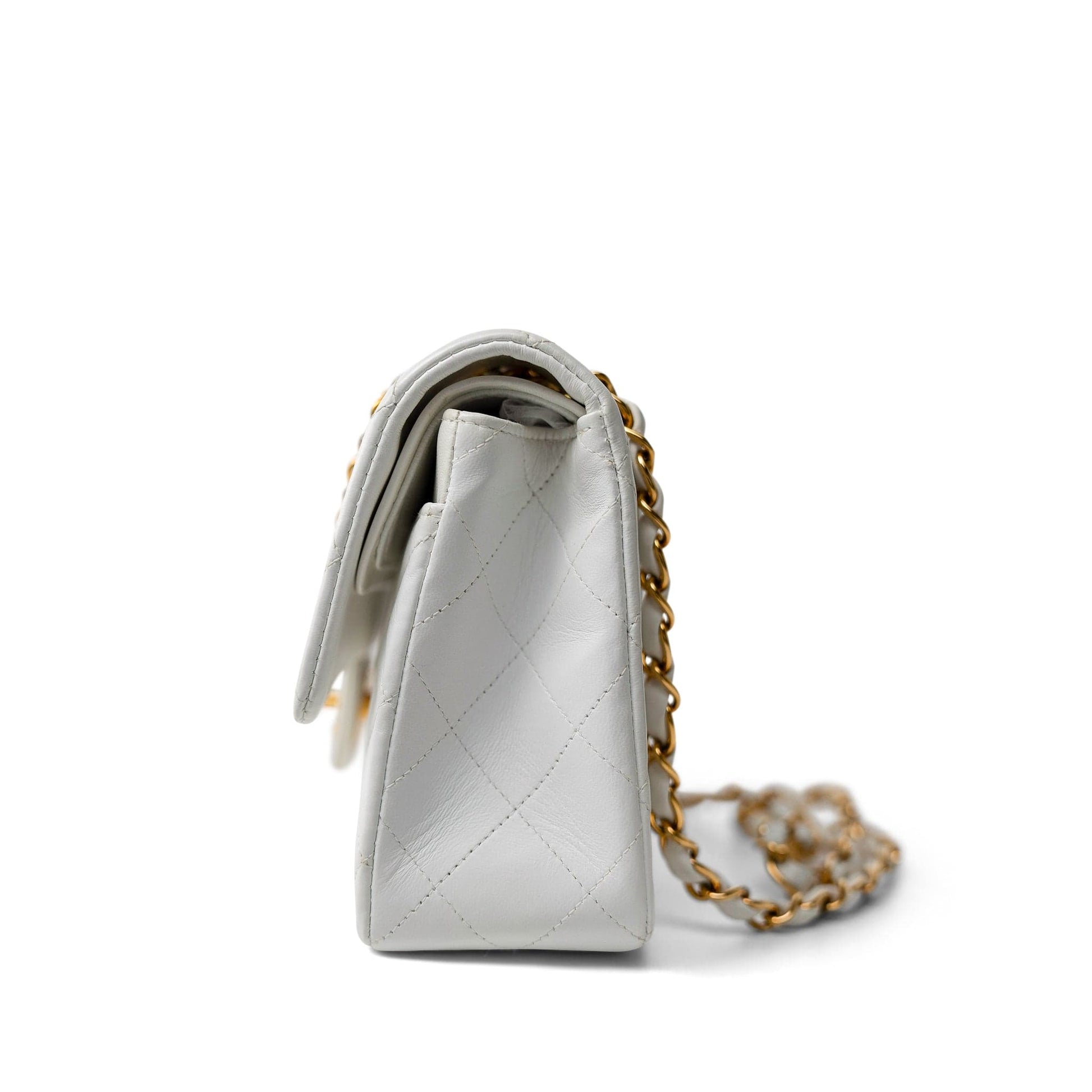 Vintage White Lambskin Quilted Classic Flap Small Gold Hardware