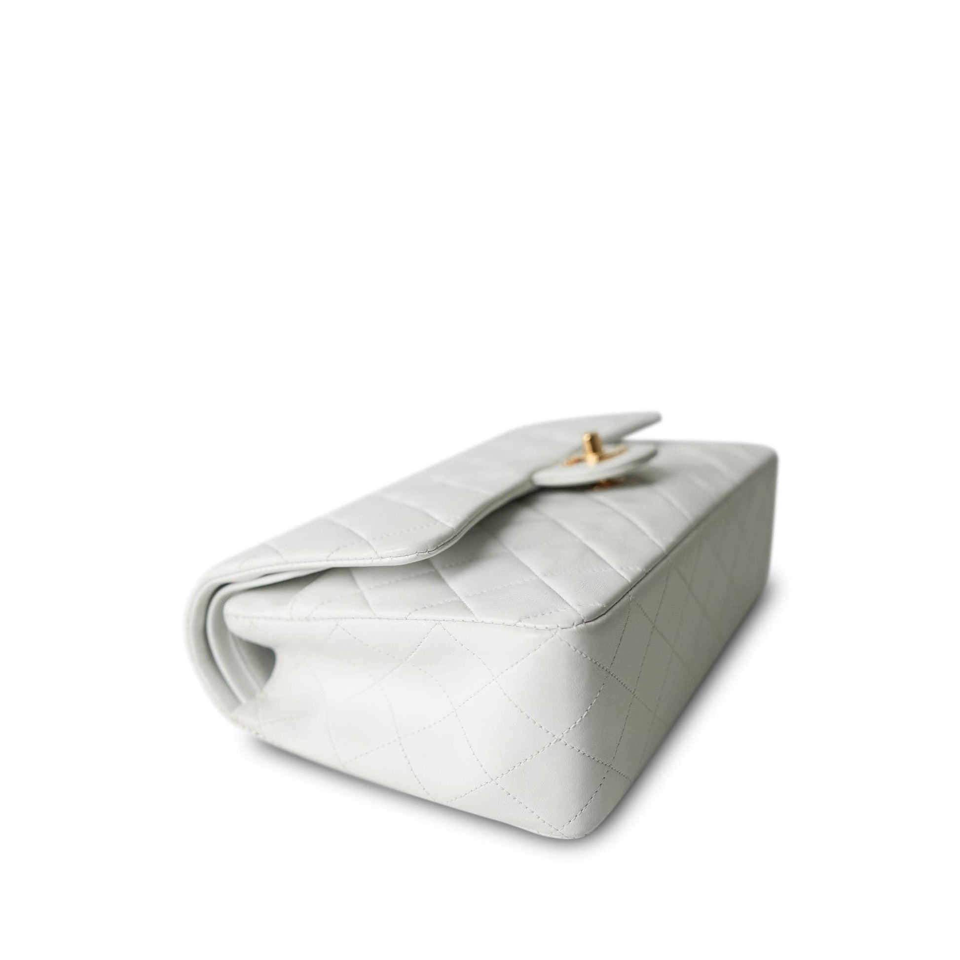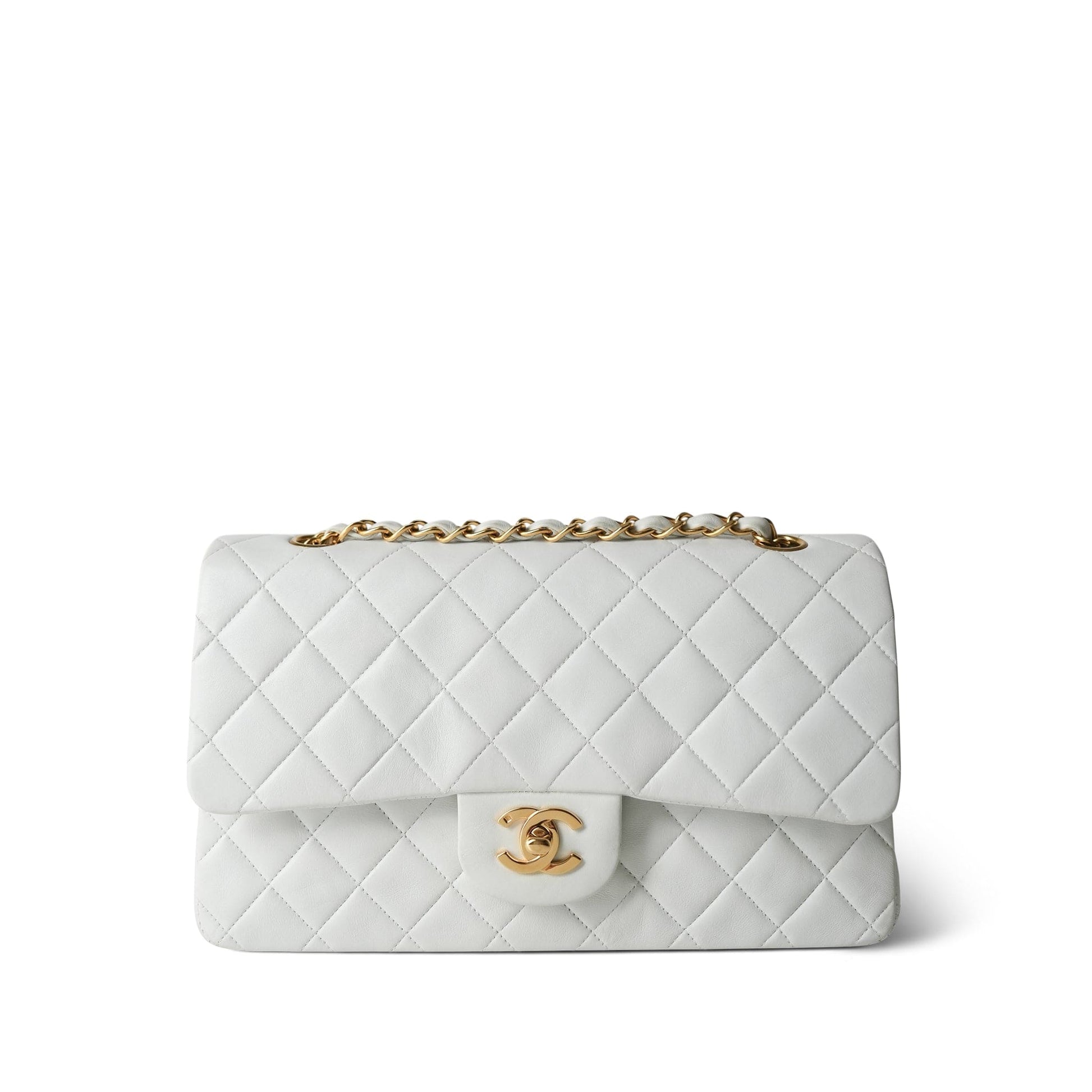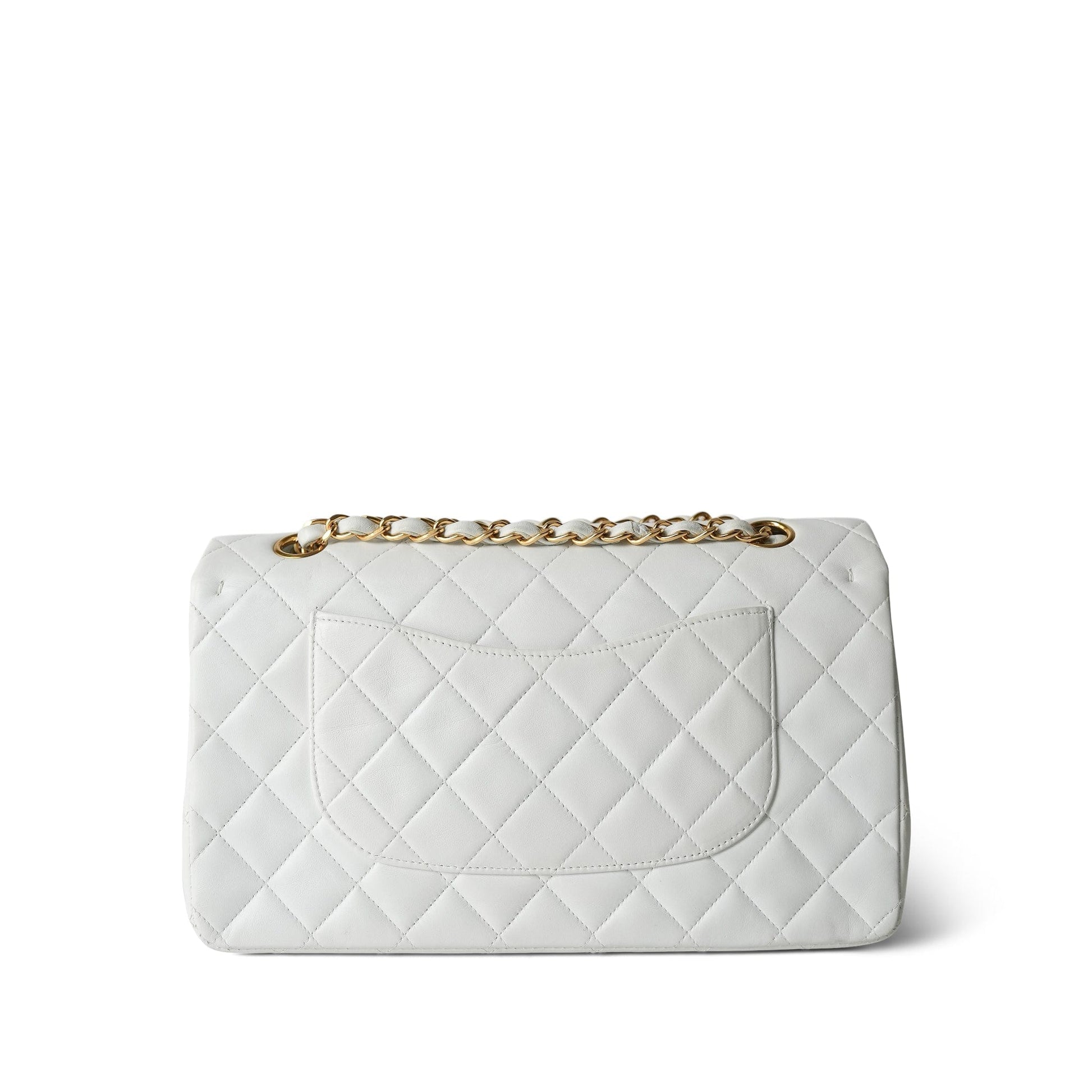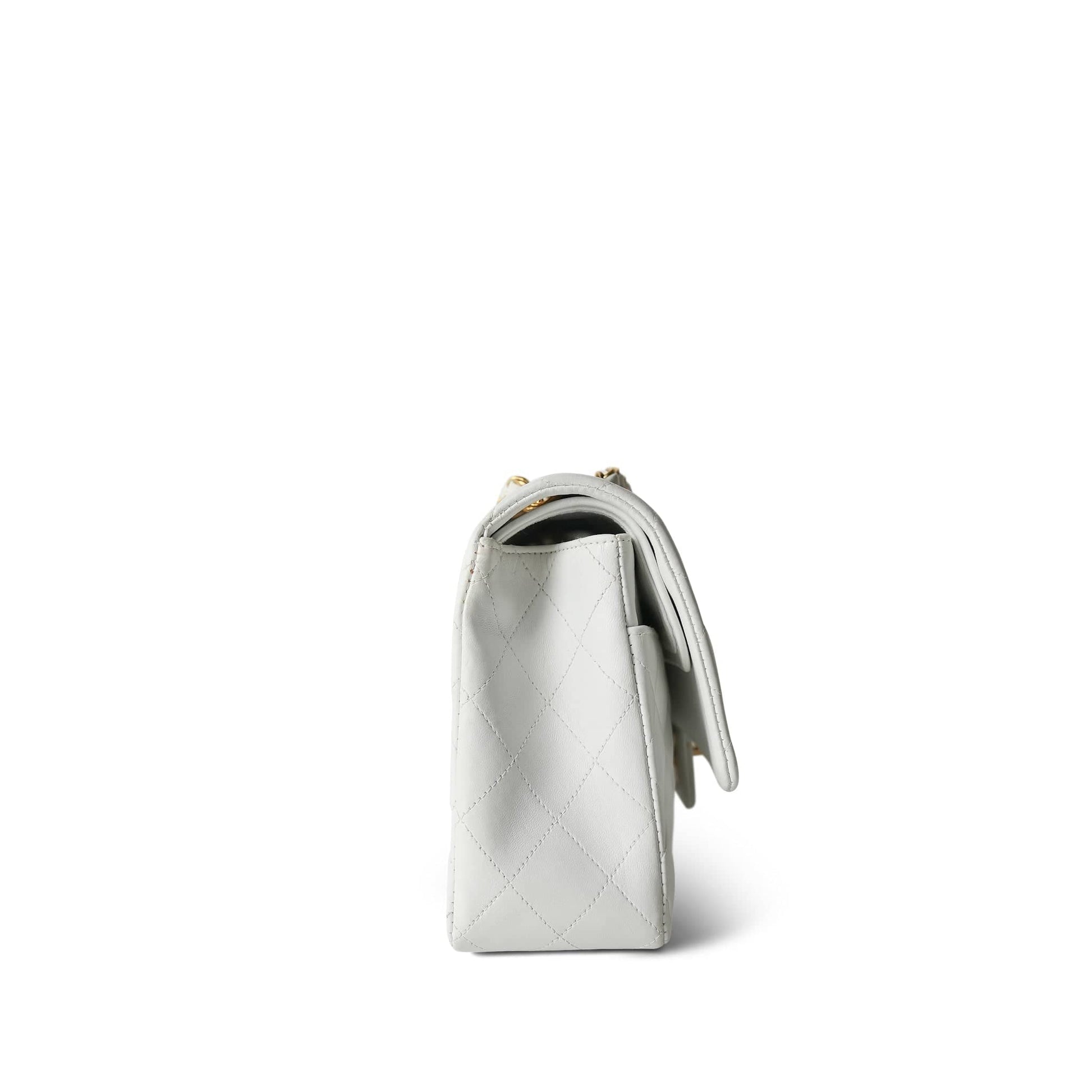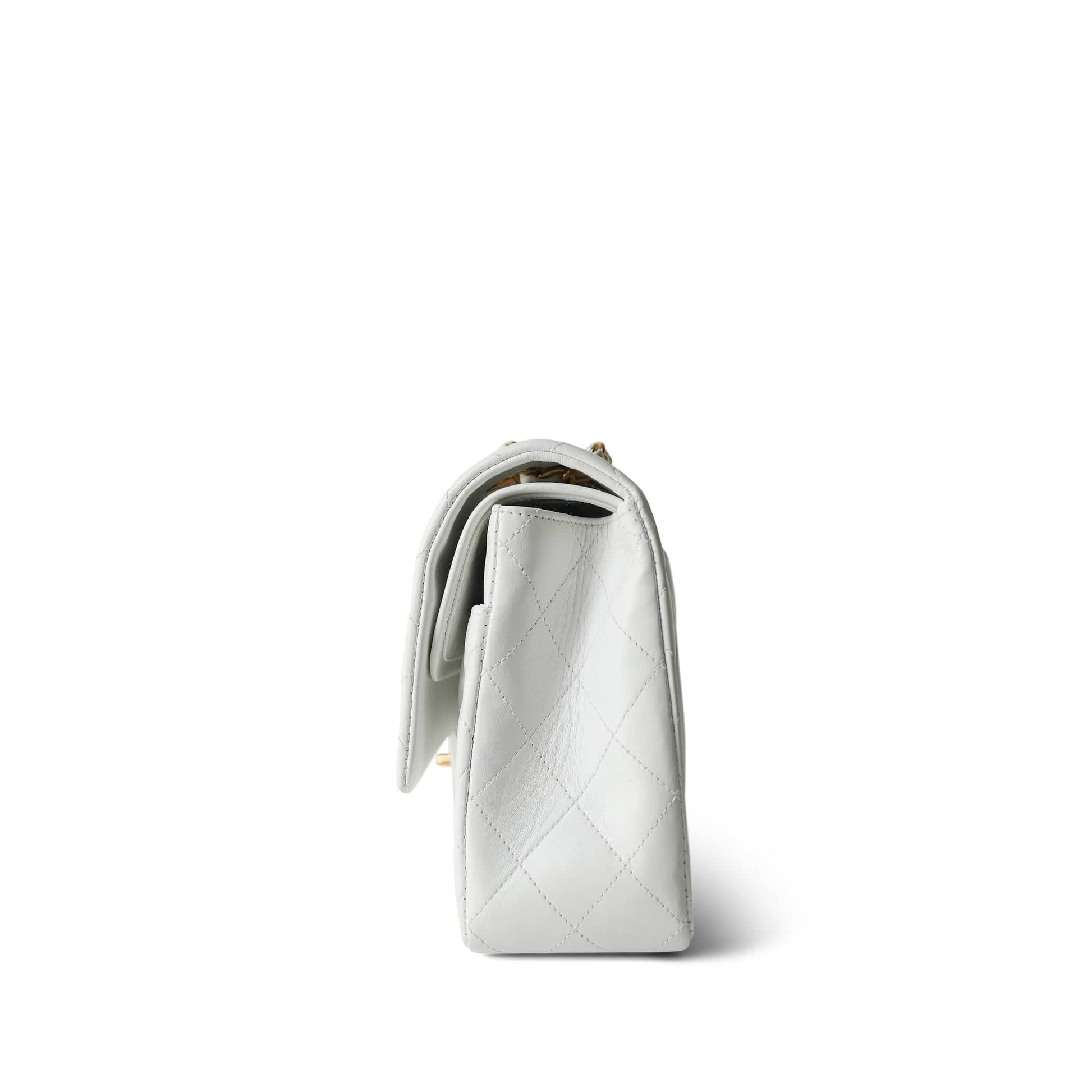 Vintage White Lambskin Quilted Classic Flap Medium GHW