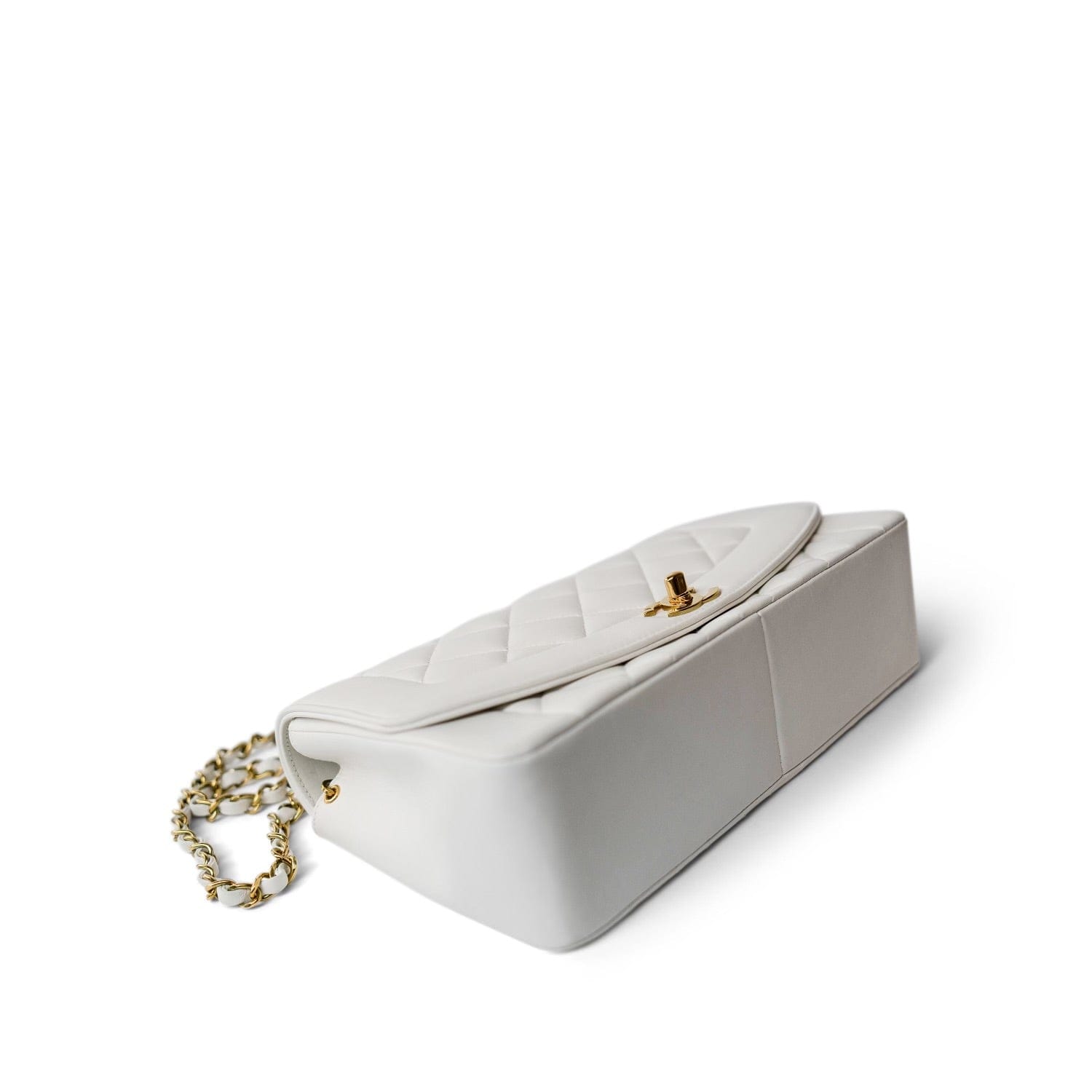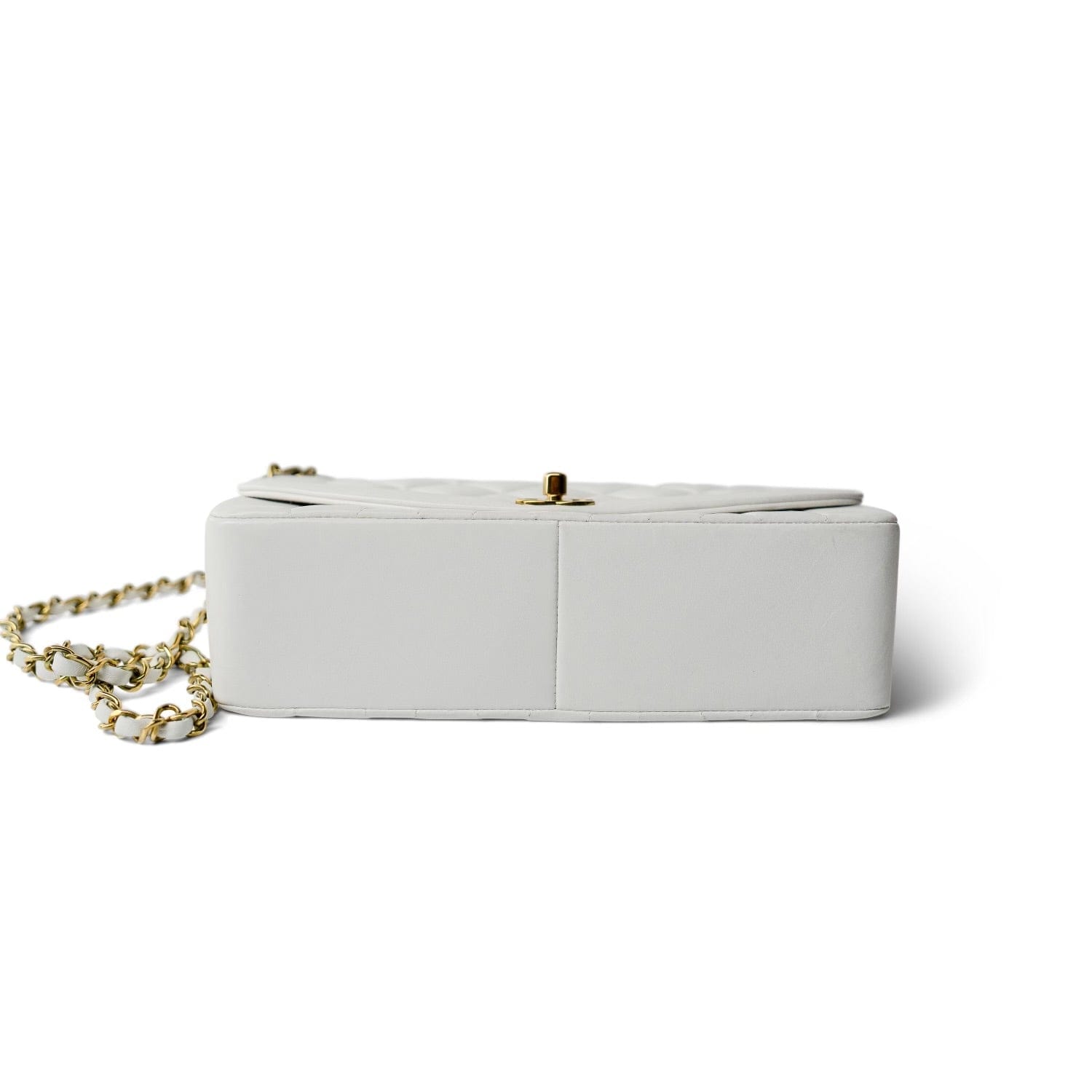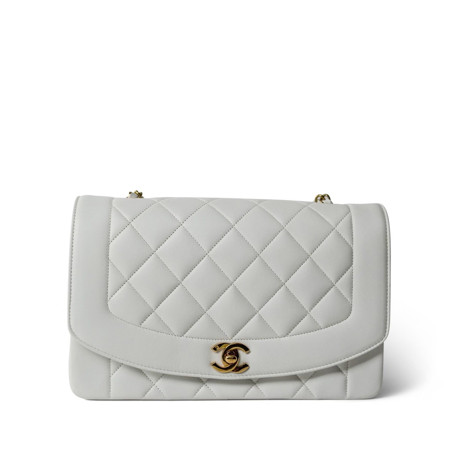 Vintage White Lambskin Quilted Diana Flap Medium GHW