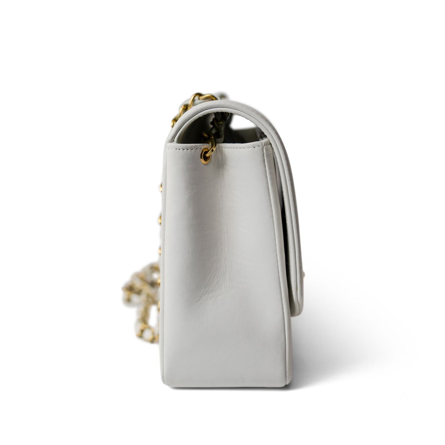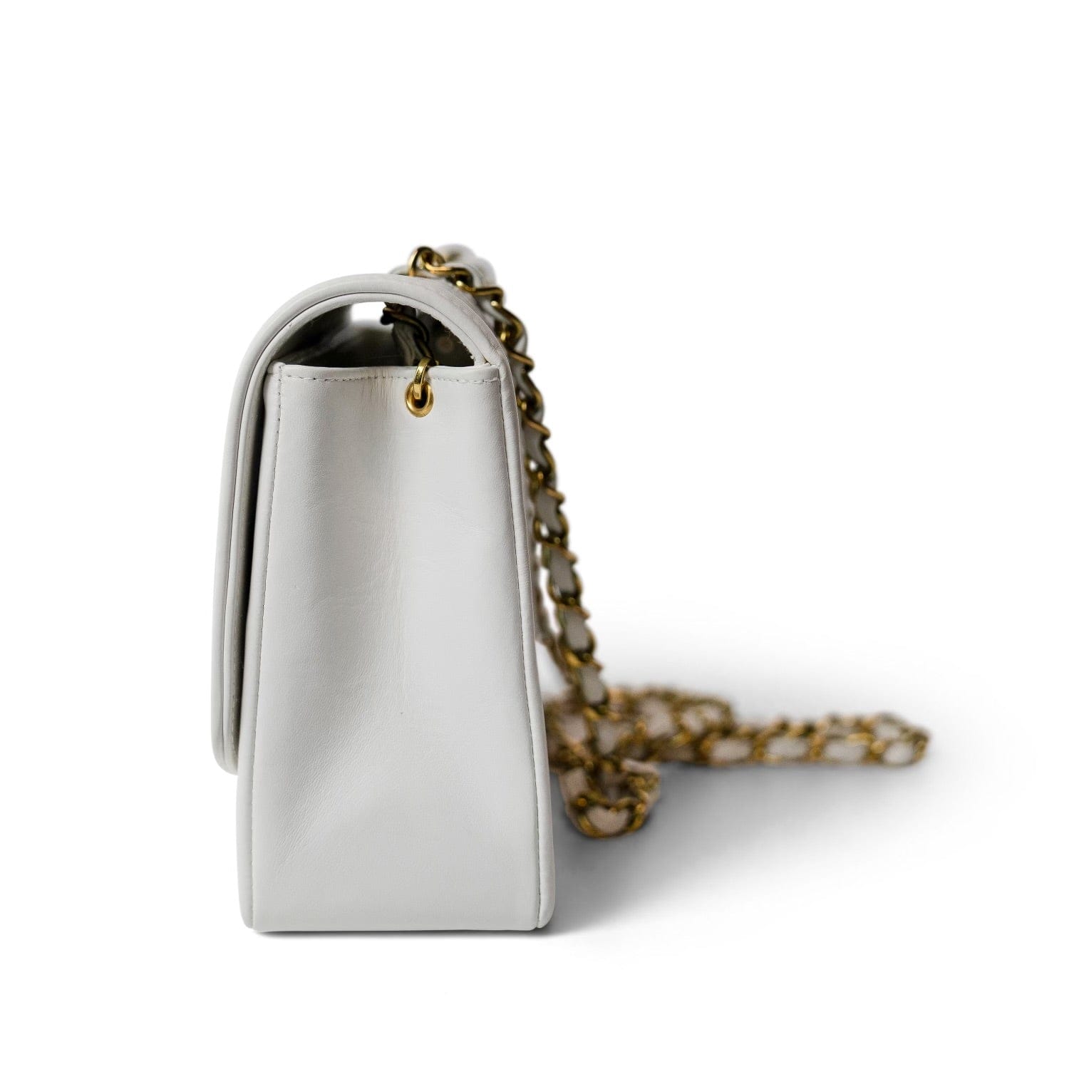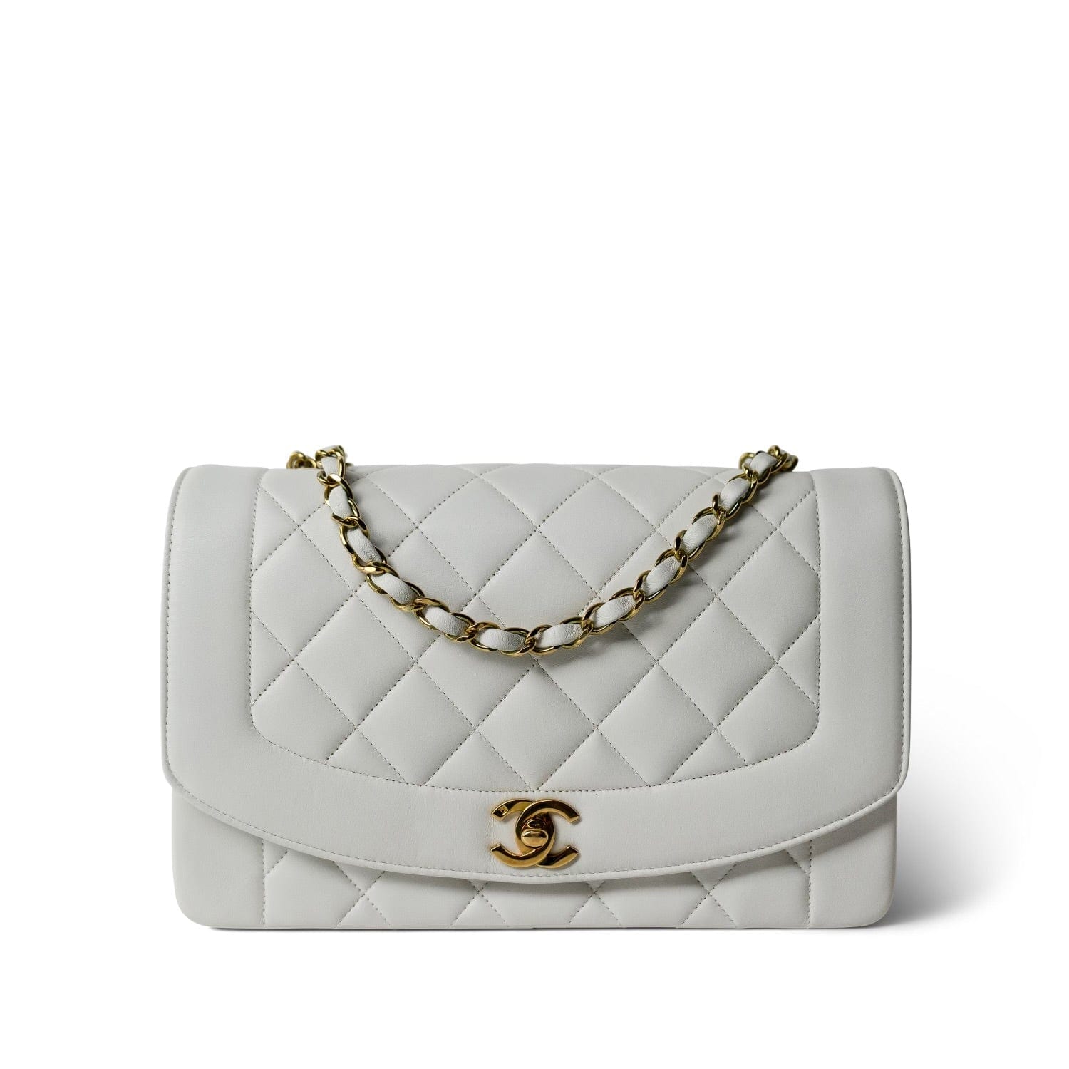 Vintage White Lambskin Quilted Diana Flap Medium GHW