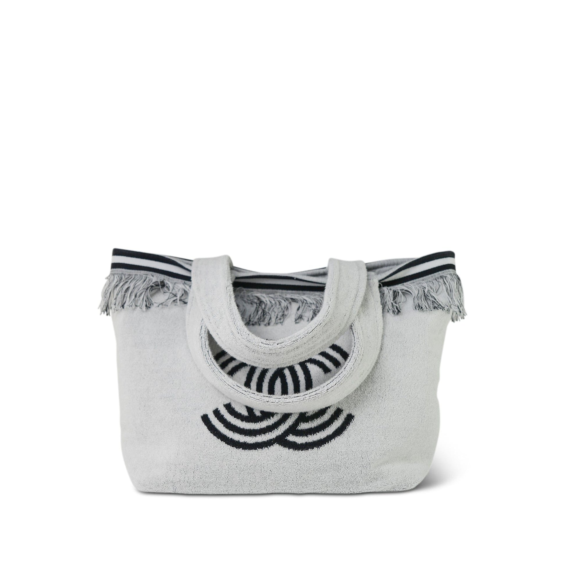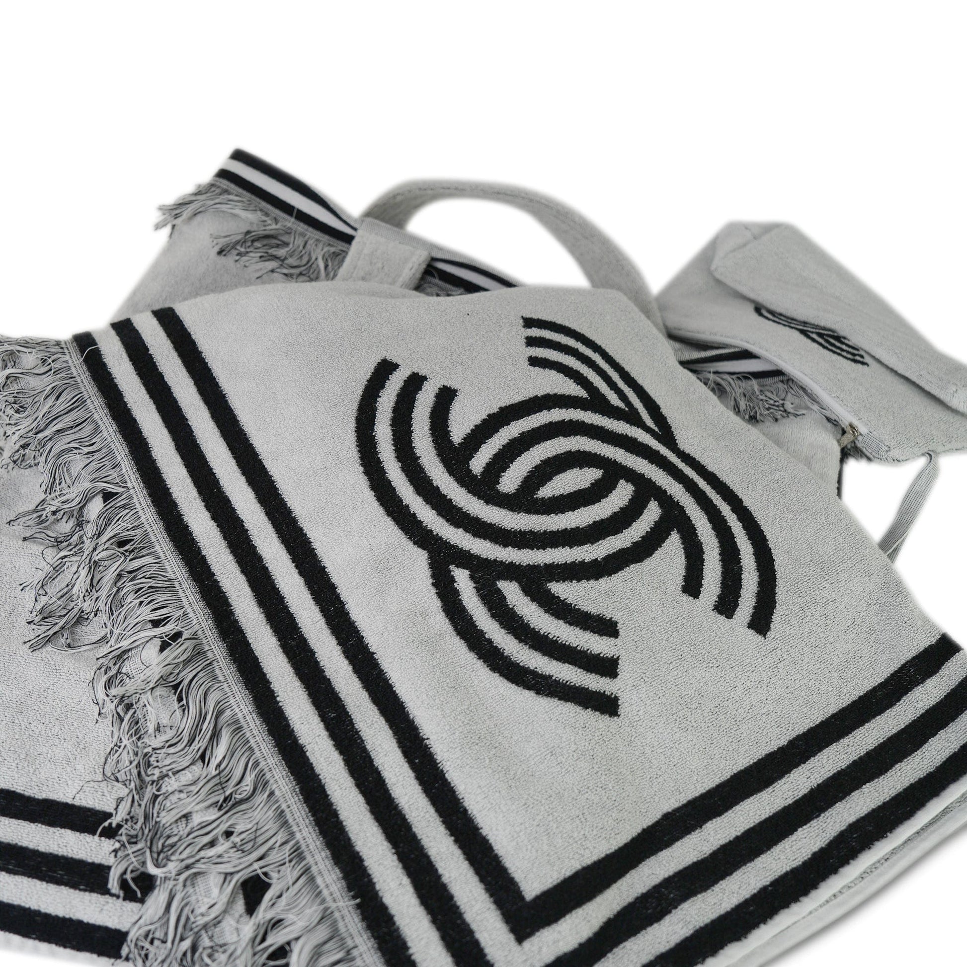 White/Black Terry Cloth Quilted CC Beach Tote with Towel Set