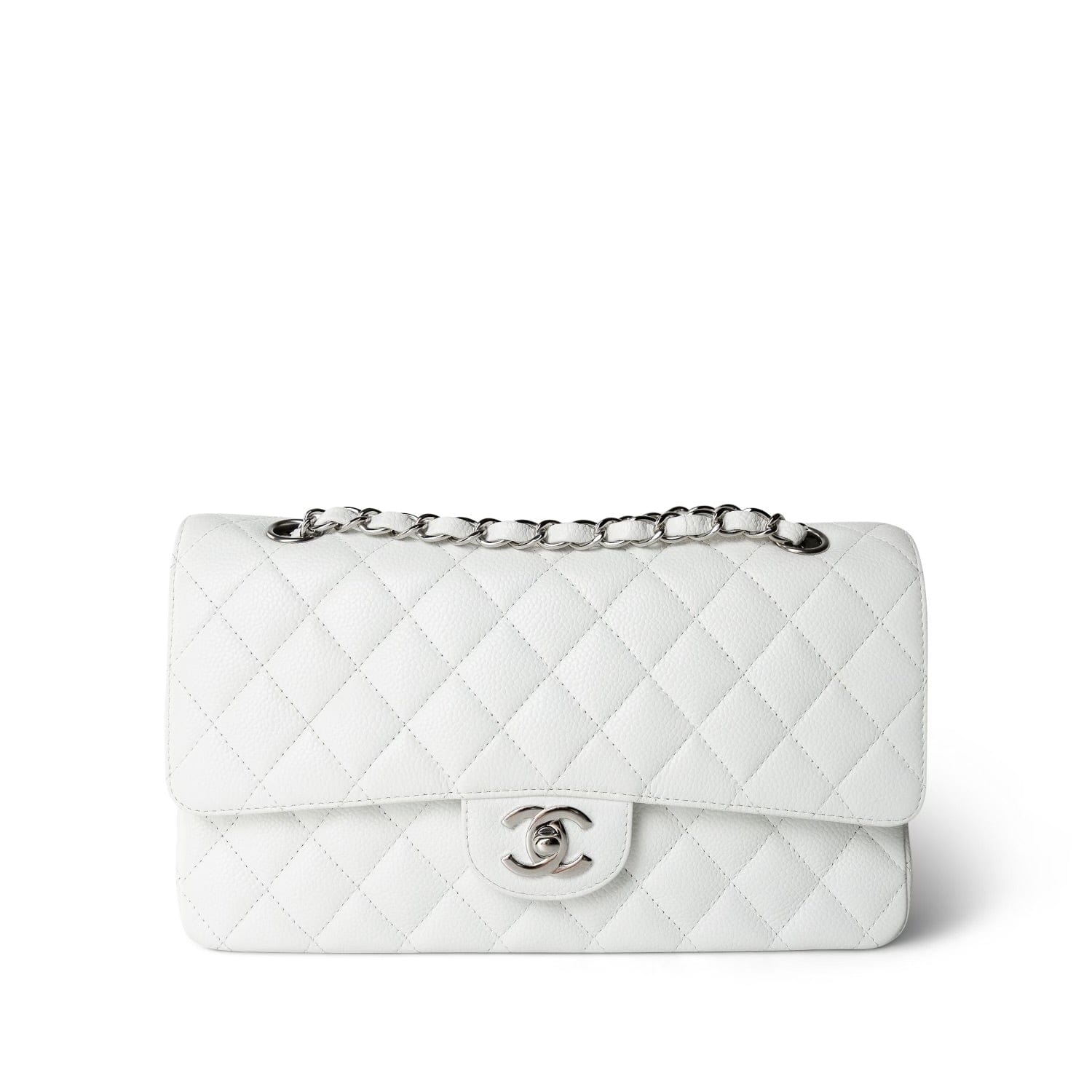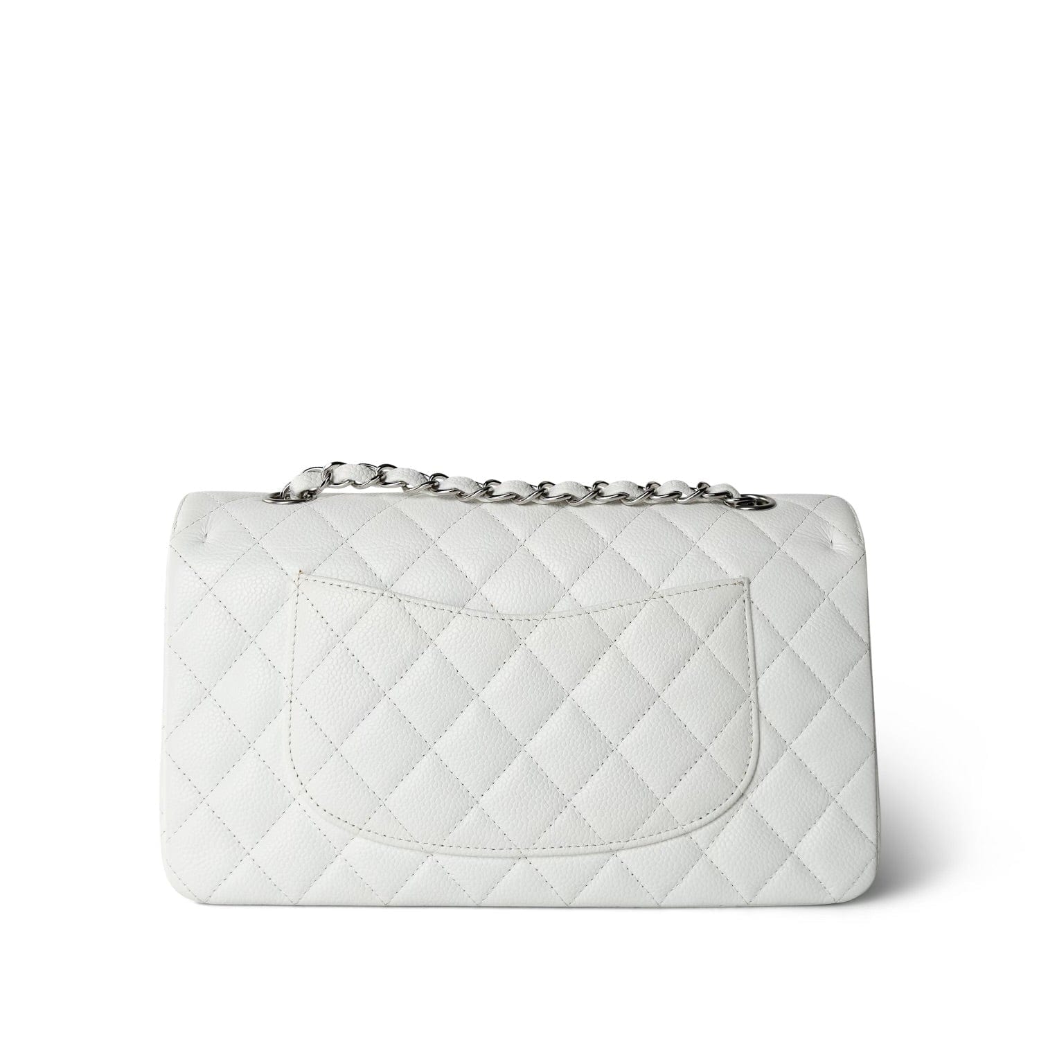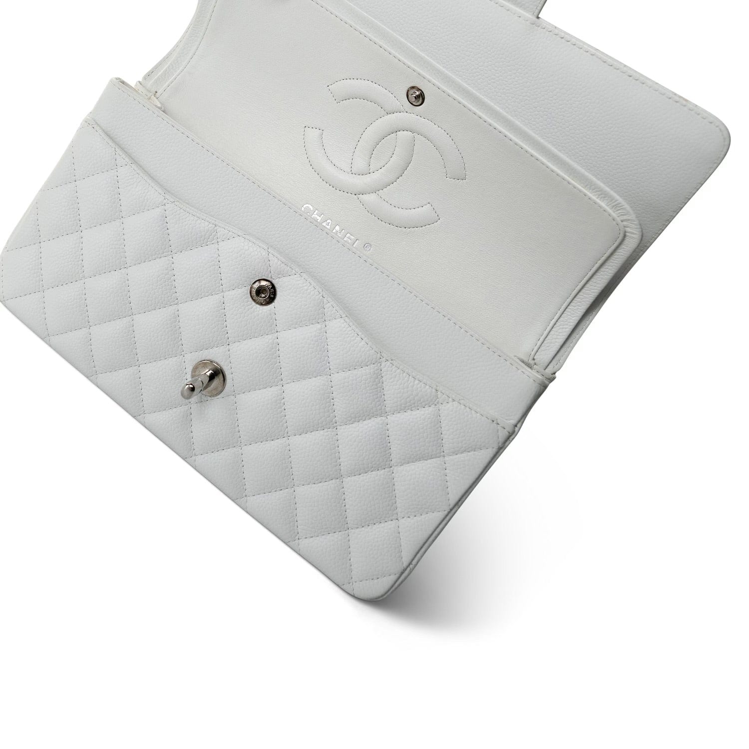 White Caviar Quilted Classic Flap Medium Silver Hardware