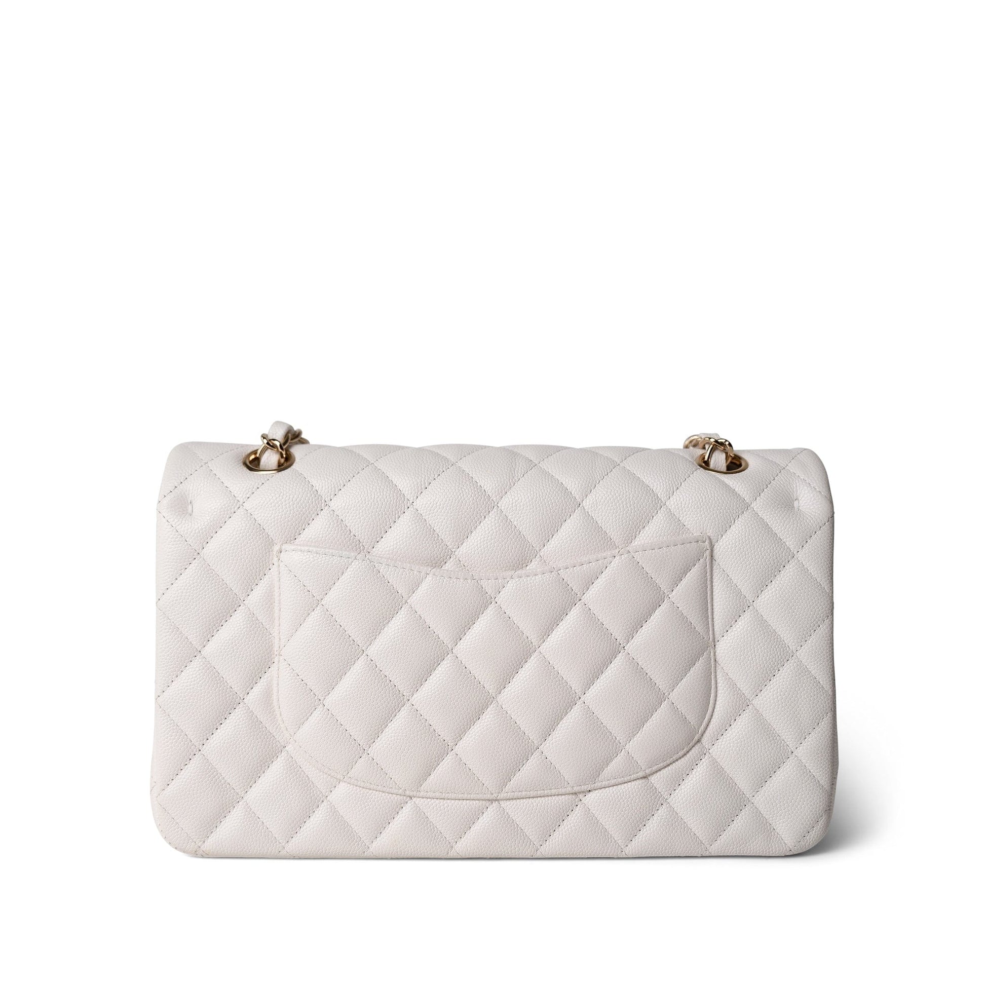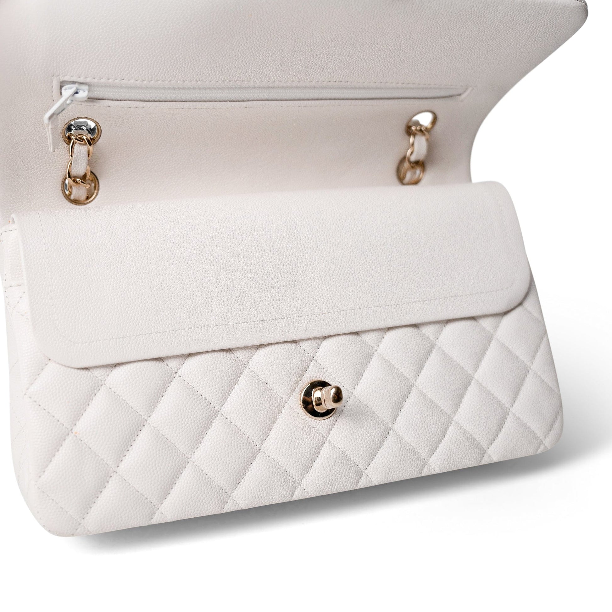 White Caviar Quilted Medium Classic Flap Light Gold Hardware
