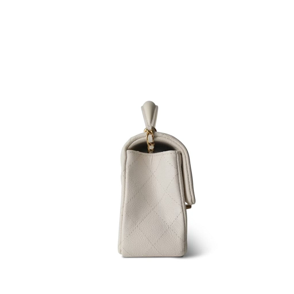 21S White / Ivory Caviar Quilted Mini Top Handle Aged Gold Hardware