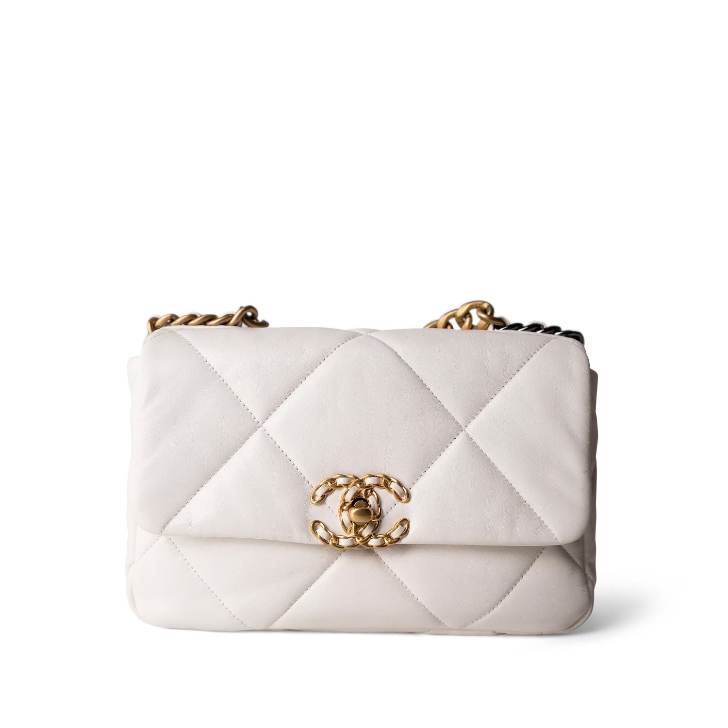 White Lambskin Quilted 19 Flap Small MHW