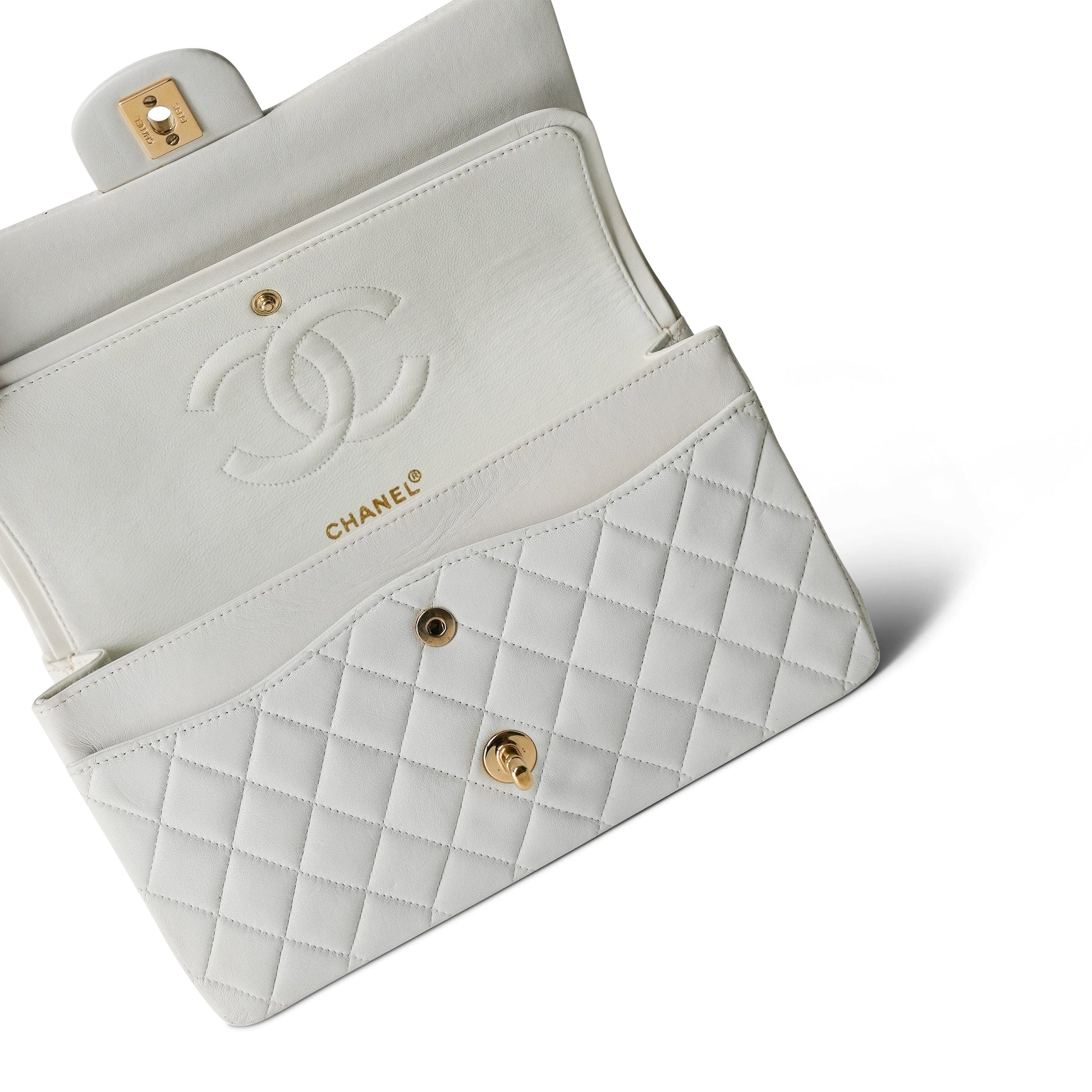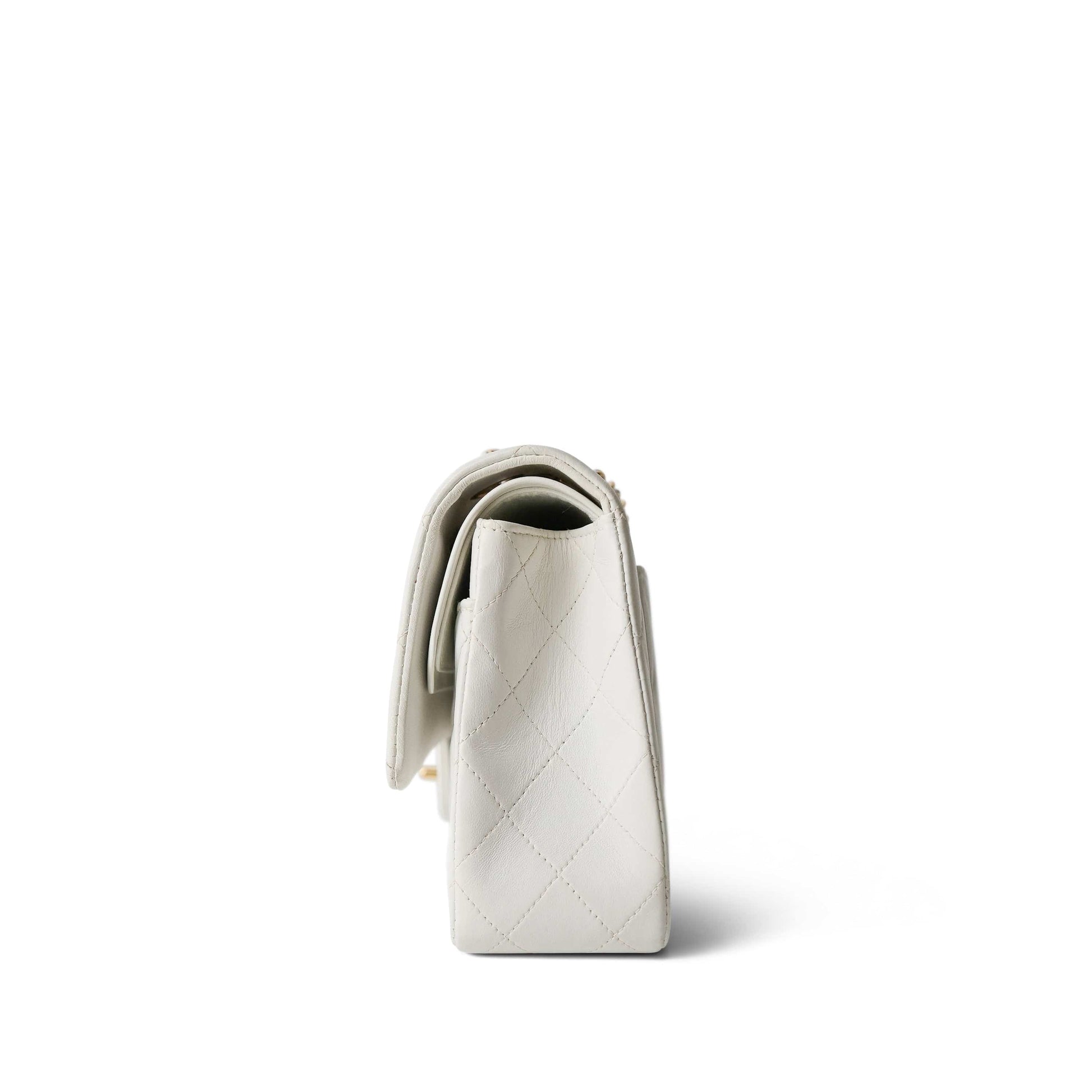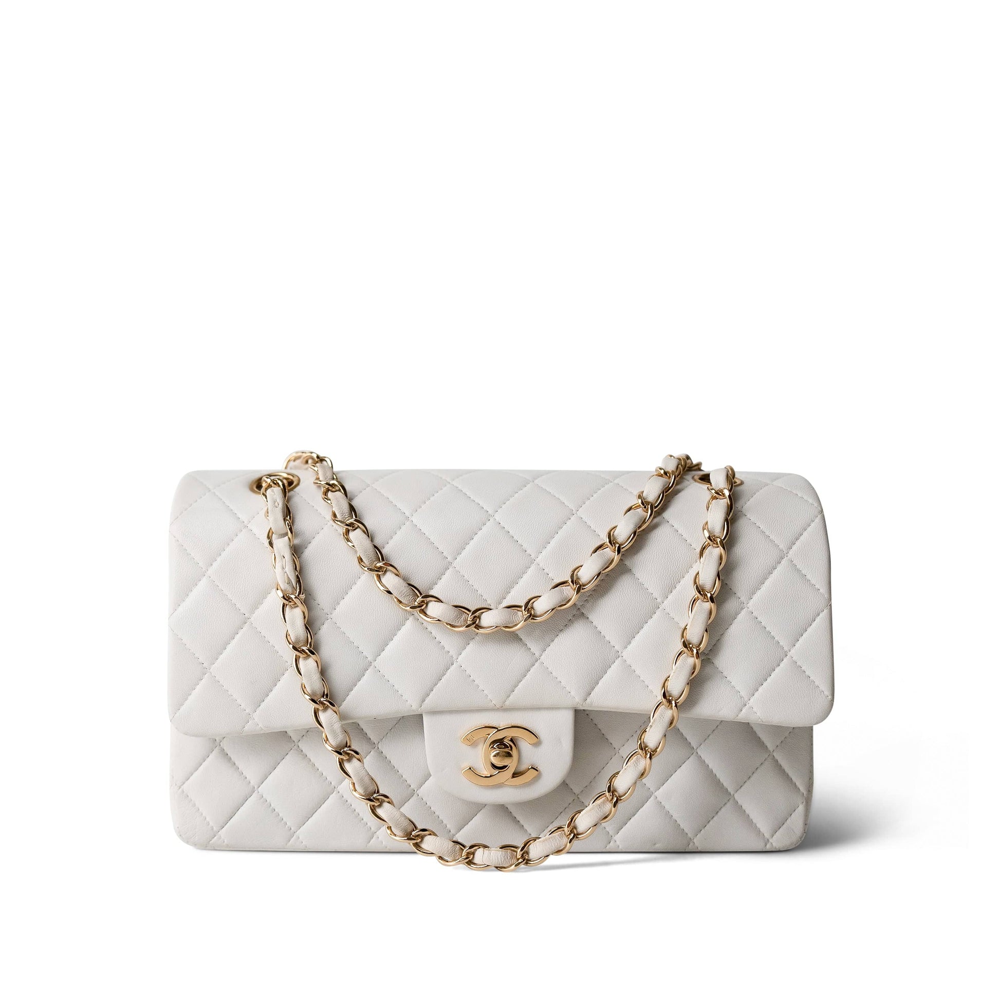 White Lambskin Quilted Classic Flap Medium Gold Hardware