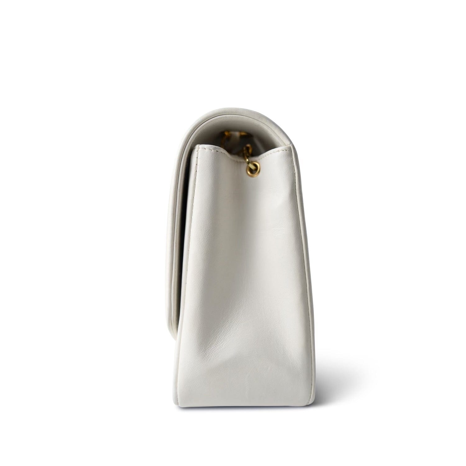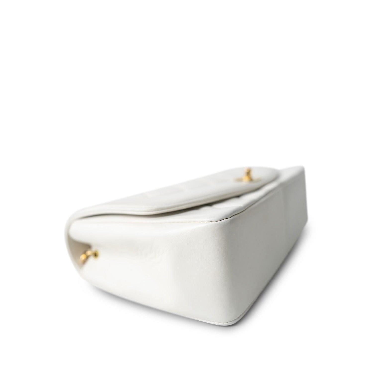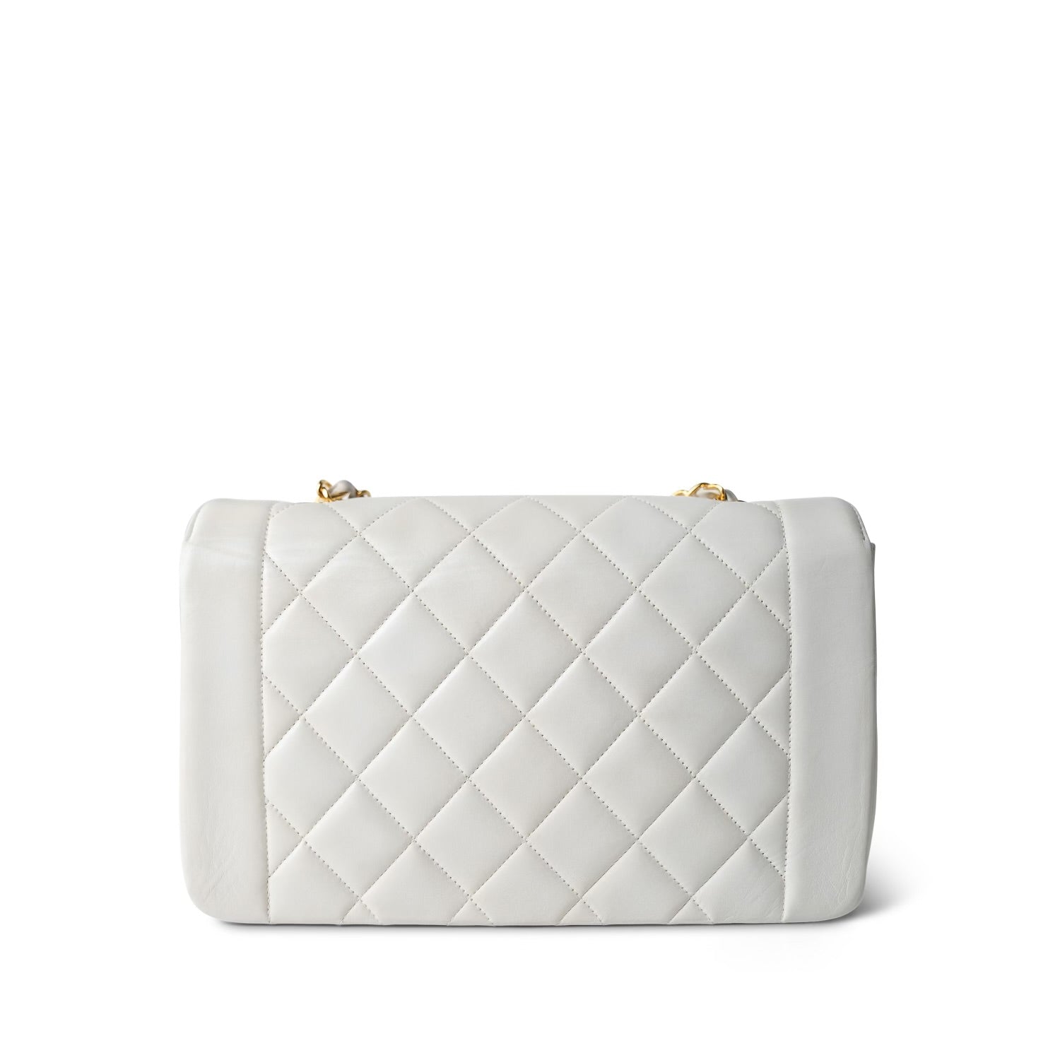 White Lambskin Quilted Diana Flap Medium Gold Hardware