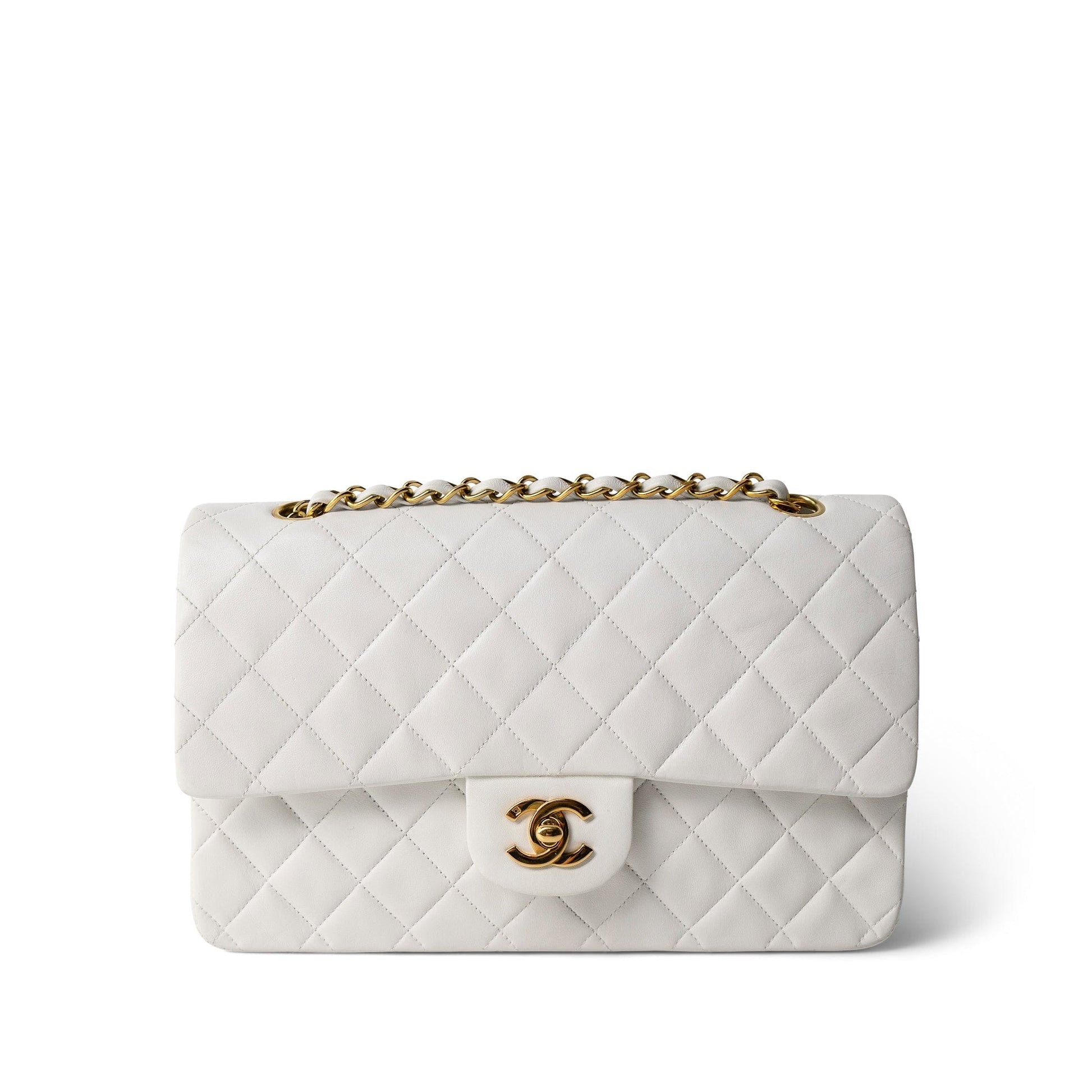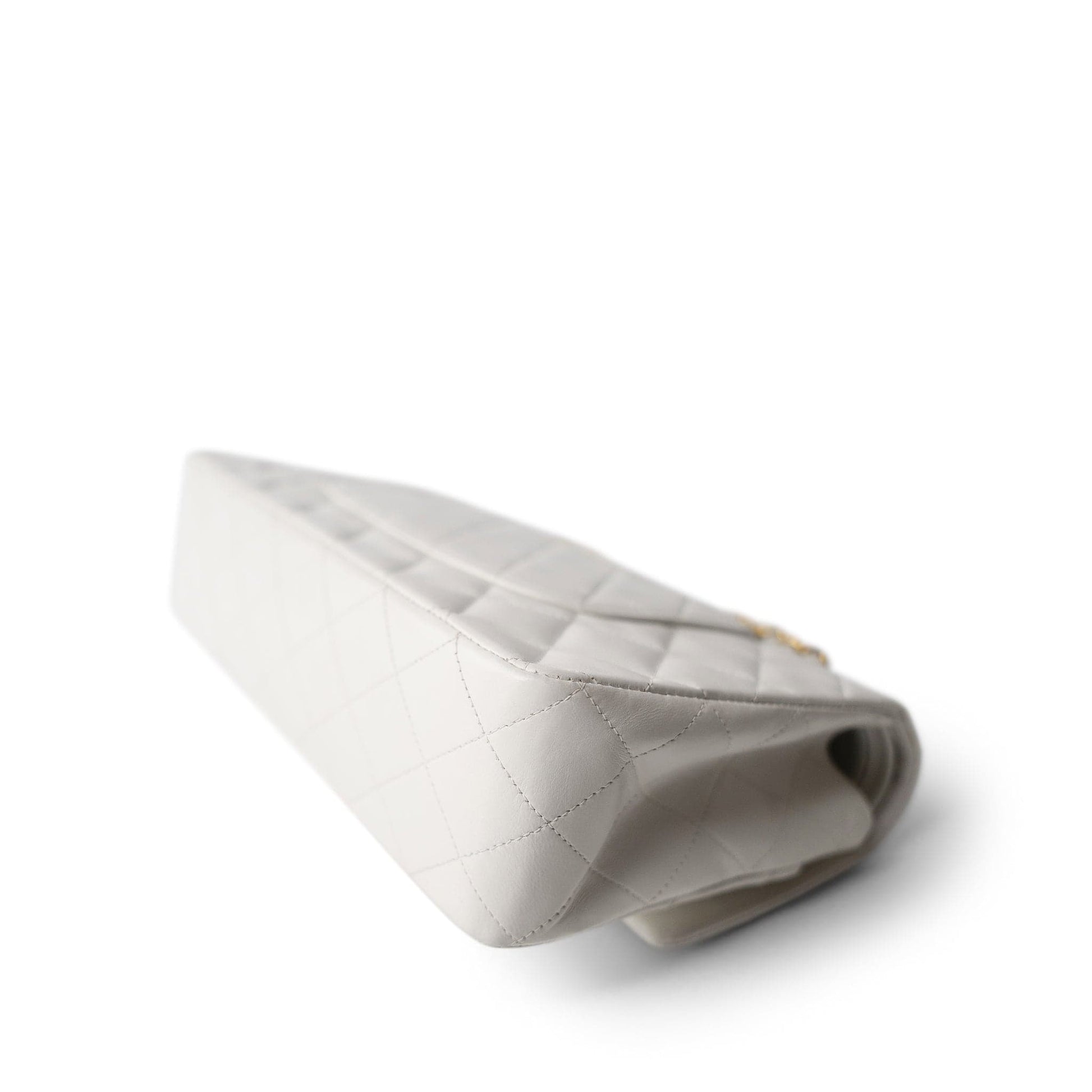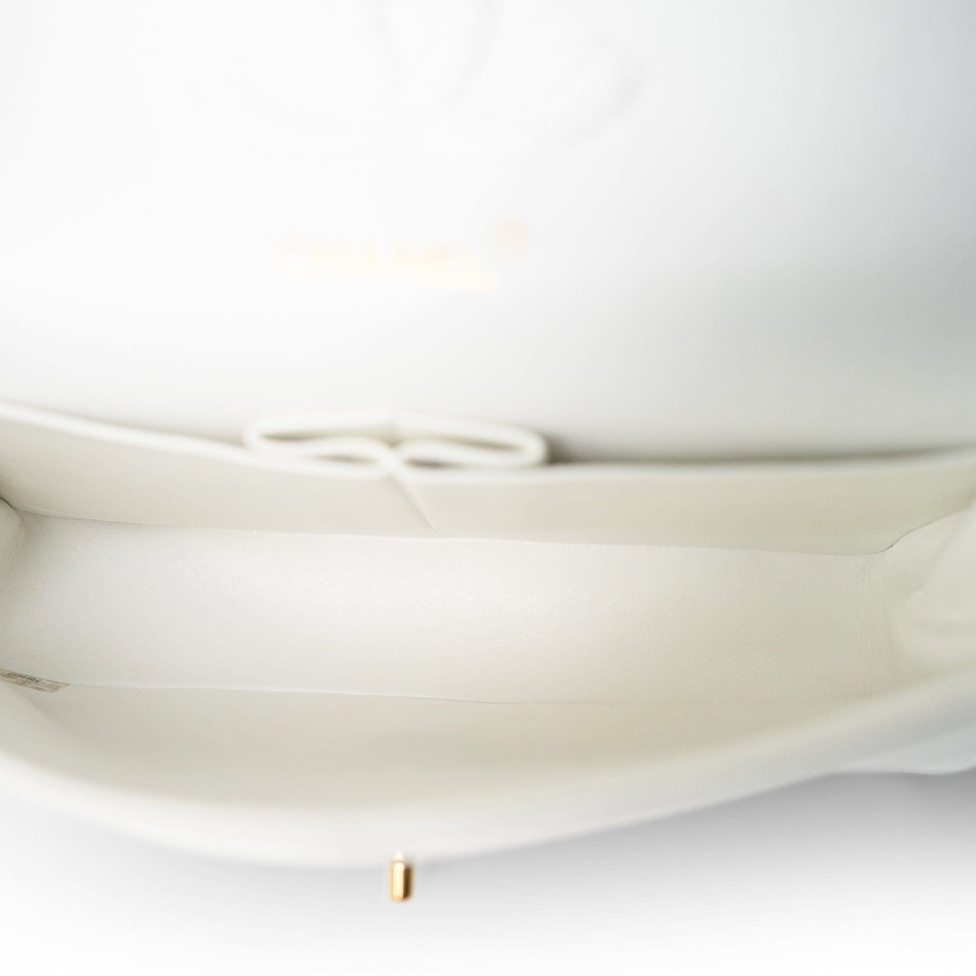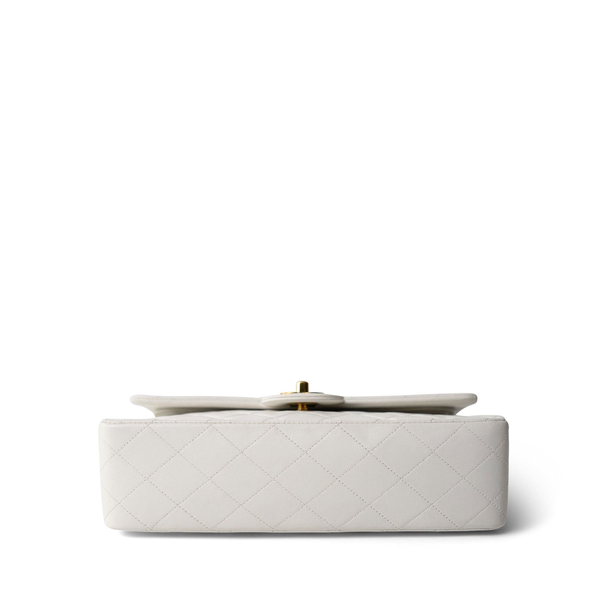 White Lambskin Quilted Medium Classic Flap Gold Hardware