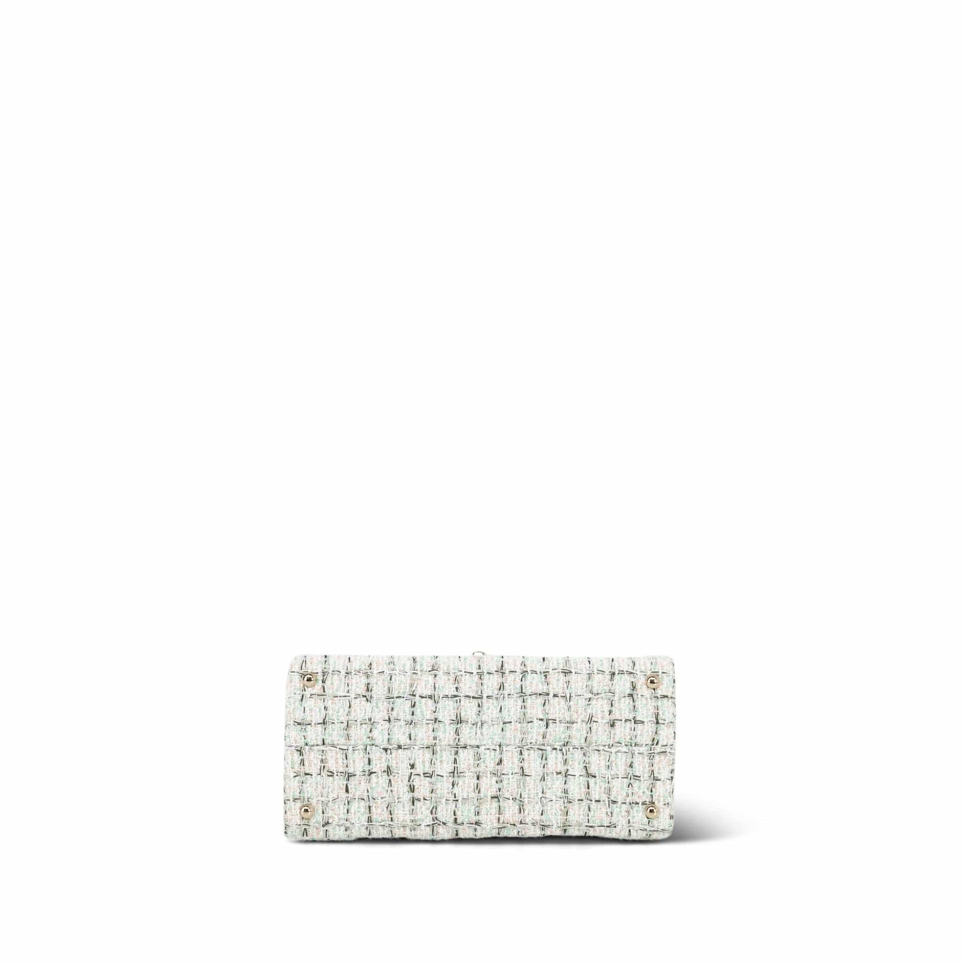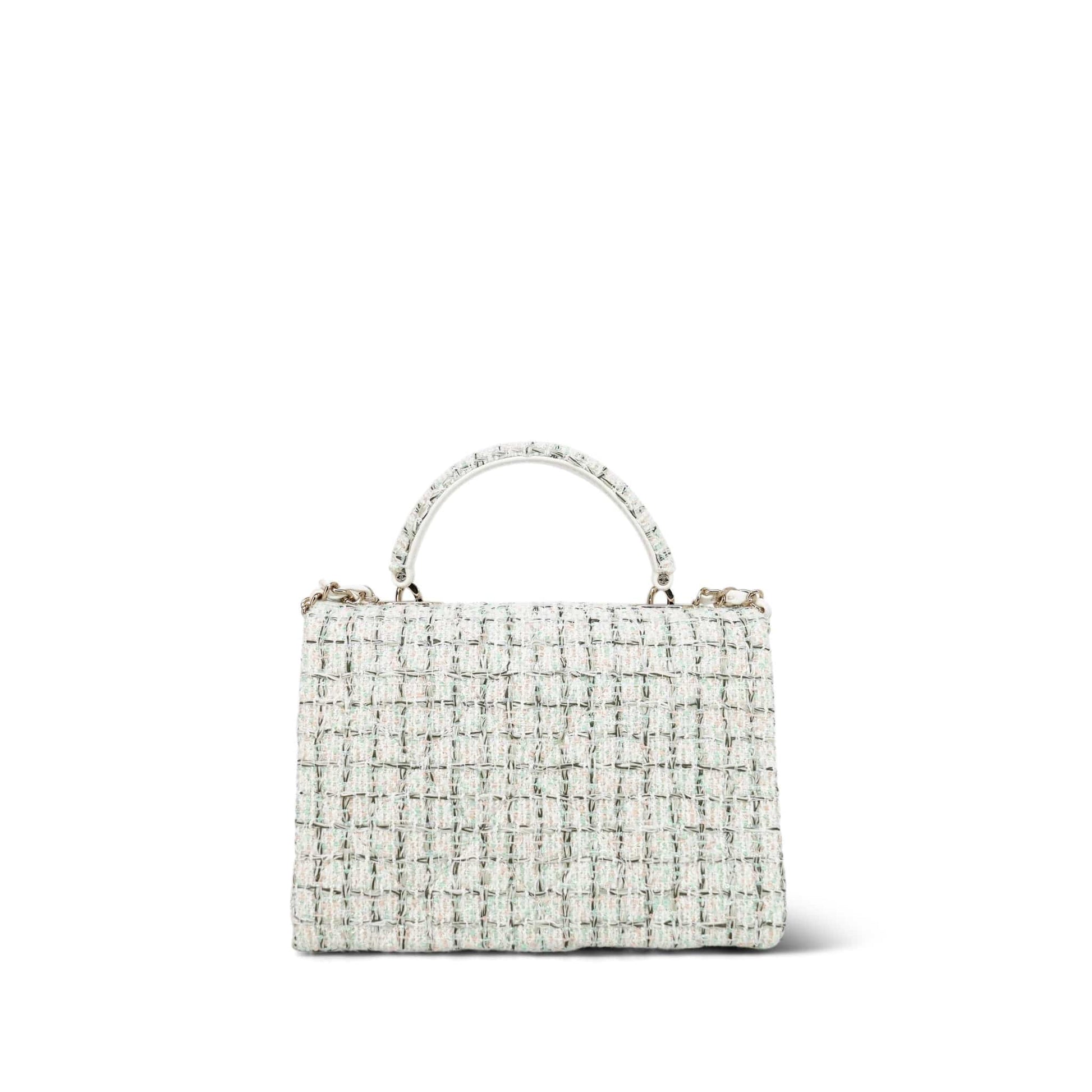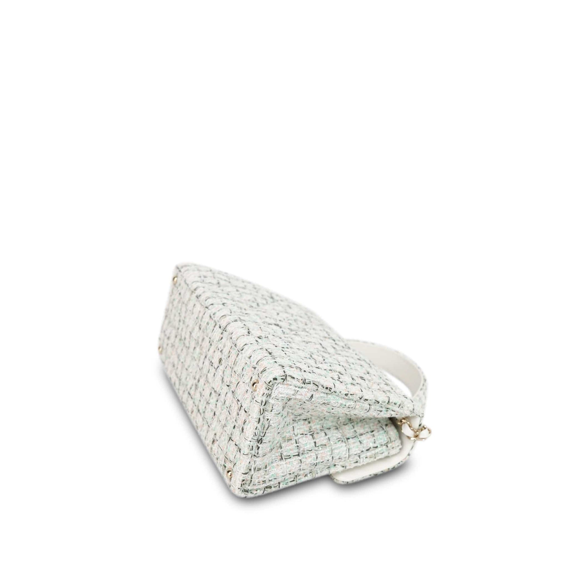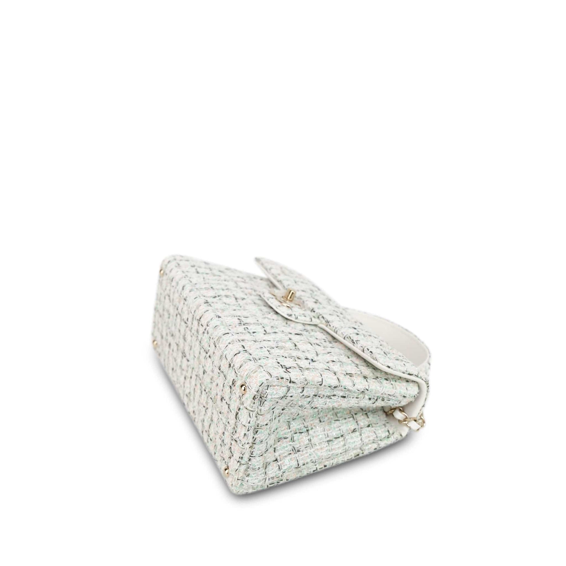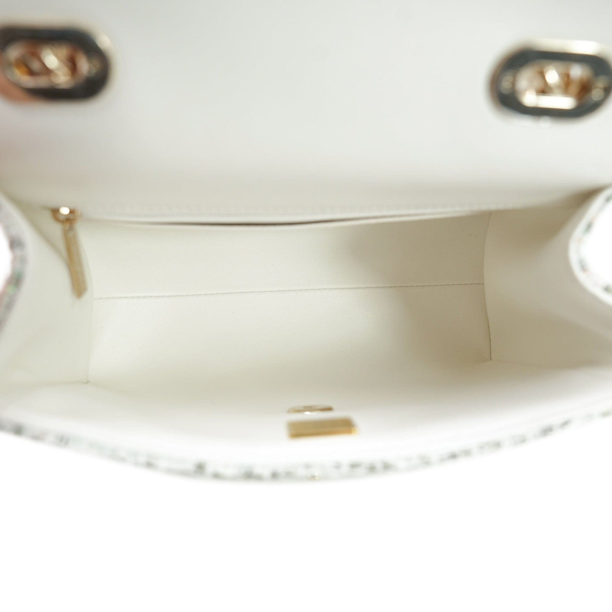 White/Multicolor Sequin Tweed Quilted Top Handle Flap Bag On Chain